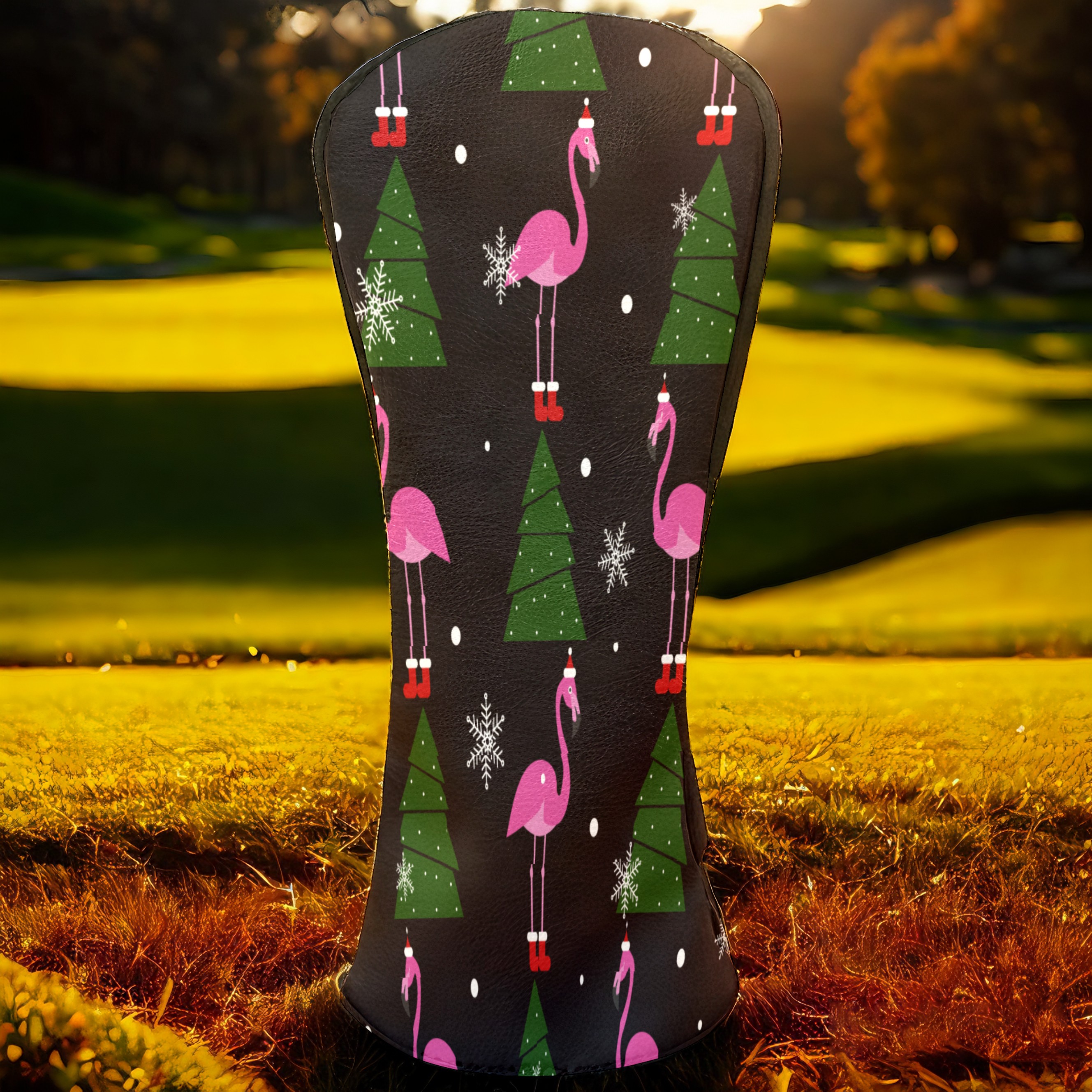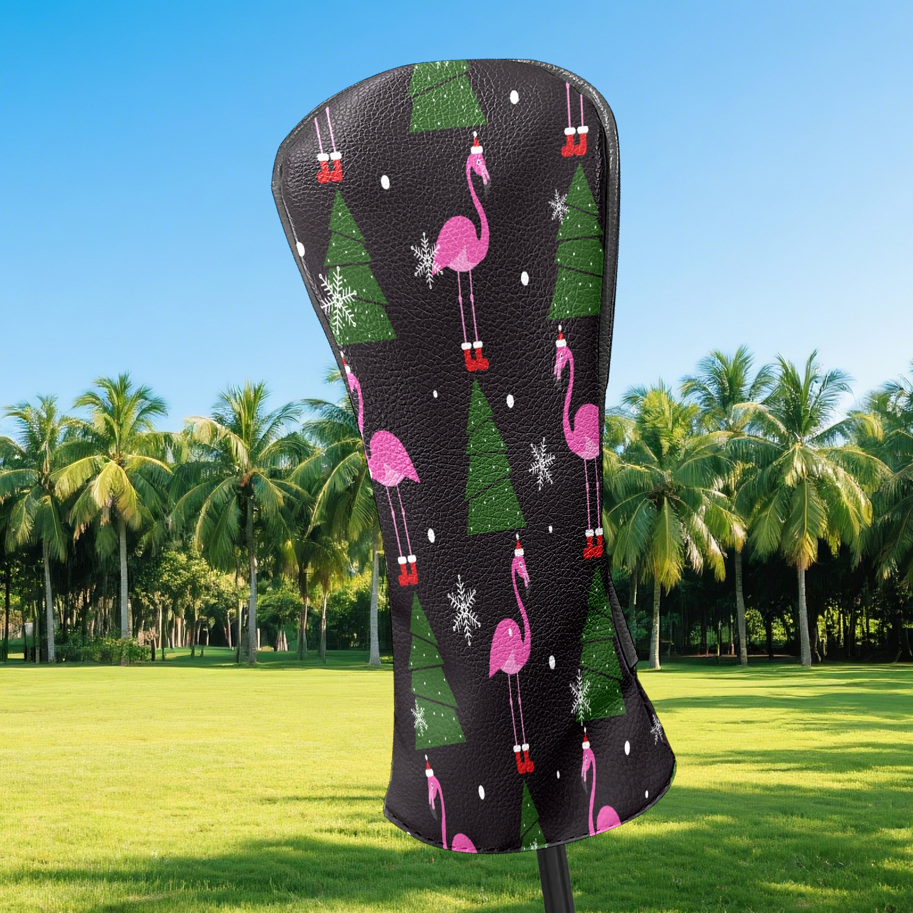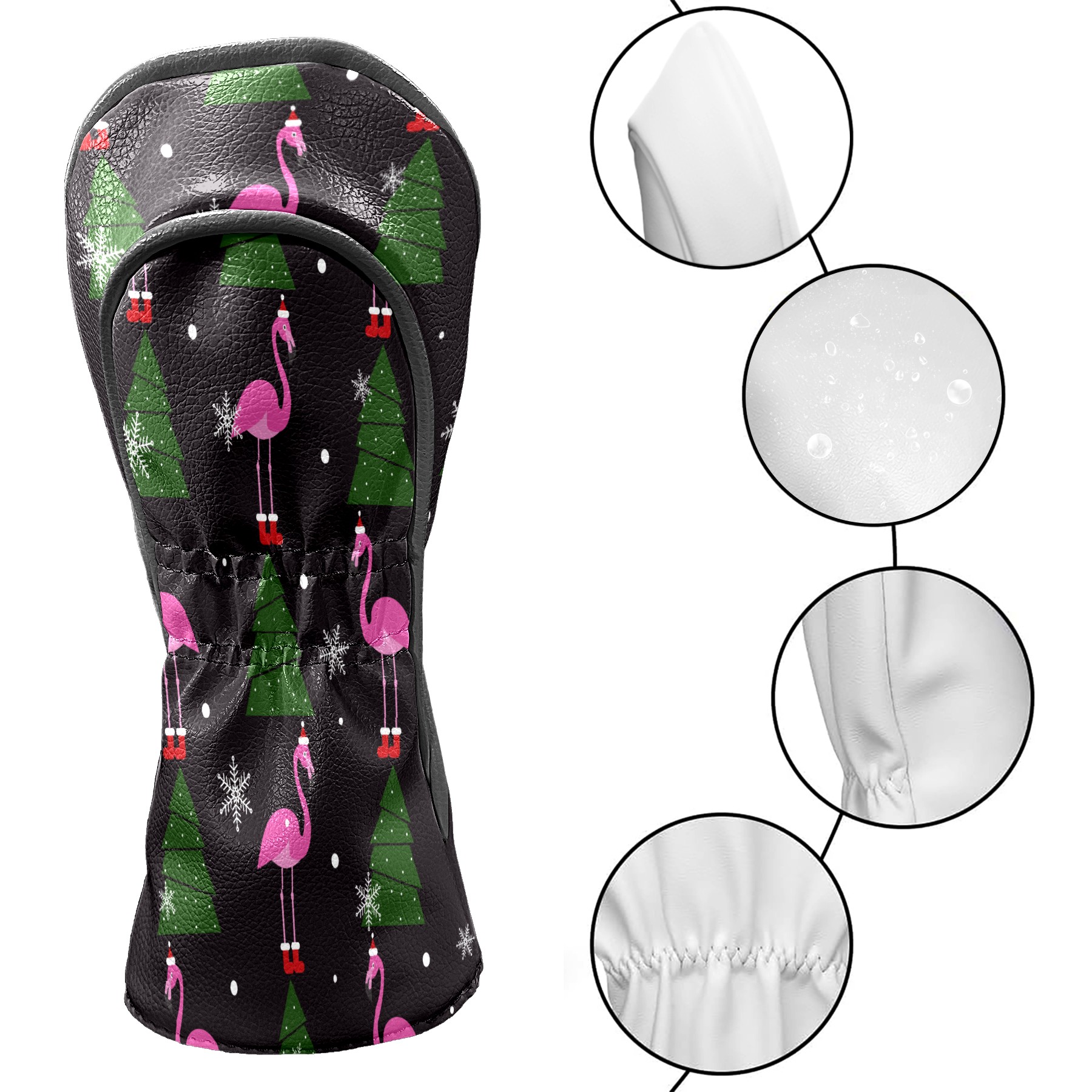 Водонепроницаемый кожаный чехол для головки драйвера удара, чехлы для драйверов Christmas Pink Flamingo XMAS Tree Snowflake