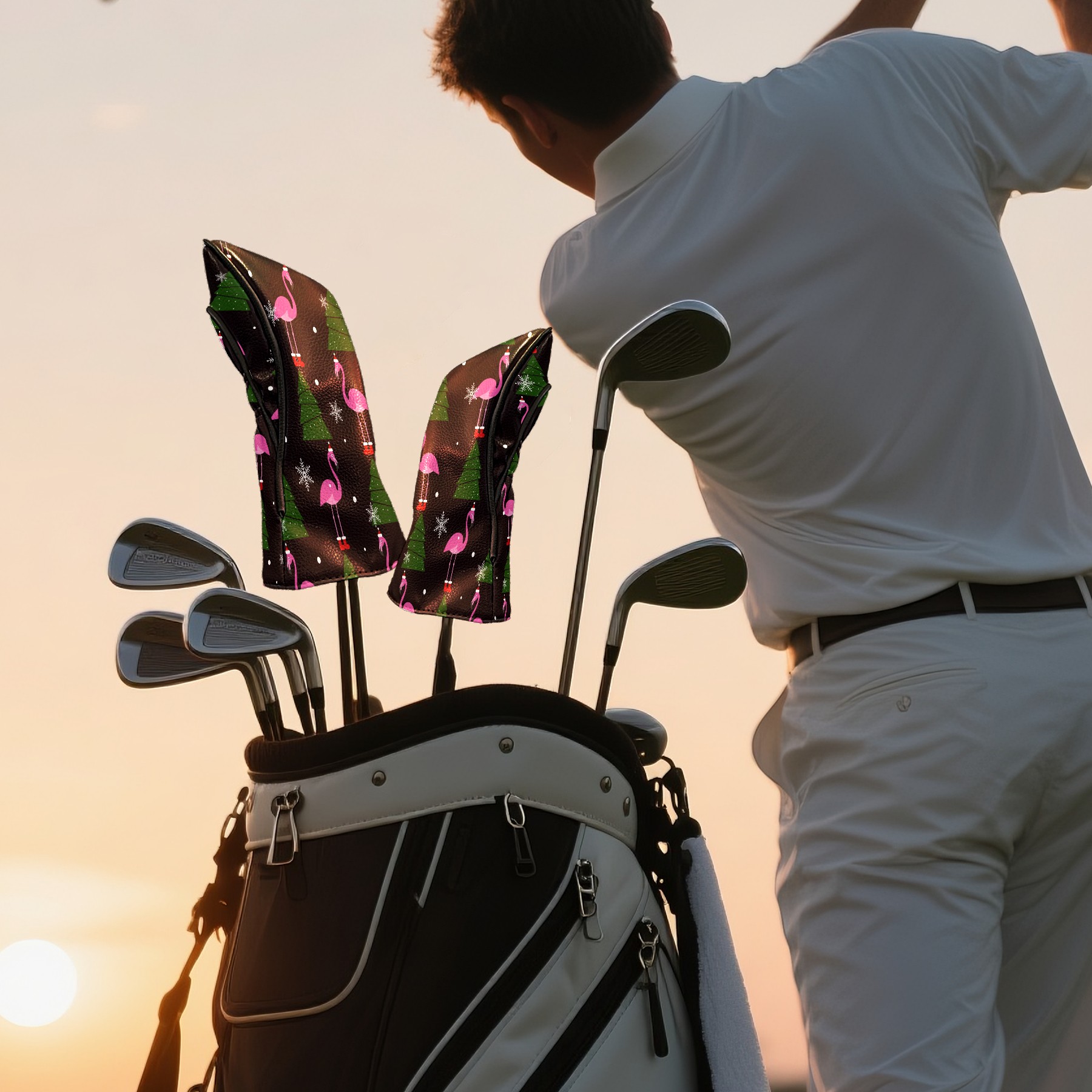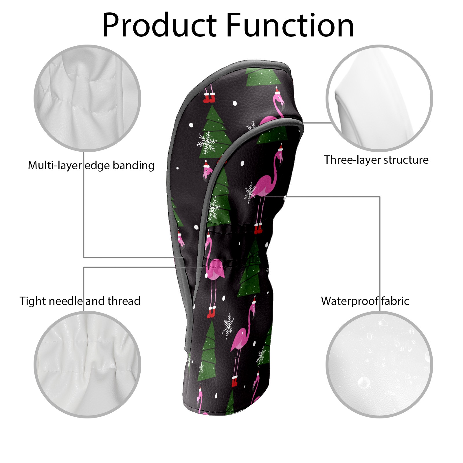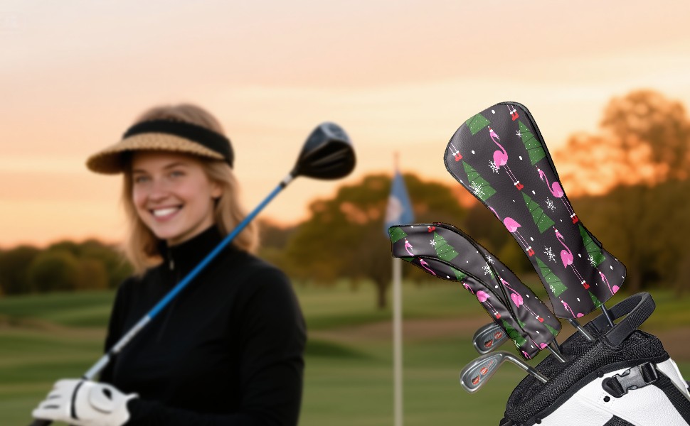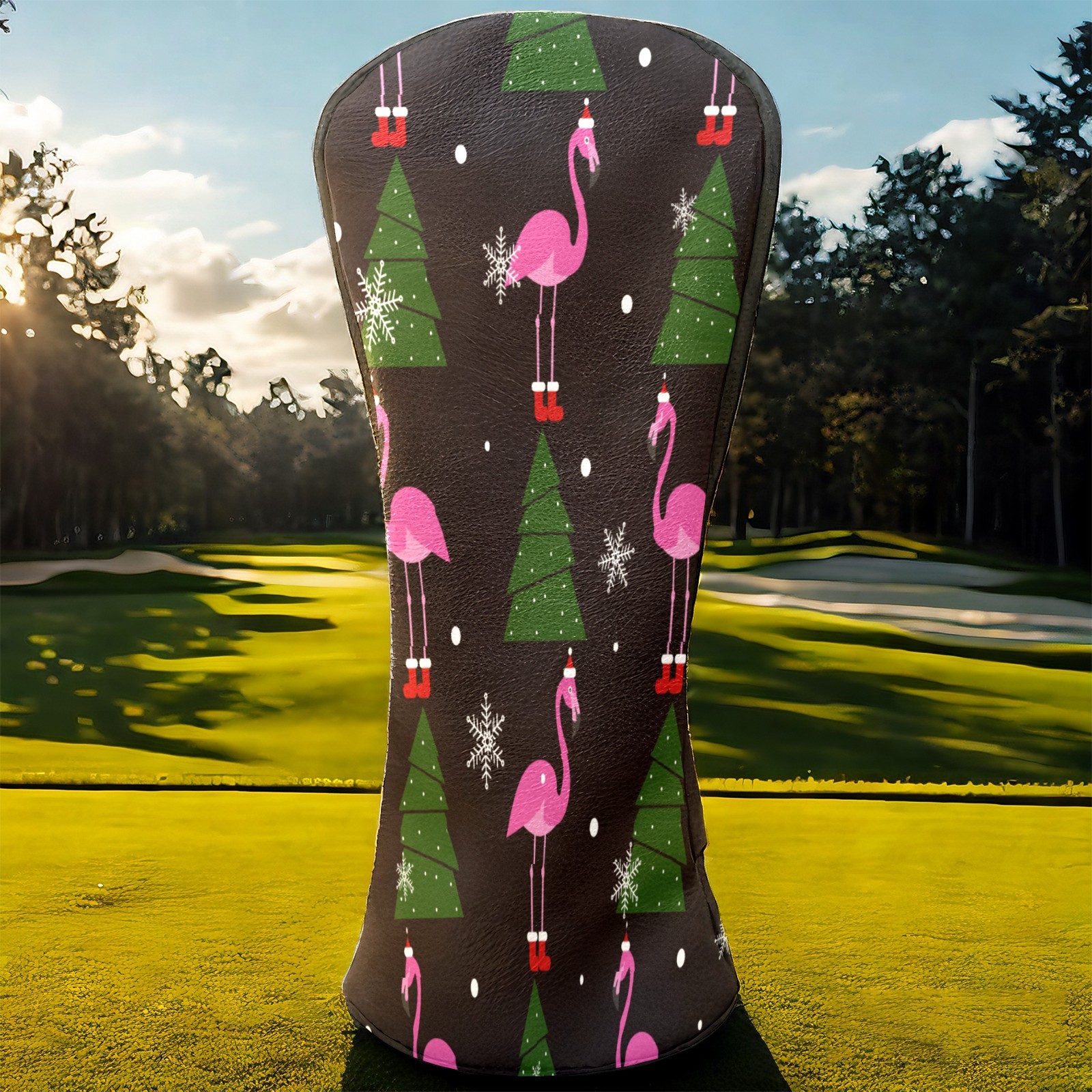 Водонепроницаемый кожаный чехол для головки драйвера удара, чехлы для драйверов Christmas Pink Flamingo XMAS Tree Snowflake