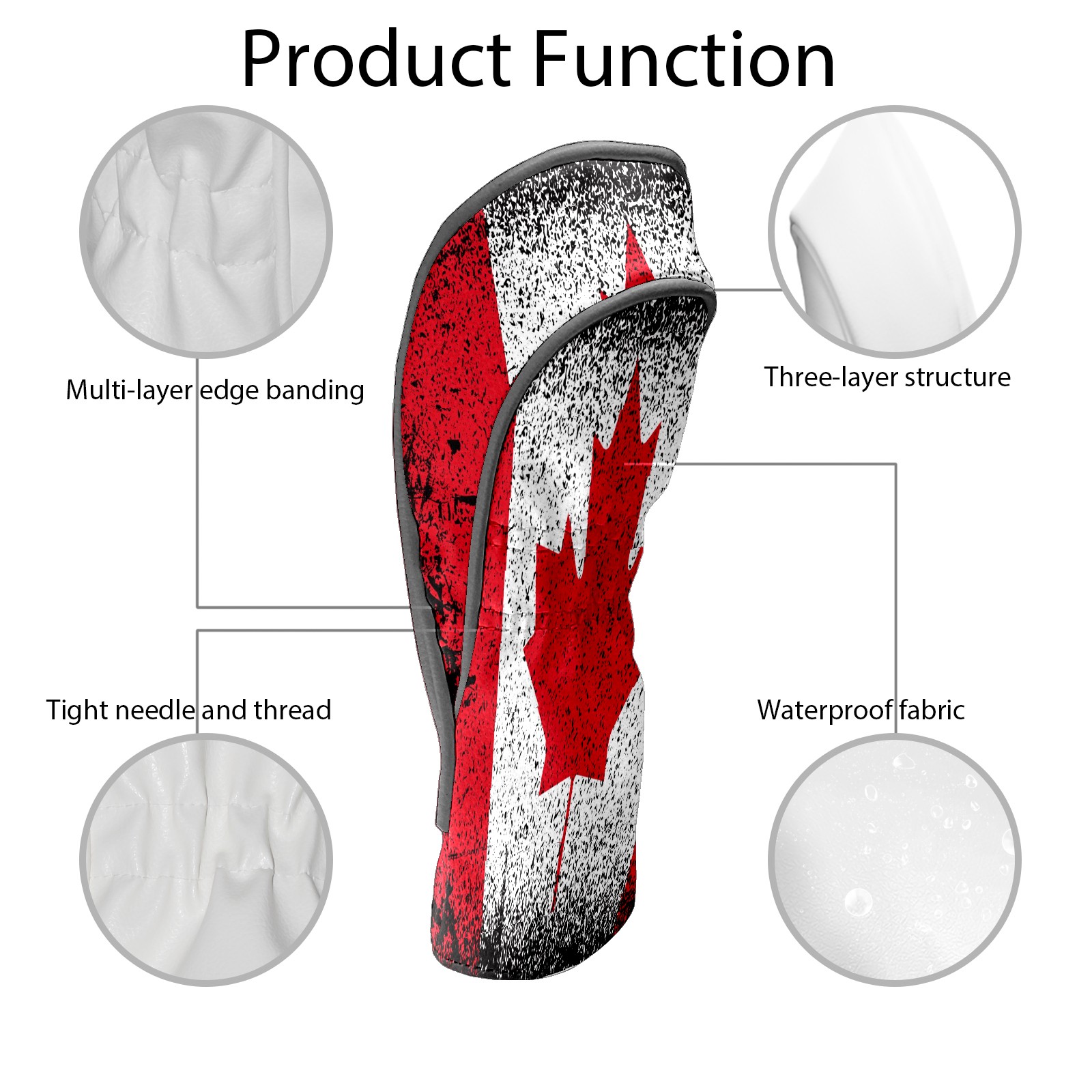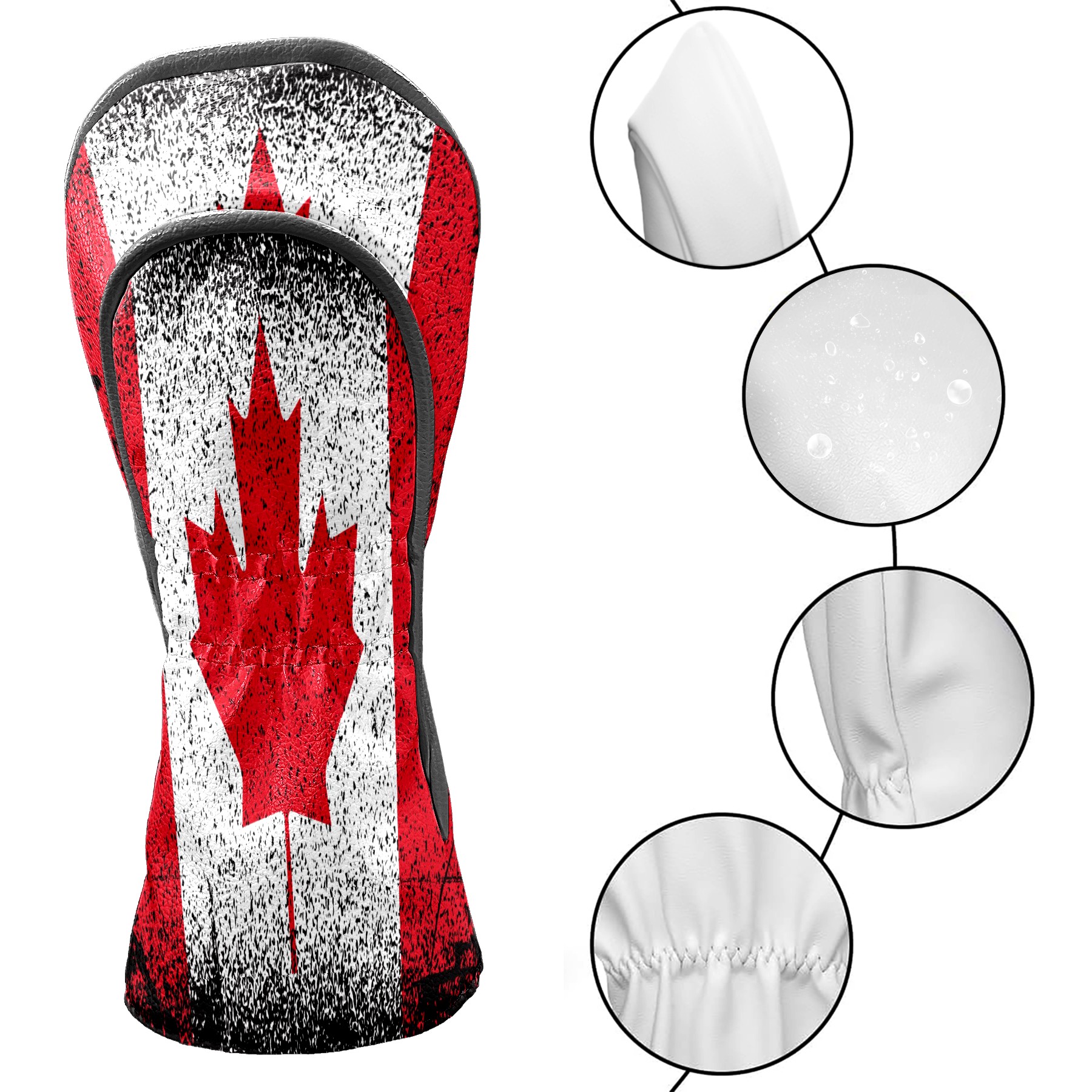 Водонепроницаемый кожаный чехол для головки драйвера удара, чехлы для драйверов Canada Grunge Flag Maple Leaf Red White Black