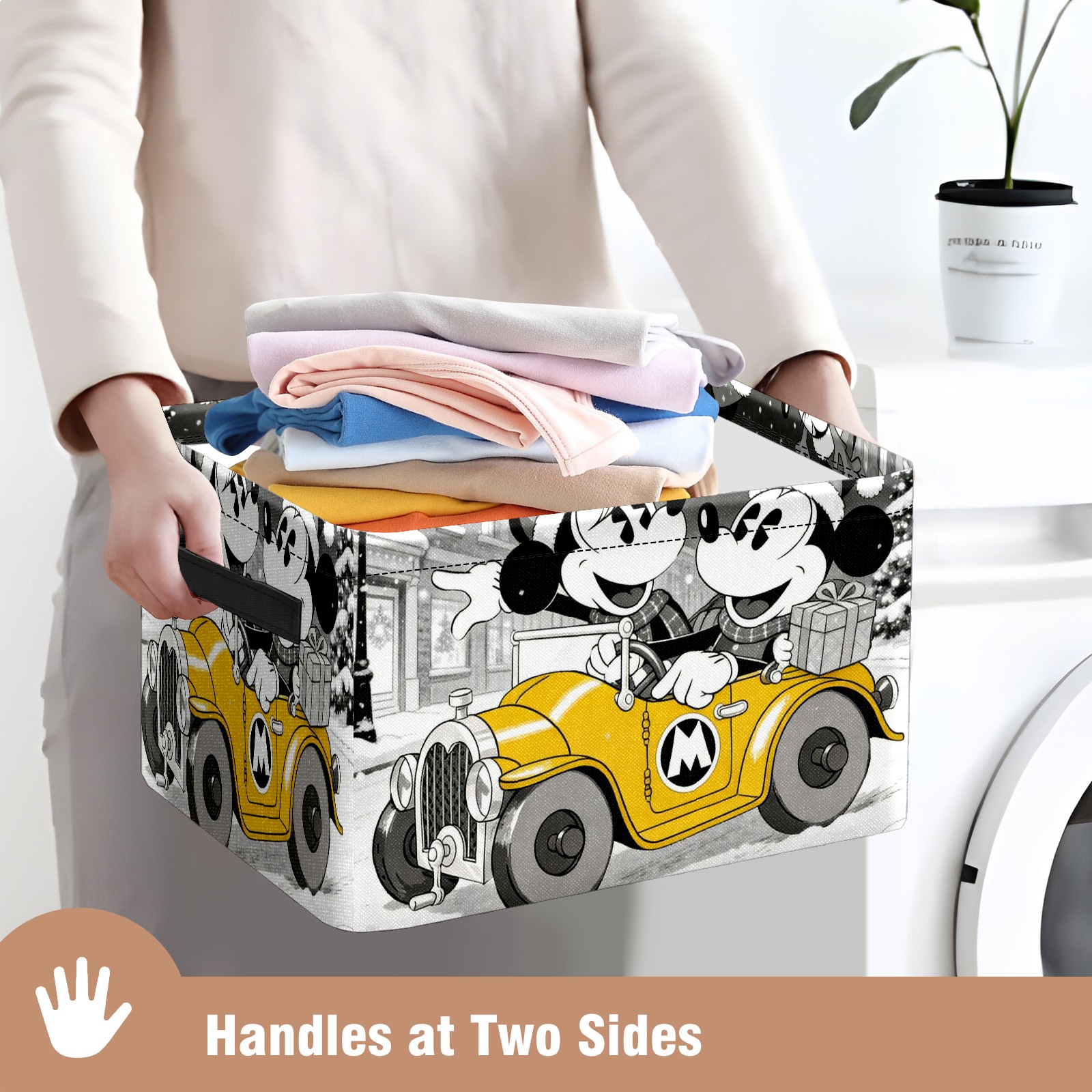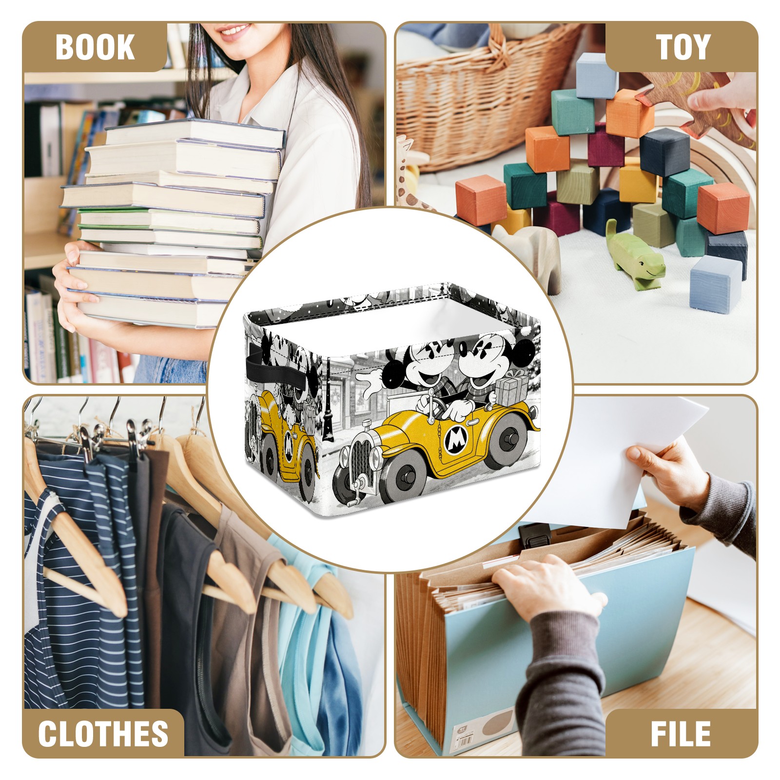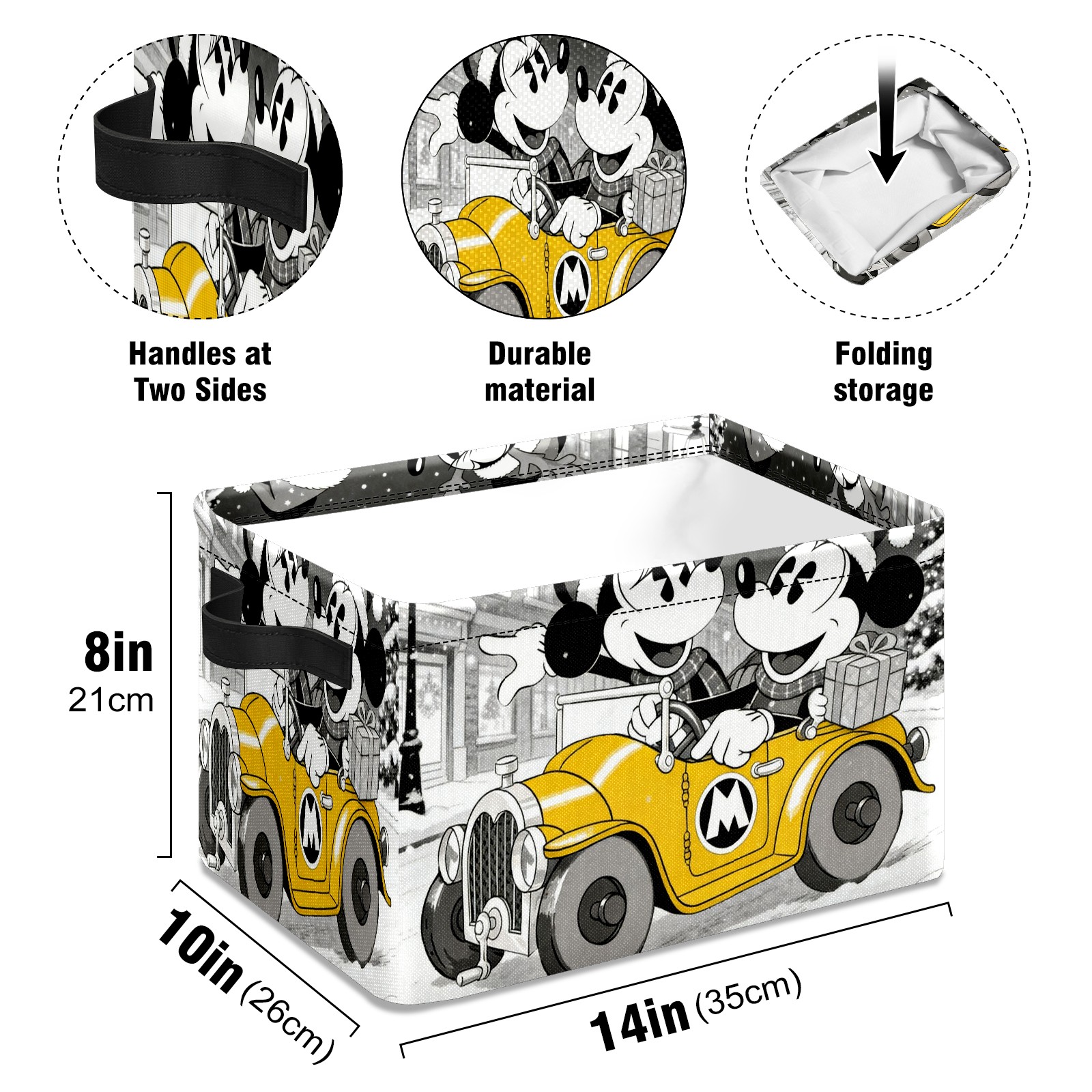 Foldable and Stackable Fabric Storage Basket for Home Organization with Handles, Decorative Closet Bins for Shelves and Laundry Storage( Mickey Yellow Car)