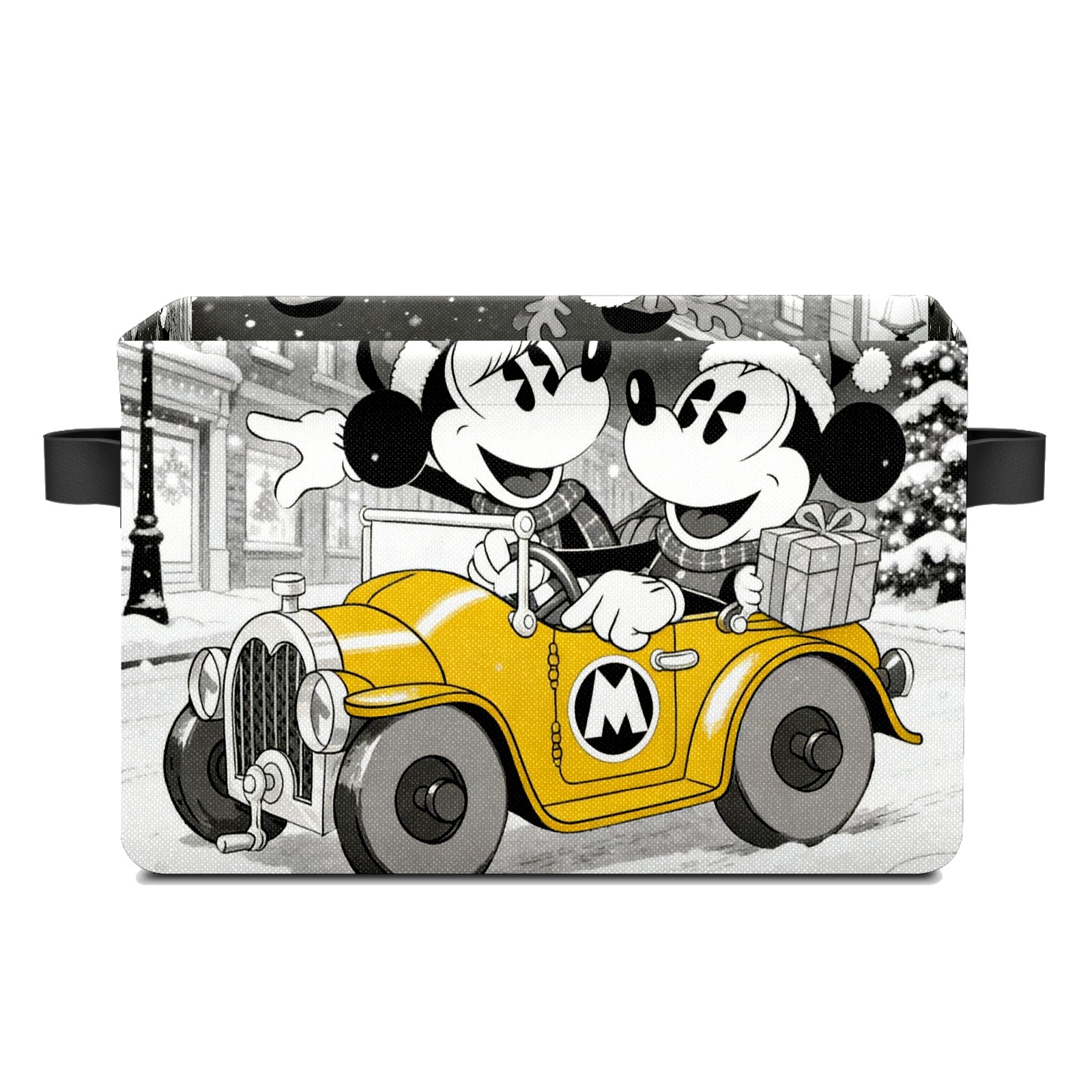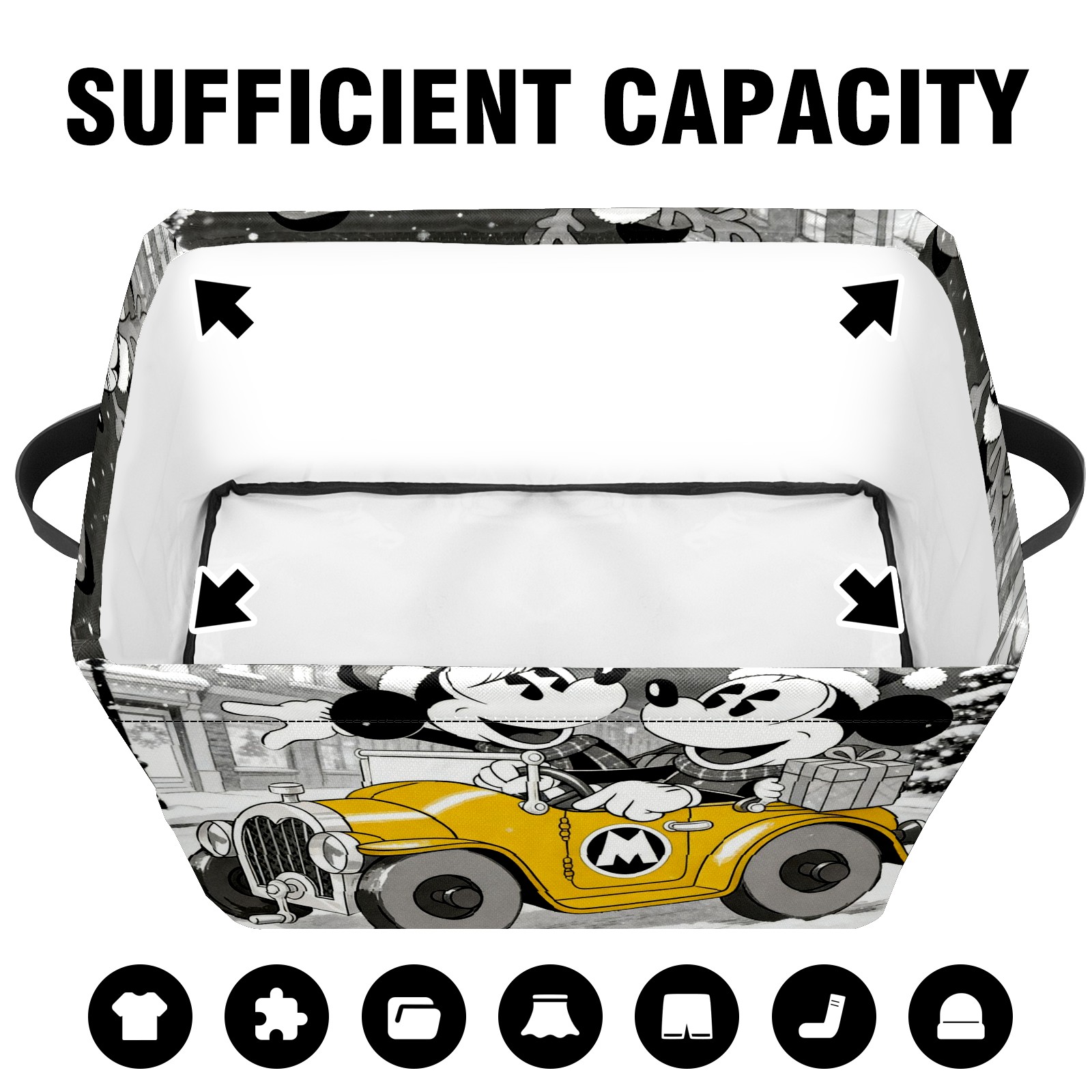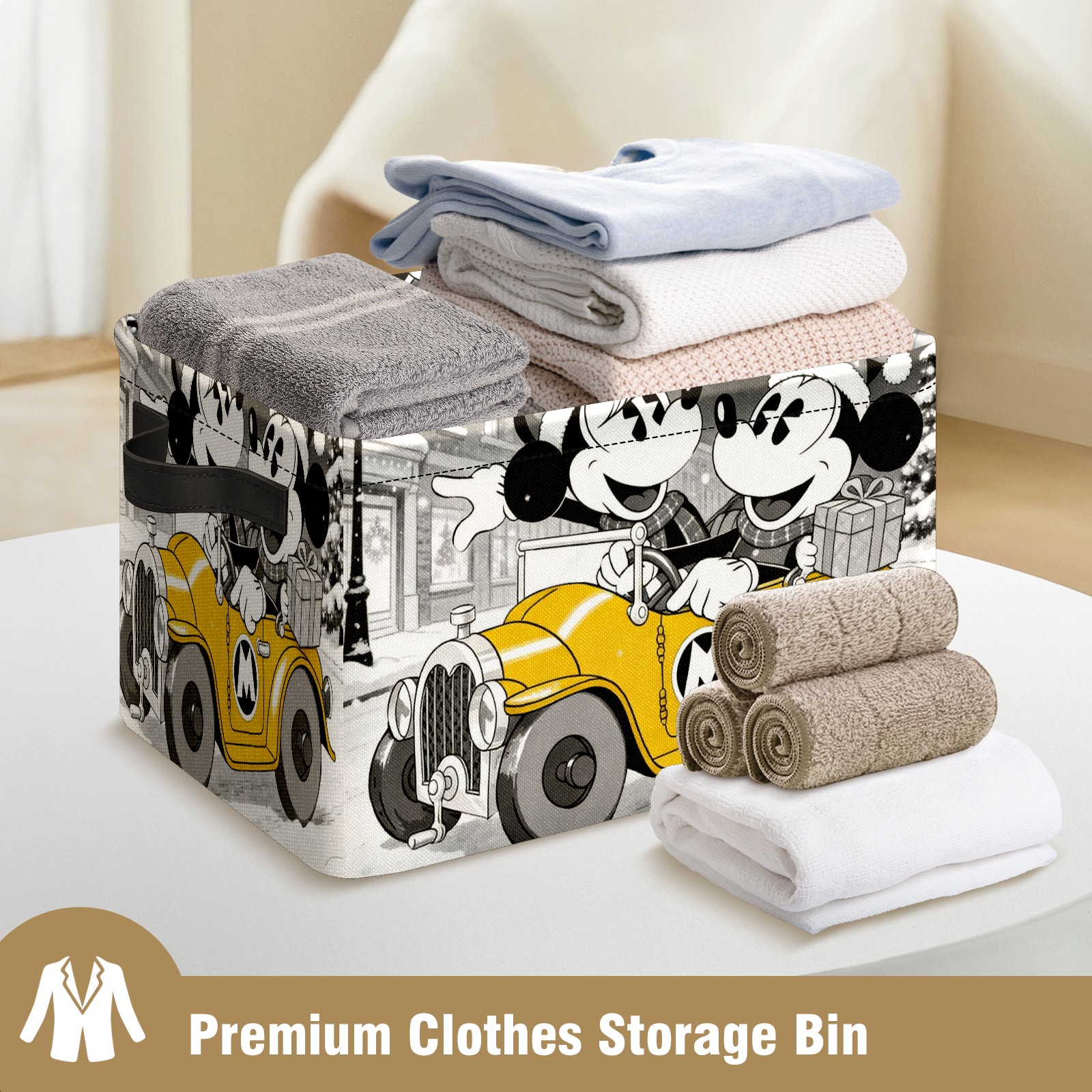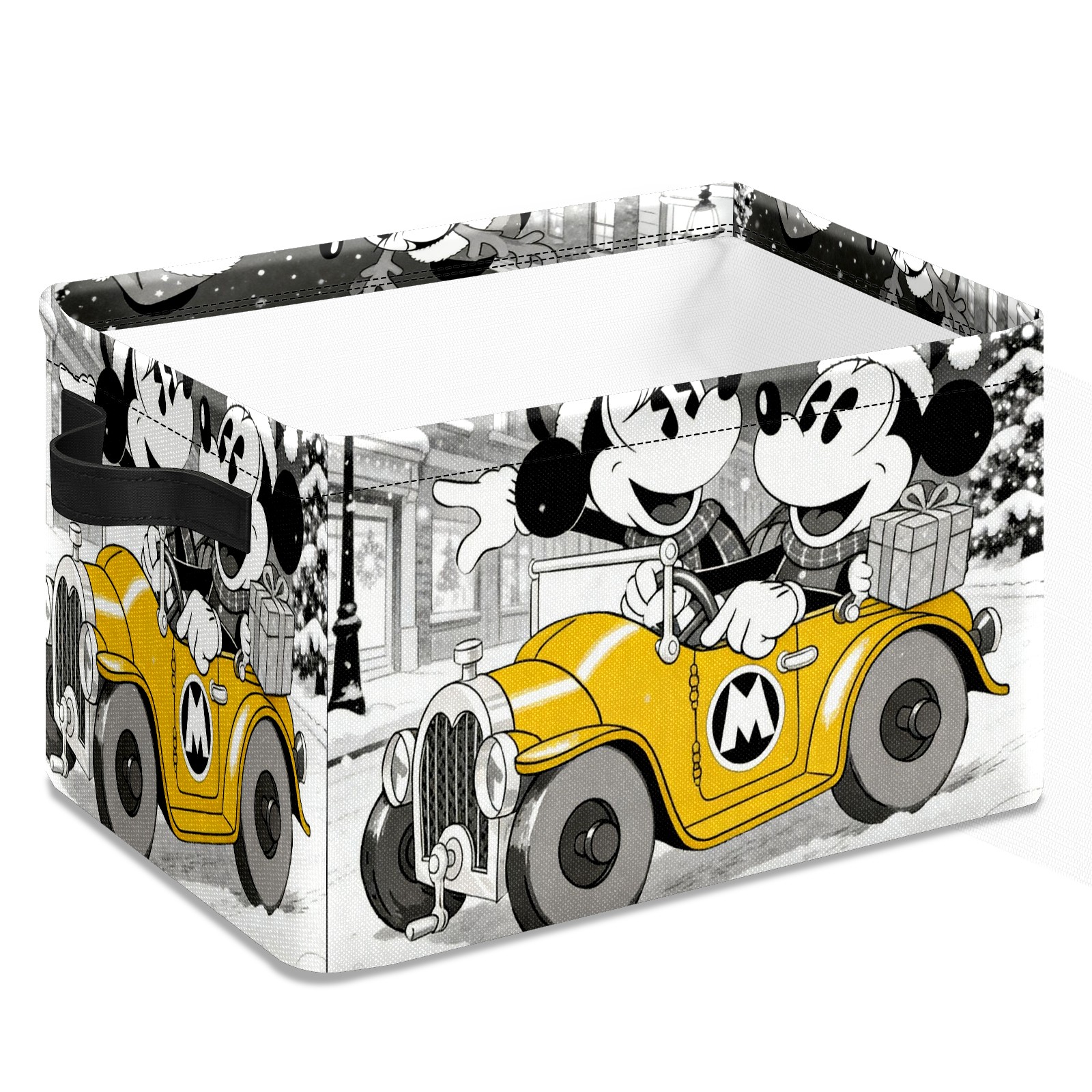 Foldable and Stackable Fabric Storage Basket for Home Organization with Handles, Decorative Closet Bins for Shelves and Laundry Storage( Mickey Yellow Car)