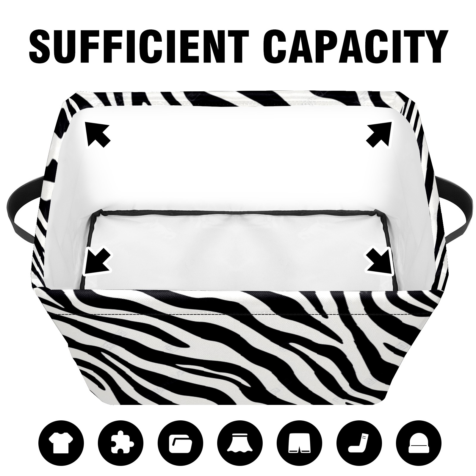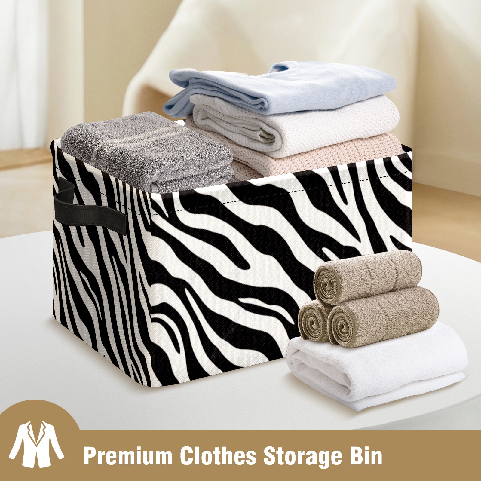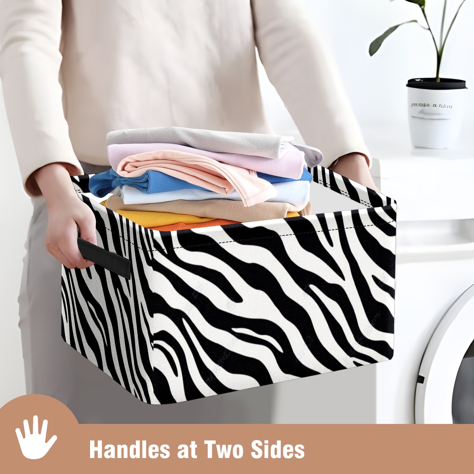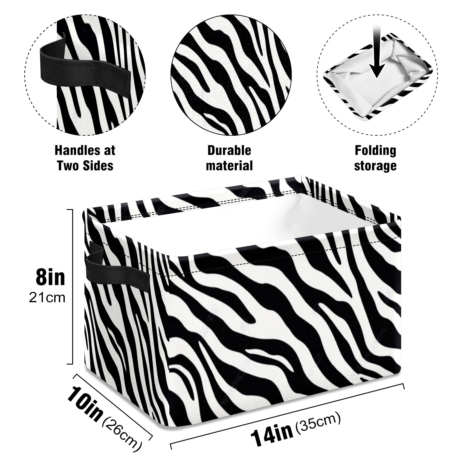 Foldable and Stackable Fabric Storage Basket for Home Organization with Handles, Decorative Closet Bins for Shelves and Laundry Storage( High Contrast Zebra Stripe Design)