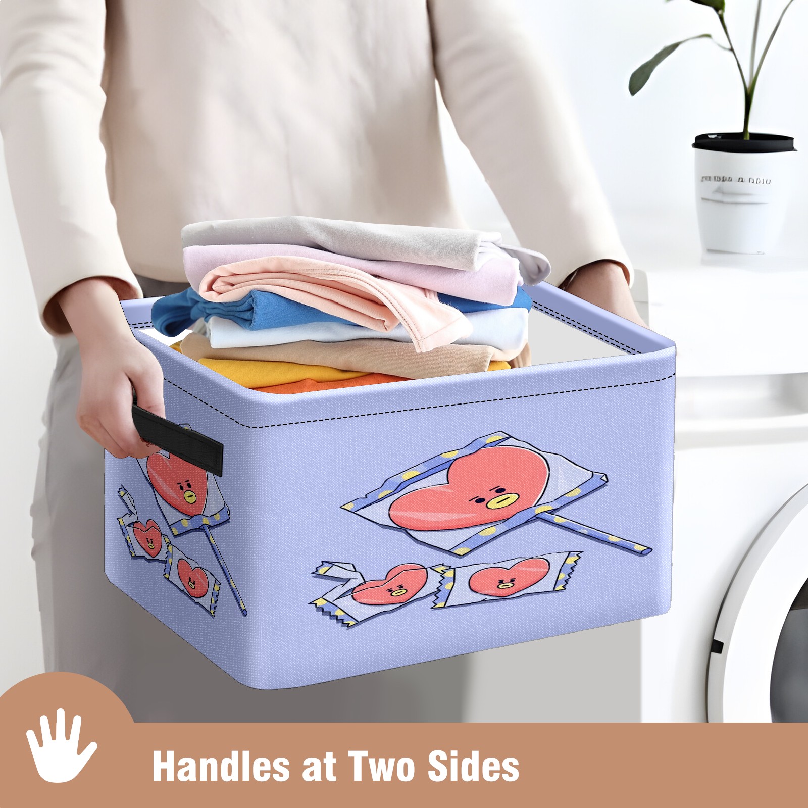 Foldable and Stackable Fabric Storage Basket for Home Organization with Handles, Decorative Closet Bins for Shelves and Laundry Storage( Bt21-29)