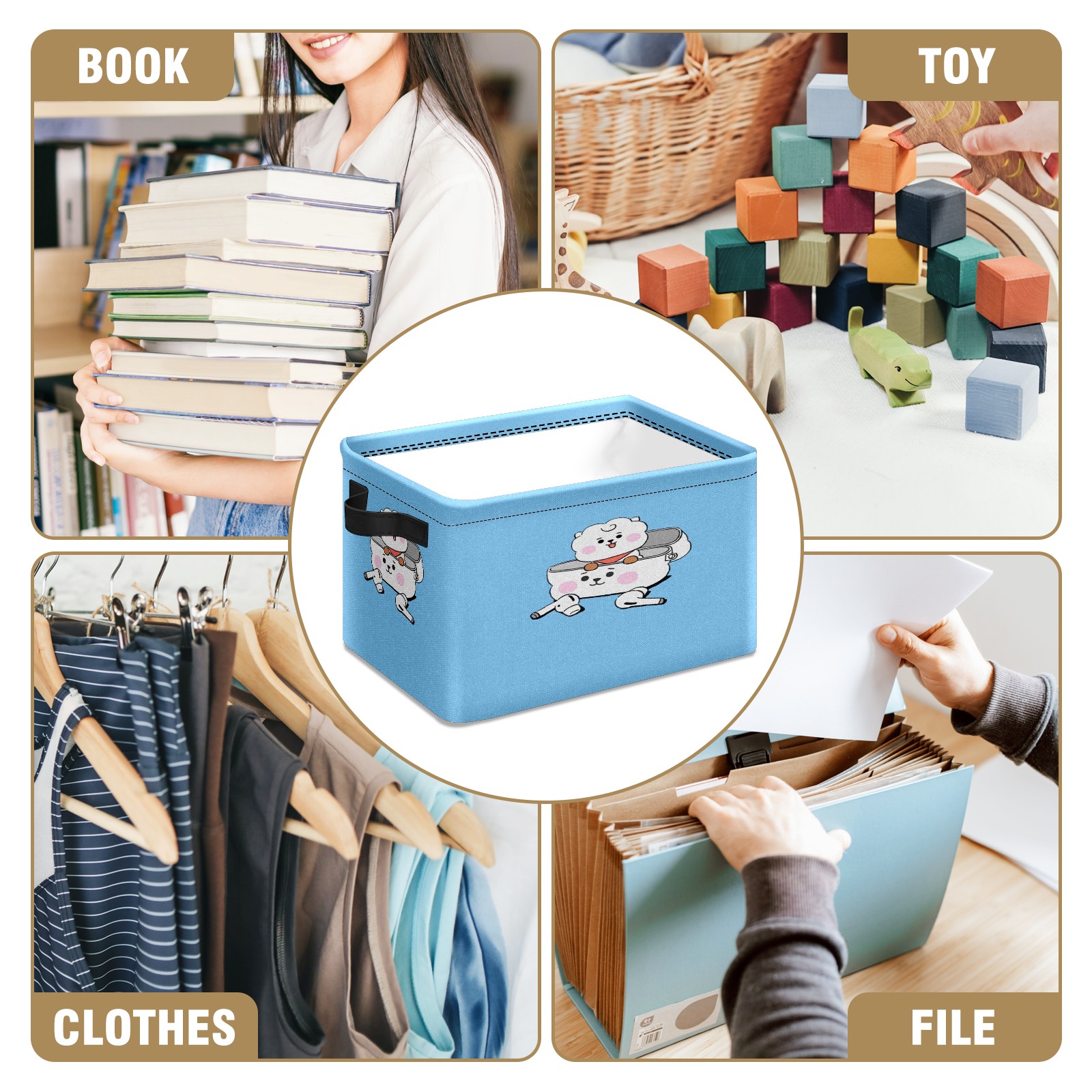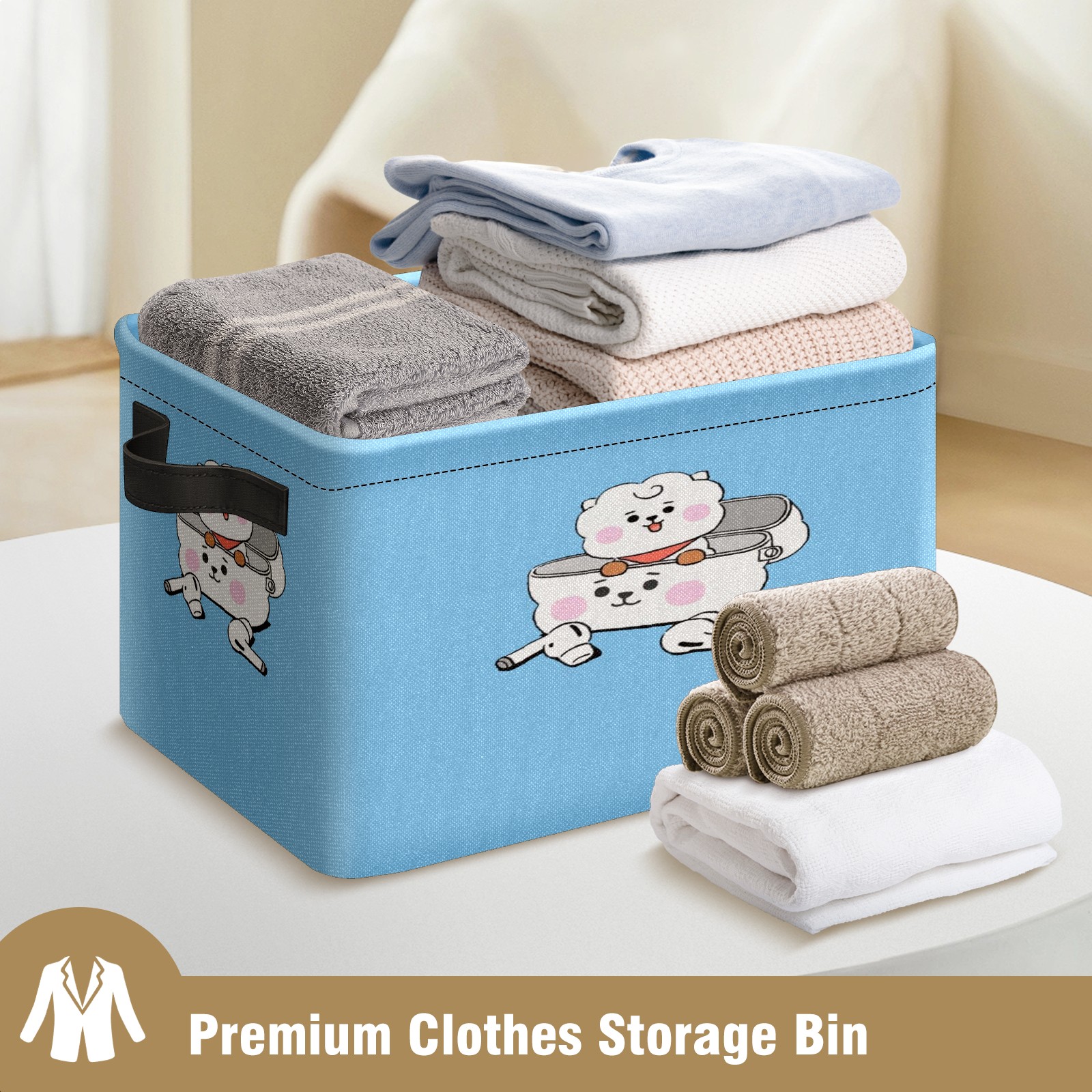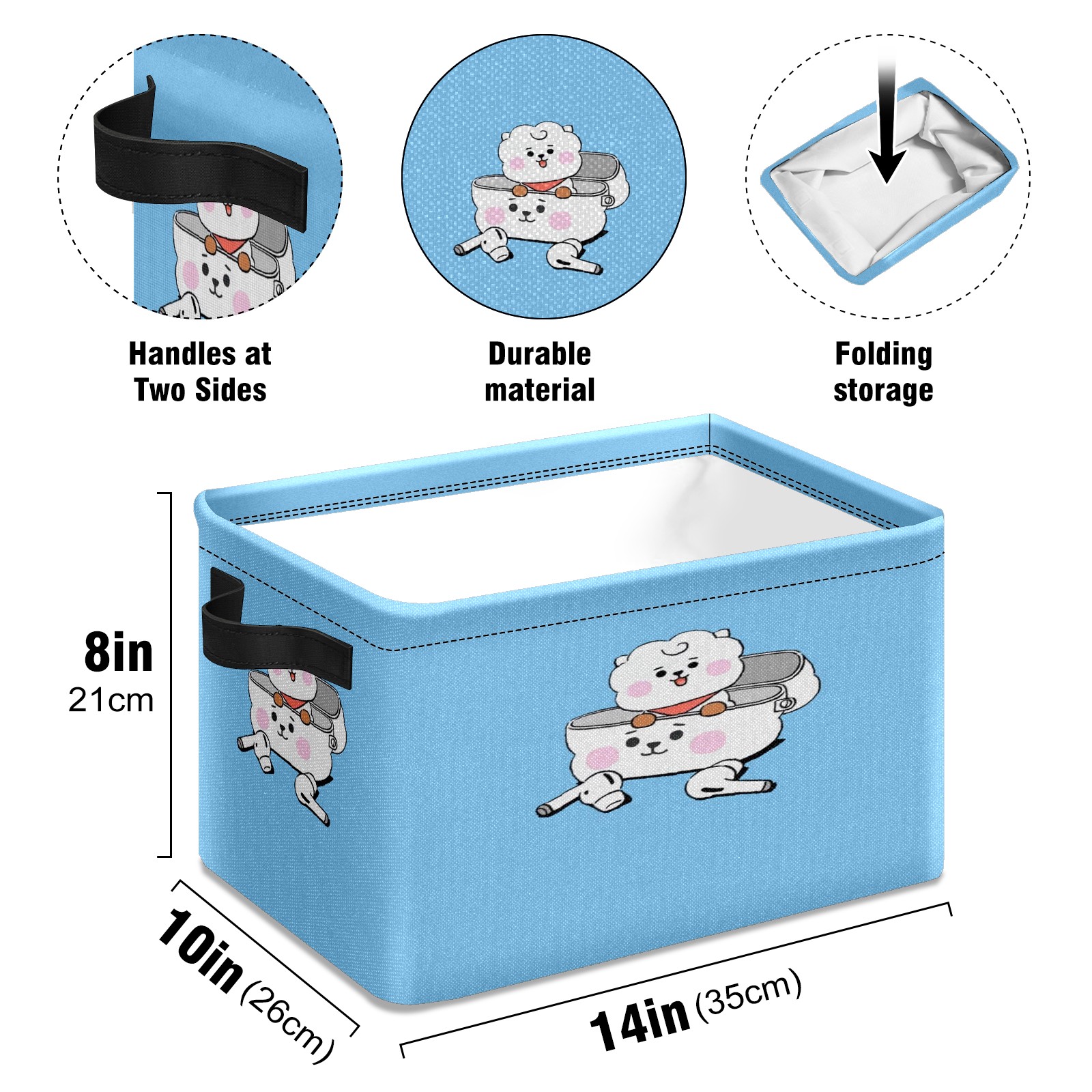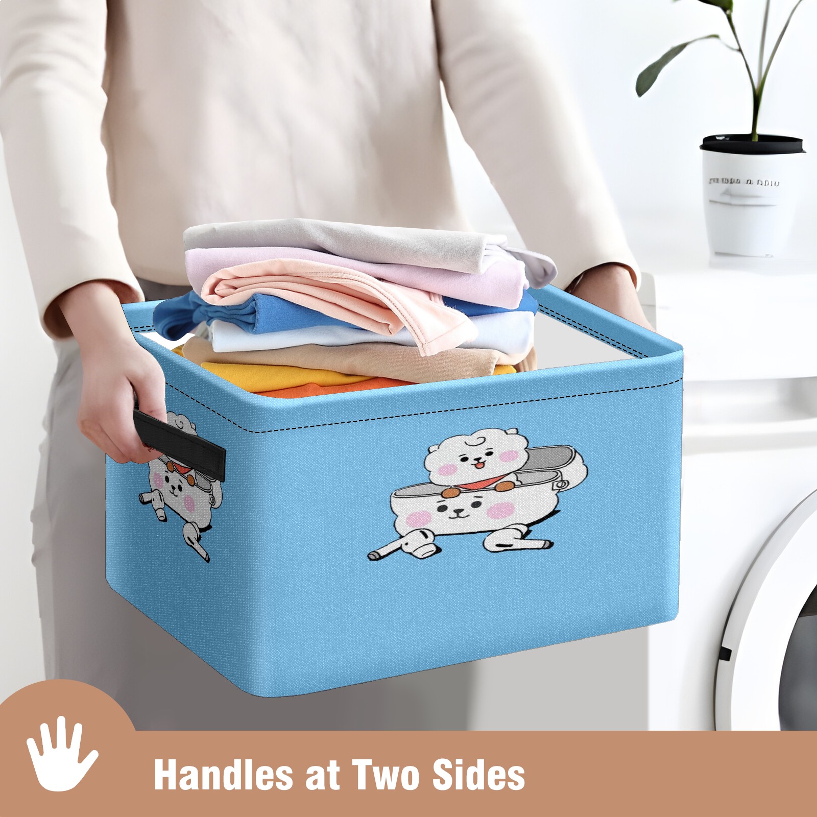 Foldable and Stackable Fabric Storage Basket for Home Organization with Handles, Decorative Closet Bins for Shelves and Laundry Storage( RJ BT21 BTS)