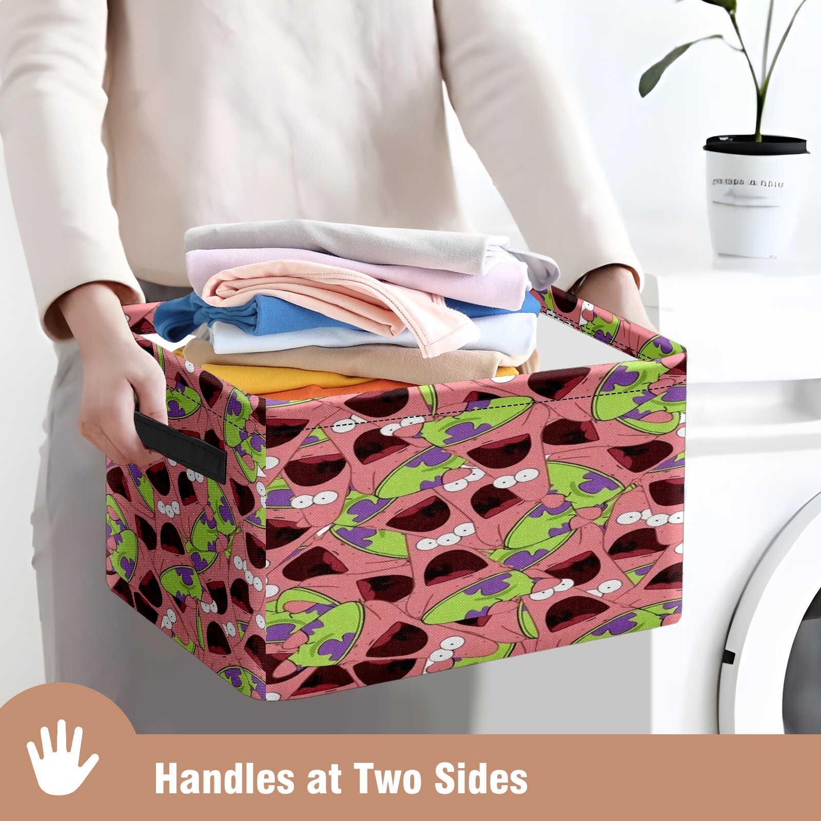 Foldable and Stackable Fabric Storage Basket for Home Organization with Handles, Decorative Closet Bins for Shelves and Laundry Storage( 海绵宝宝7)