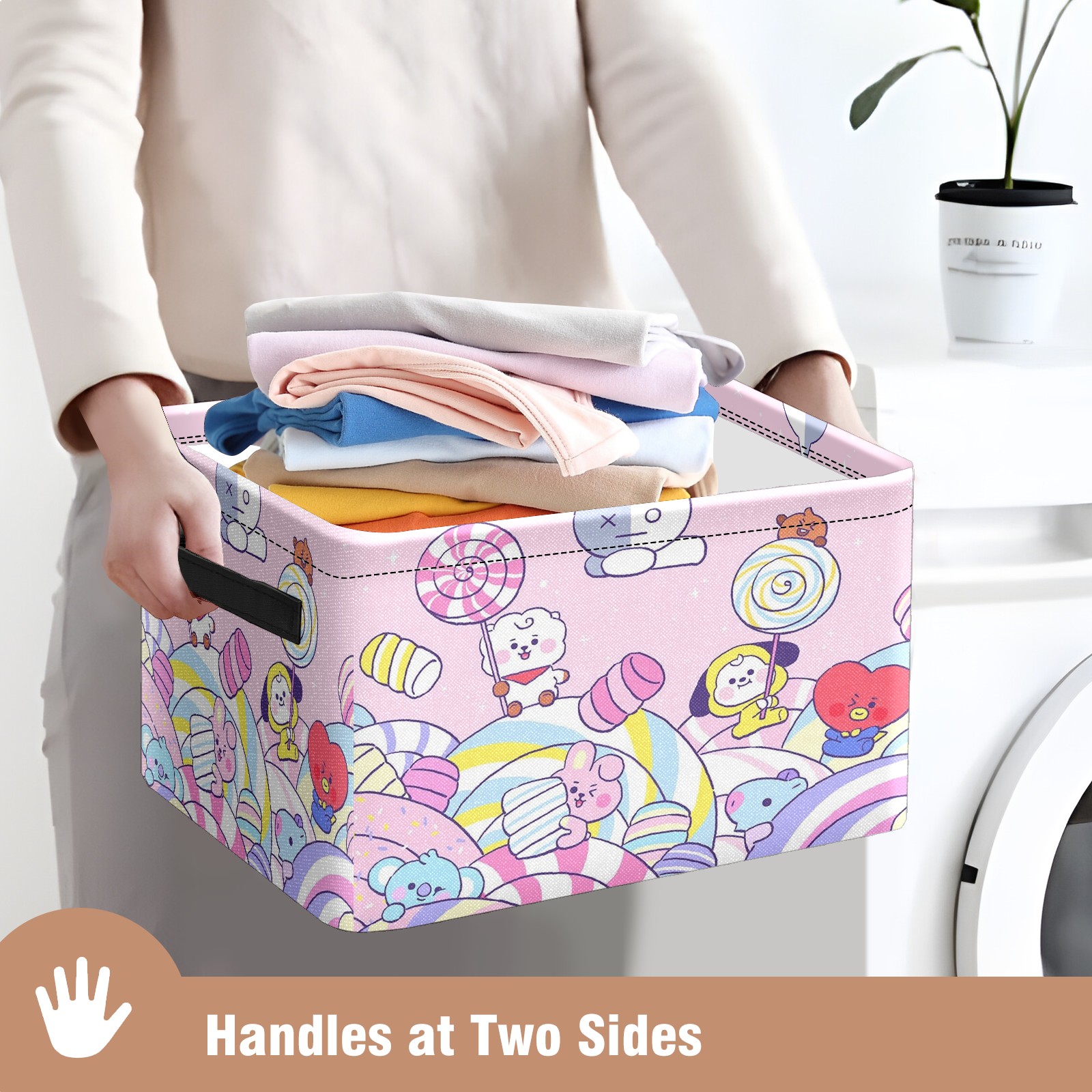 Foldable and Stackable Fabric Storage Basket for Home Organization with Handles, Decorative Closet Bins for Shelves and Laundry Storage( Bt21-20)