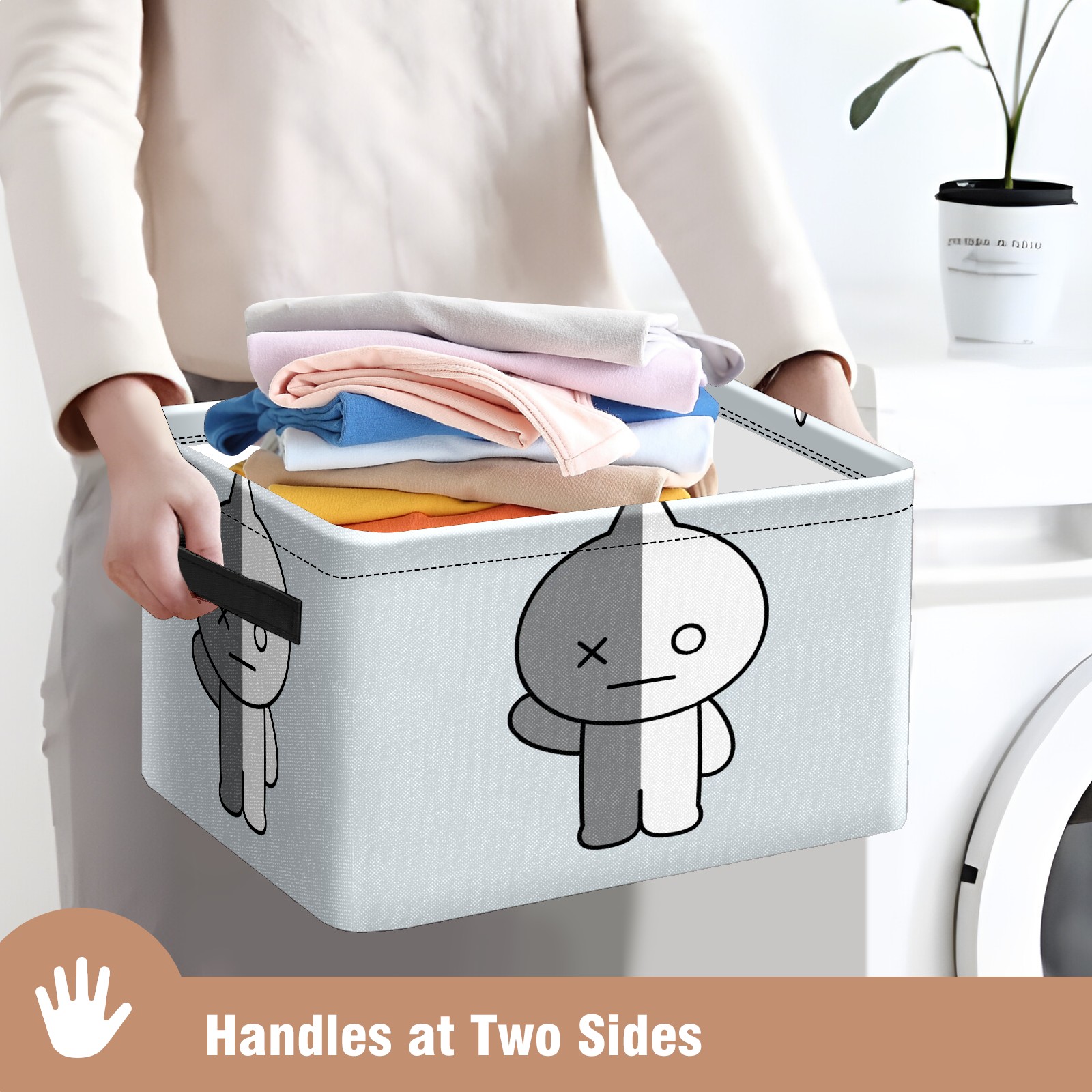 Foldable and Stackable Fabric Storage Basket for Home Organization with Handles, Decorative Closet Bins for Shelves and Laundry Storage( Bt21 VAN Bts)