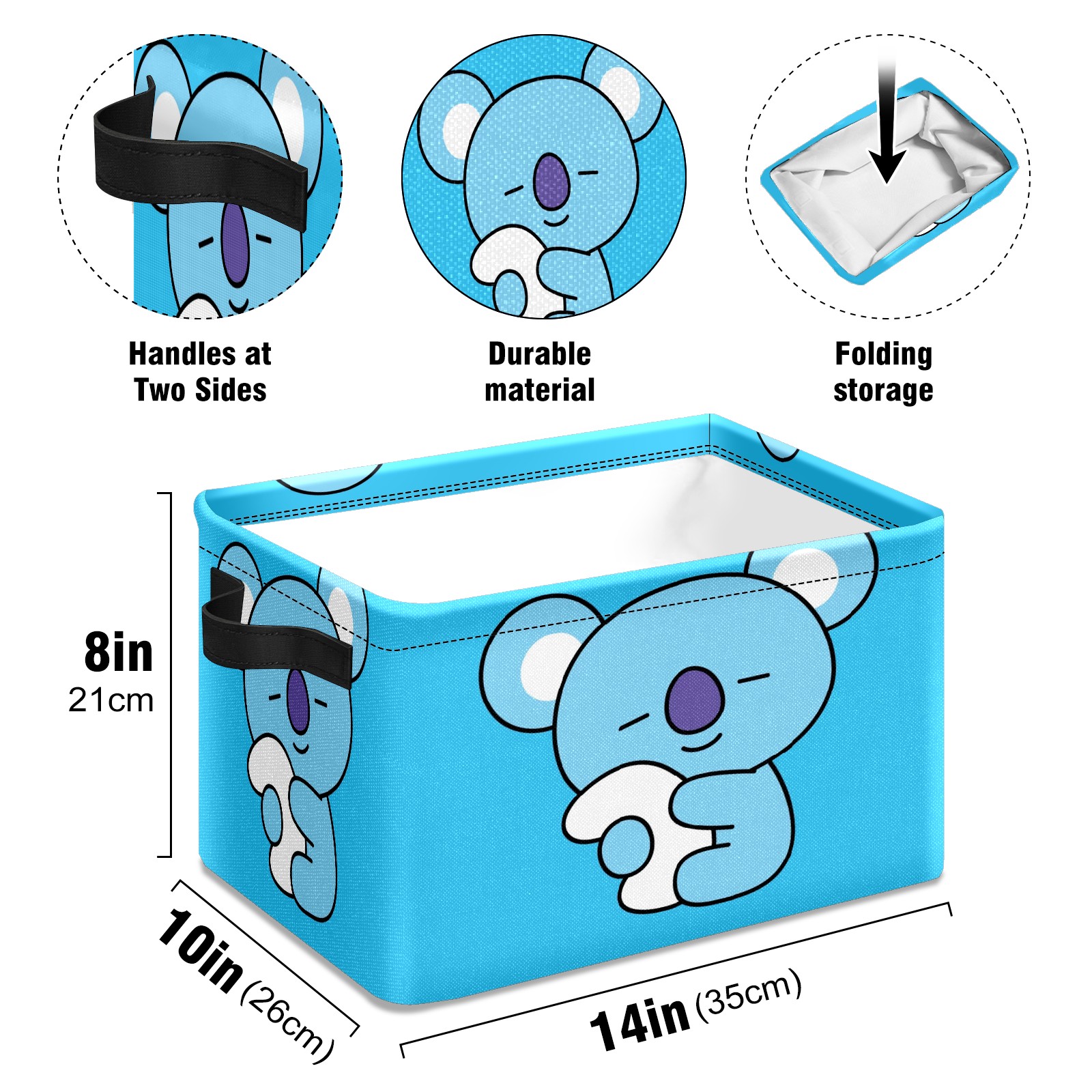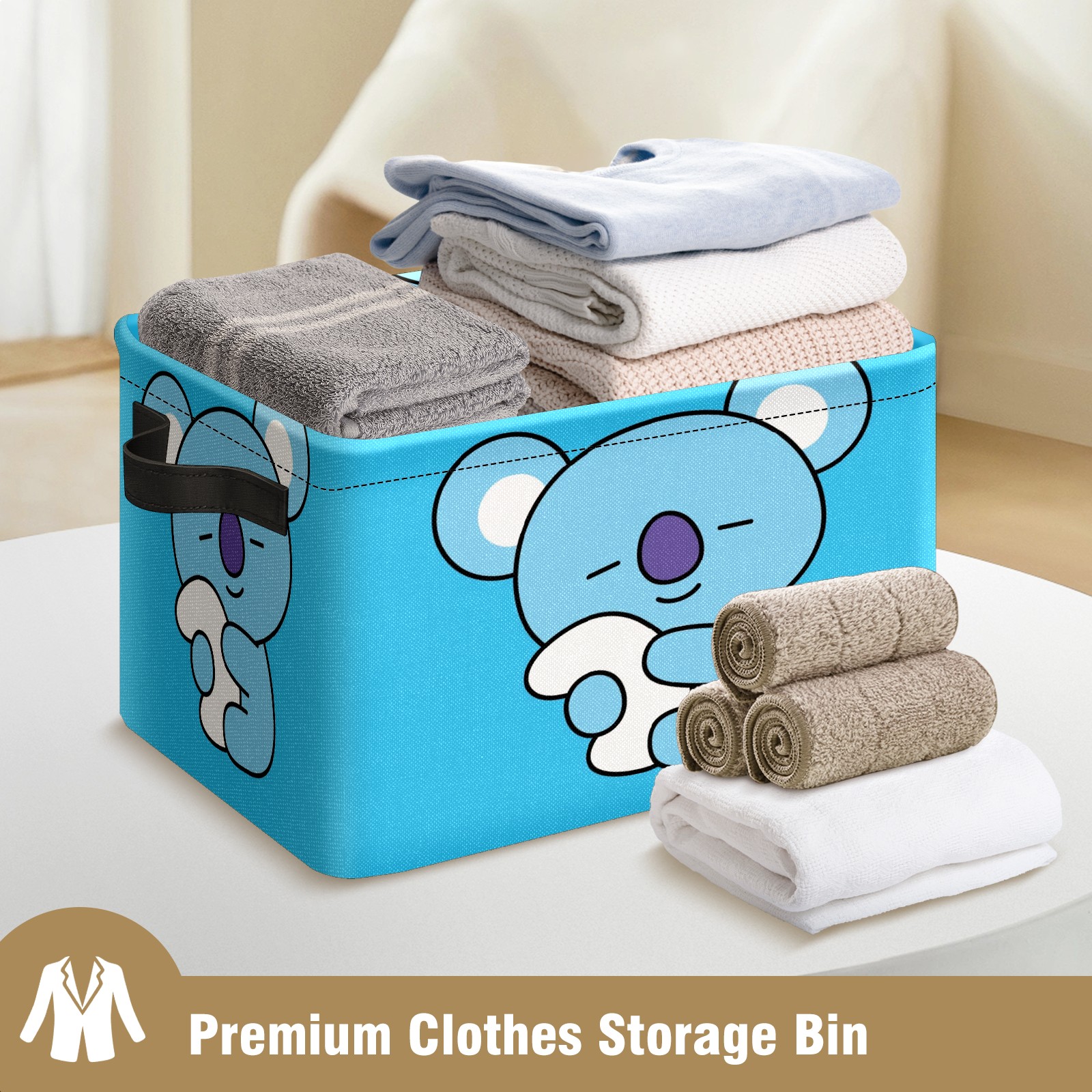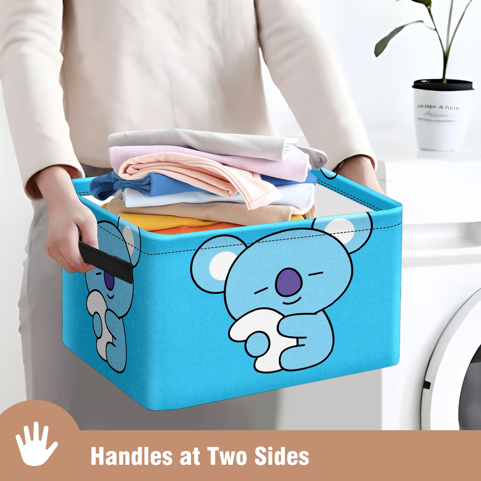 Foldable and Stackable Fabric Storage Basket for Home Organization with Handles, Decorative Closet Bins for Shelves and Laundry Storage( Bt21 KOYA Bts)