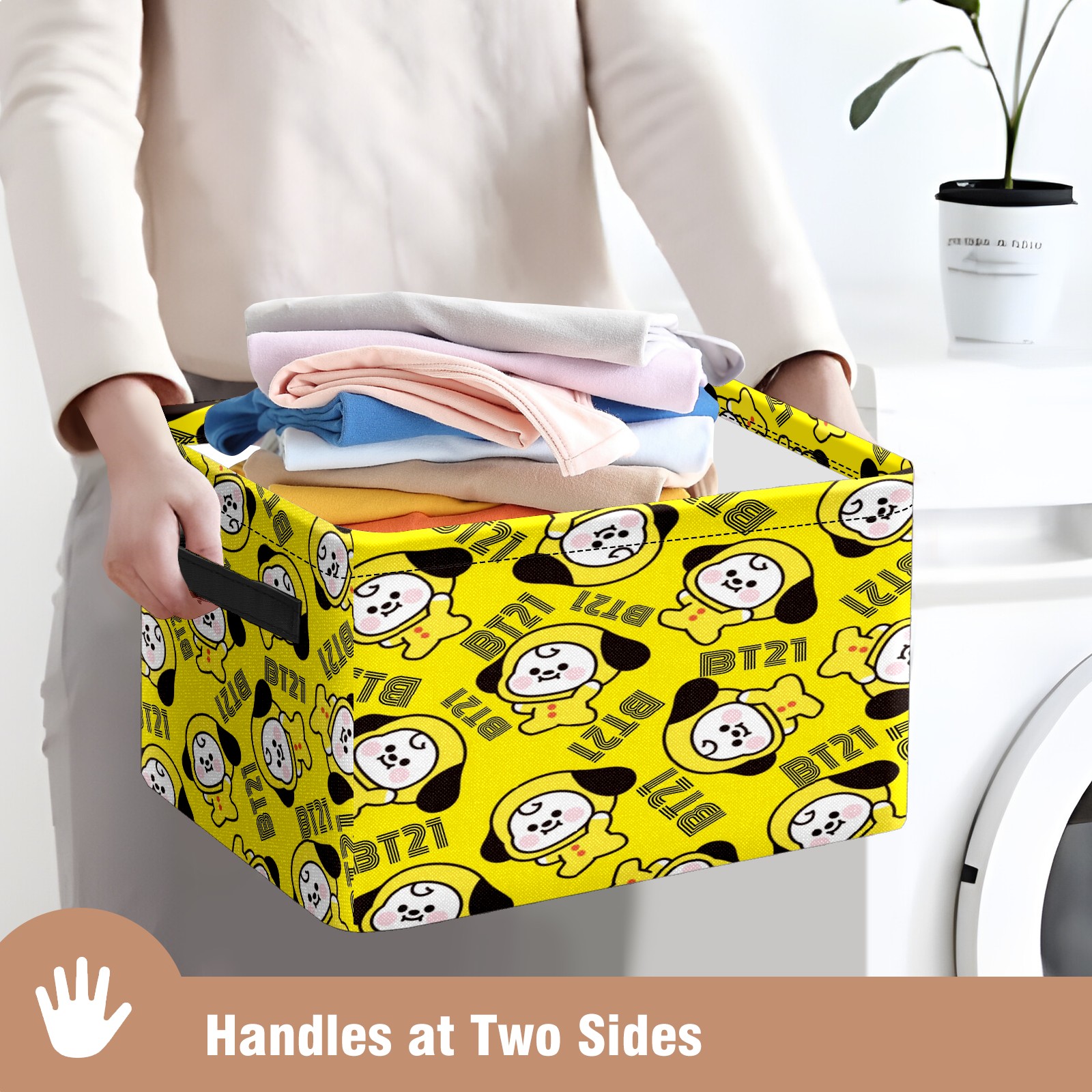 Foldable and Stackable Fabric Storage Basket for Home Organization with Handles, Decorative Closet Bins for Shelves and Laundry Storage( Bt21-01)