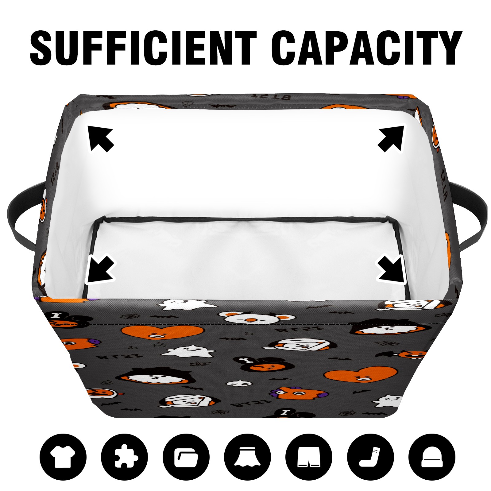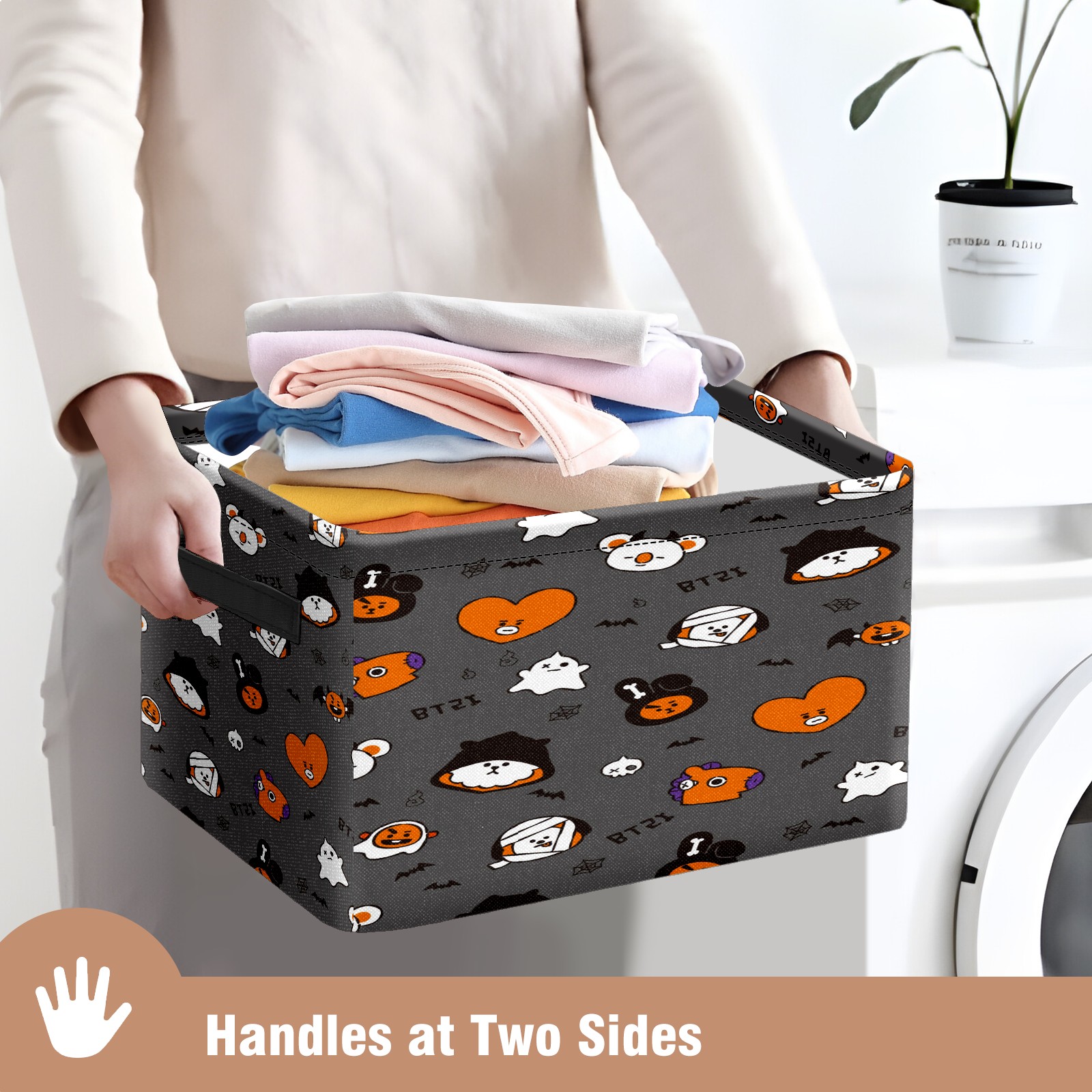 Foldable and Stackable Fabric Storage Basket for Home Organization with Handles, Decorative Closet Bins for Shelves and Laundry Storage( Bt21)