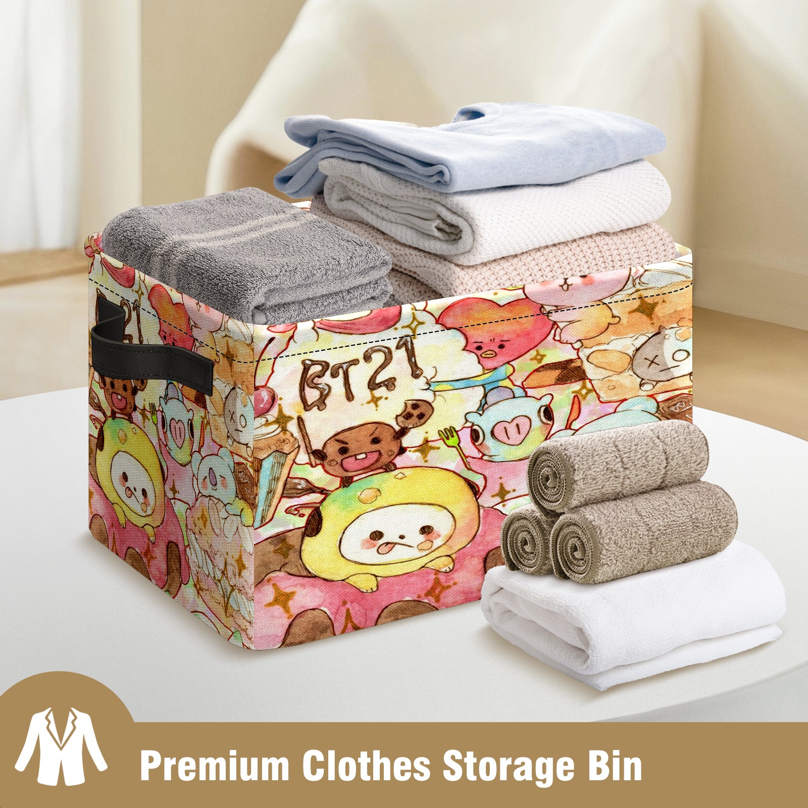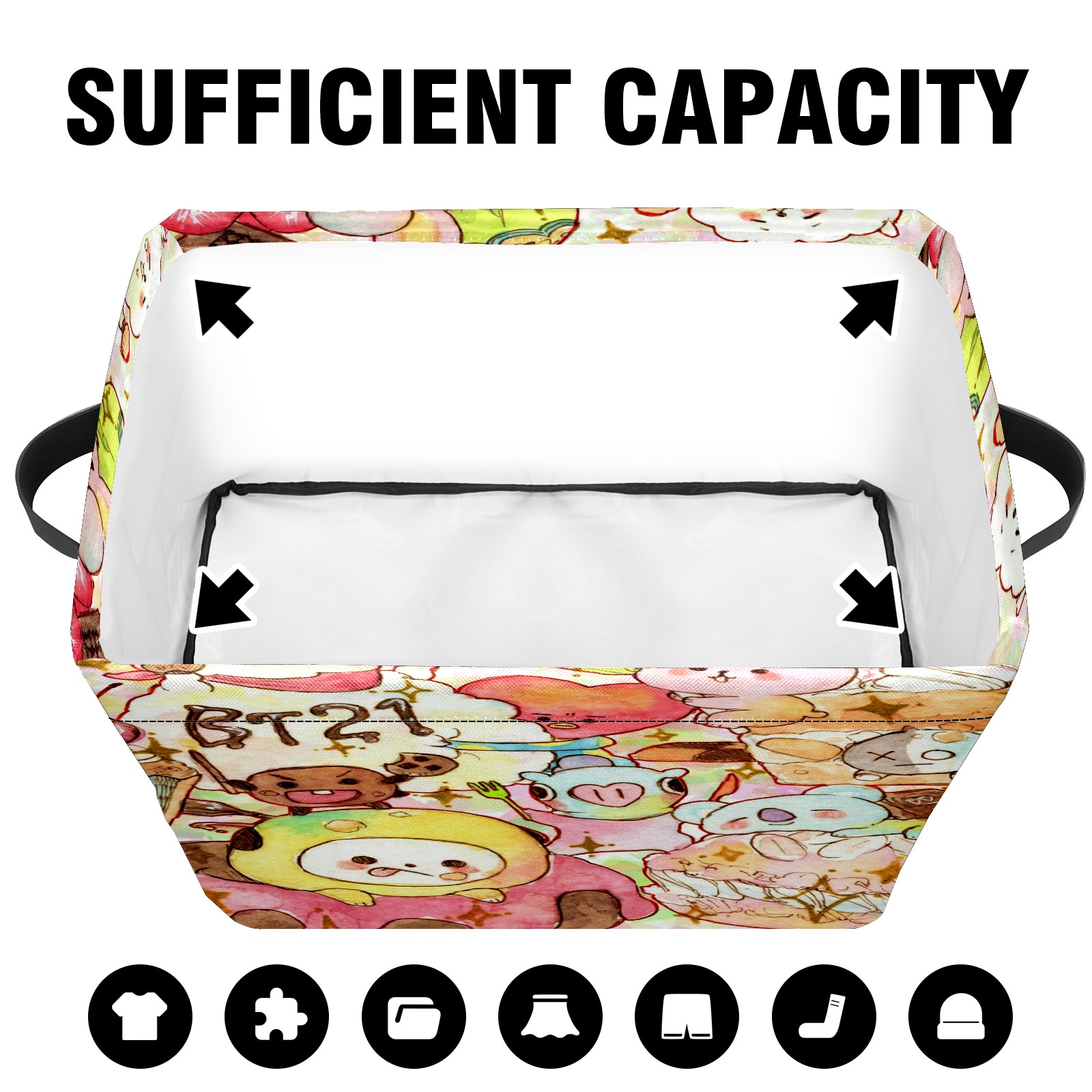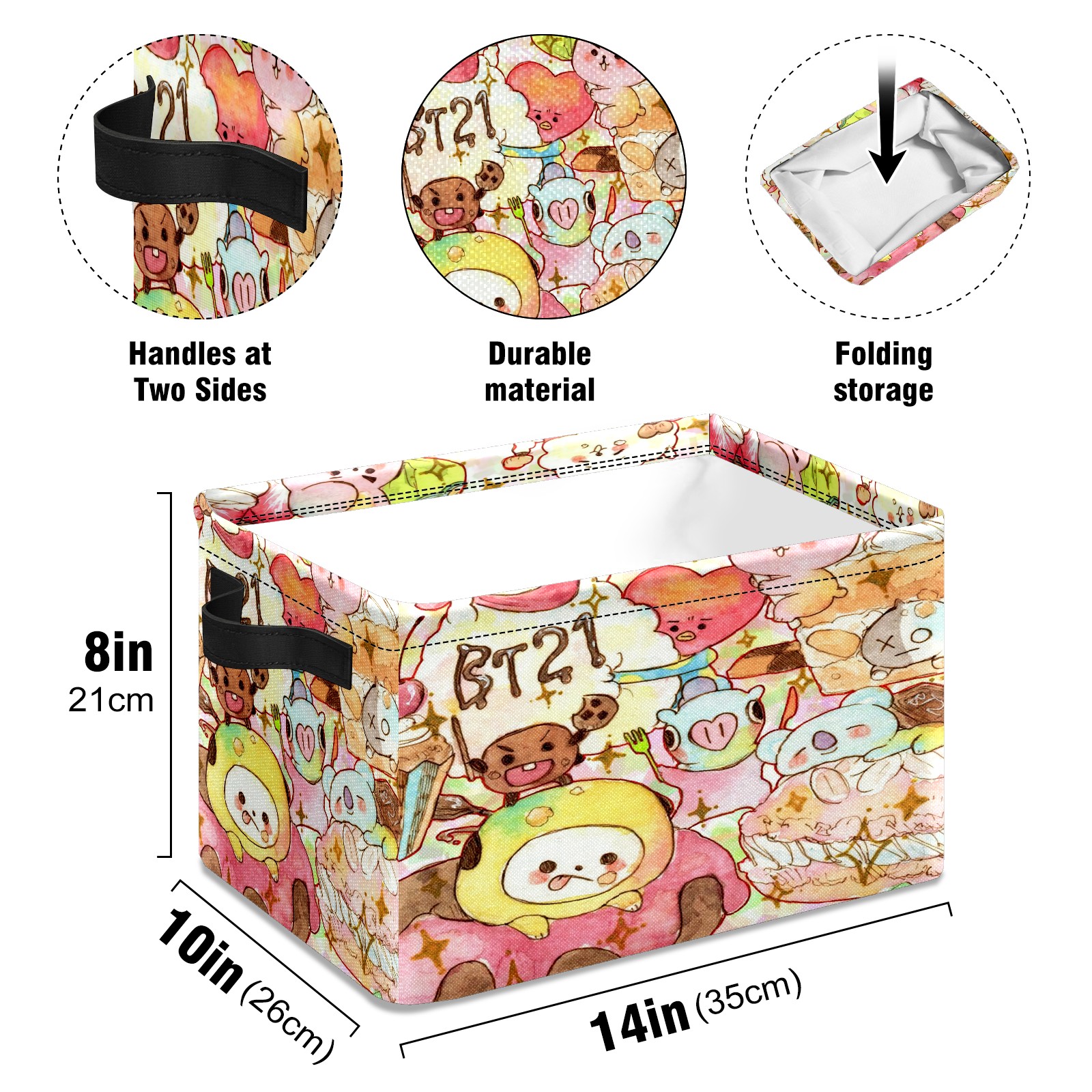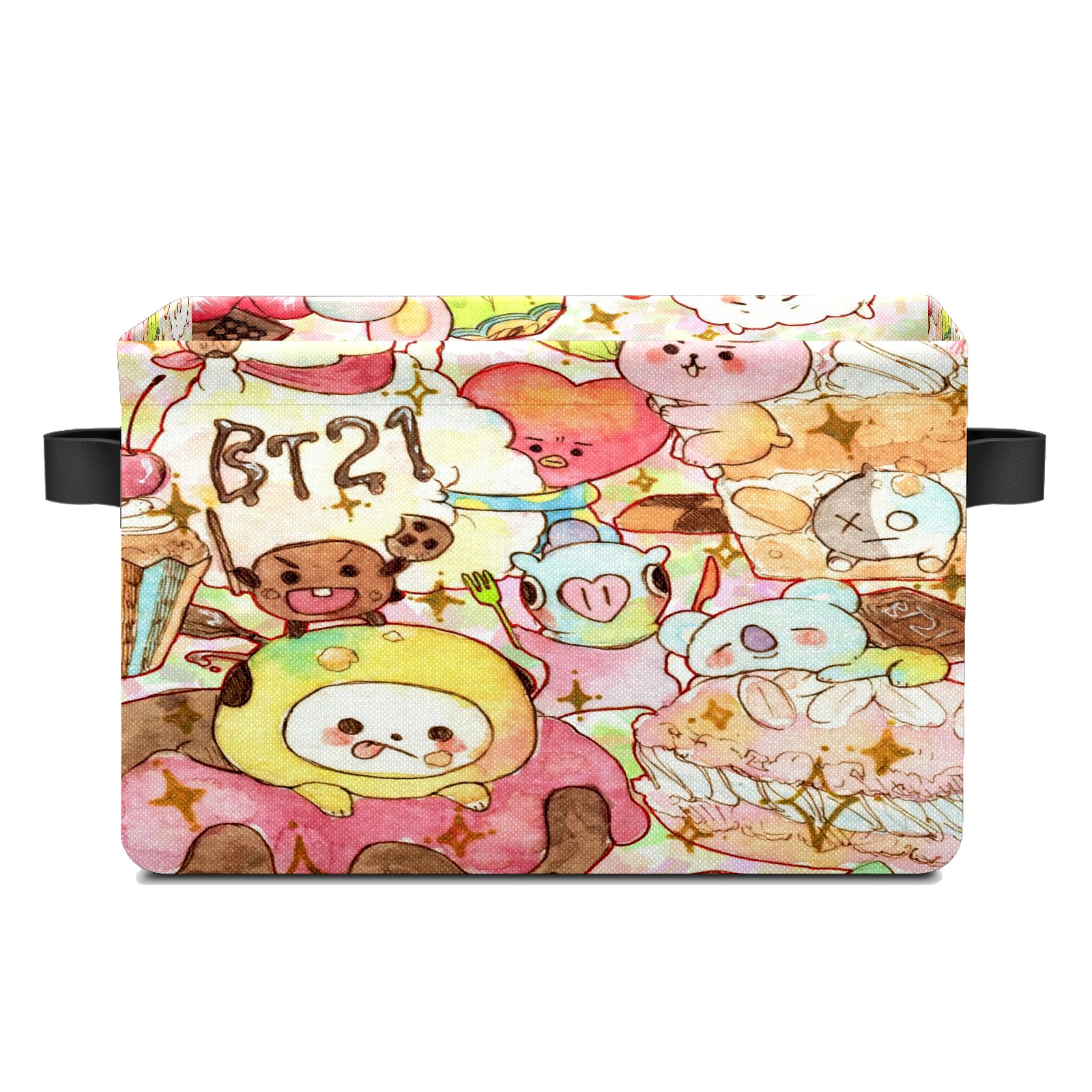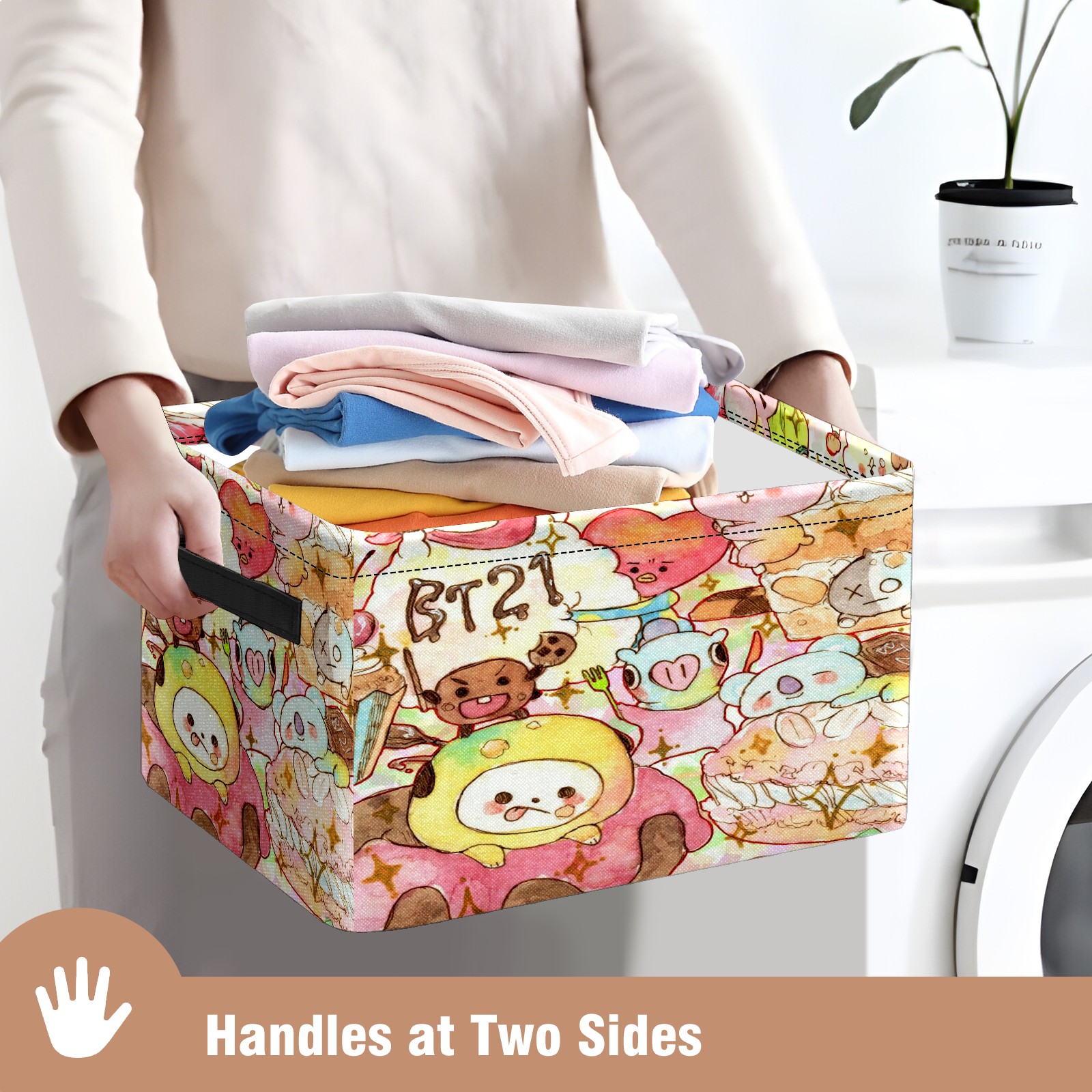 Foldable and Stackable Fabric Storage Basket for Home Organization with Handles, Decorative Closet Bins for Shelves and Laundry Storage( Bts Bt21 防弾少年団)