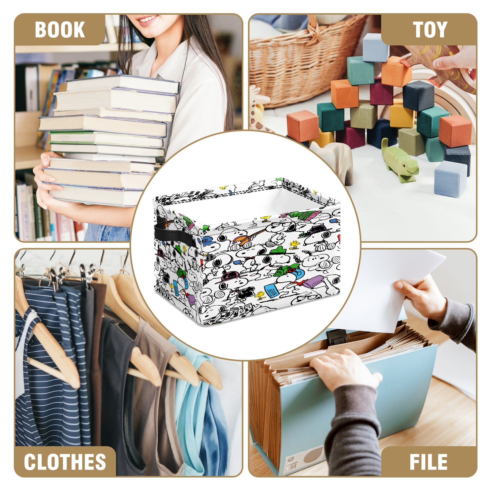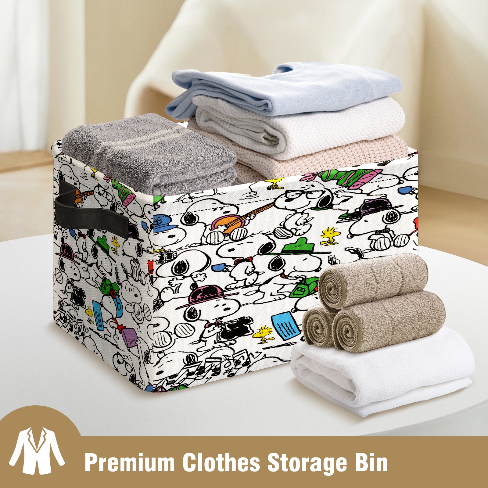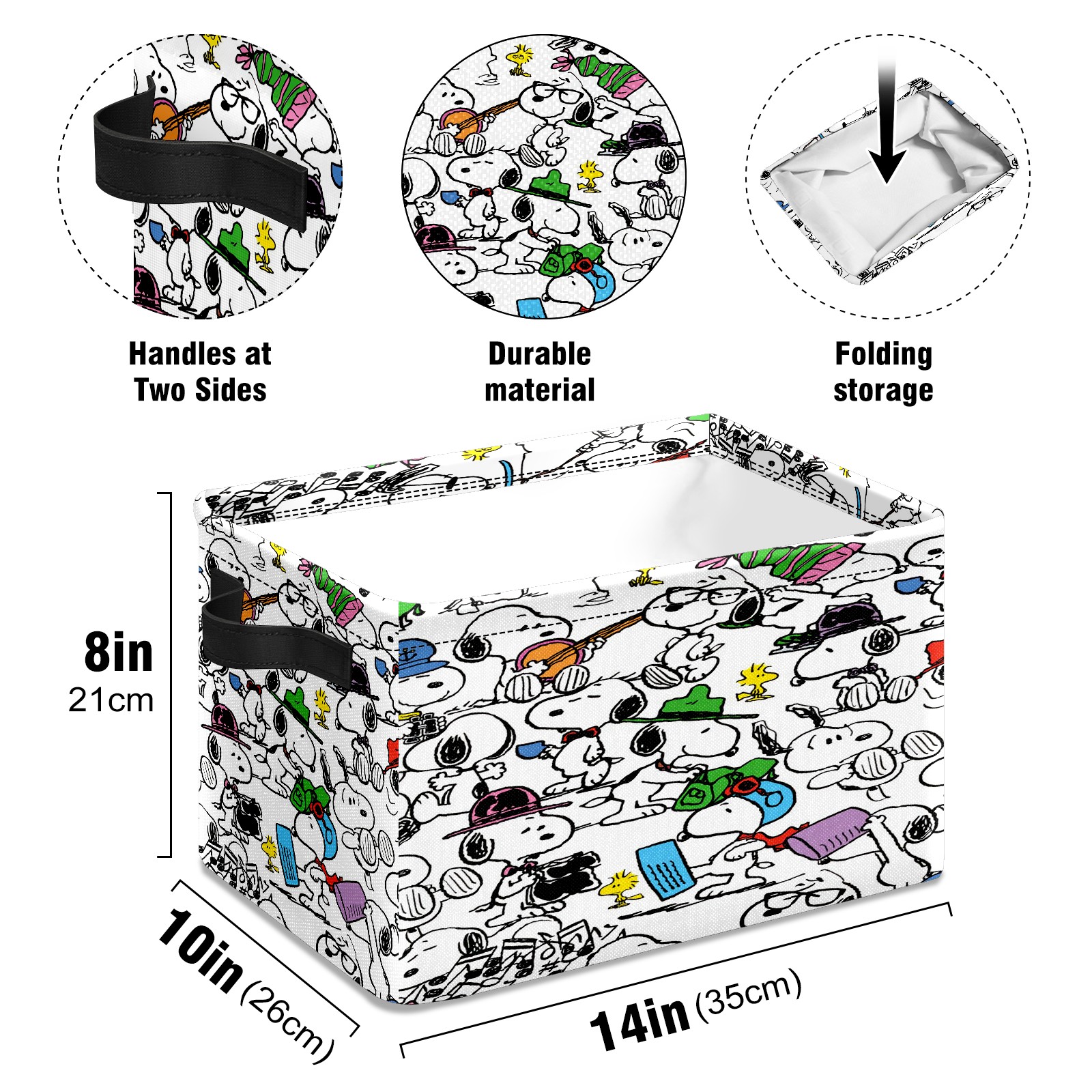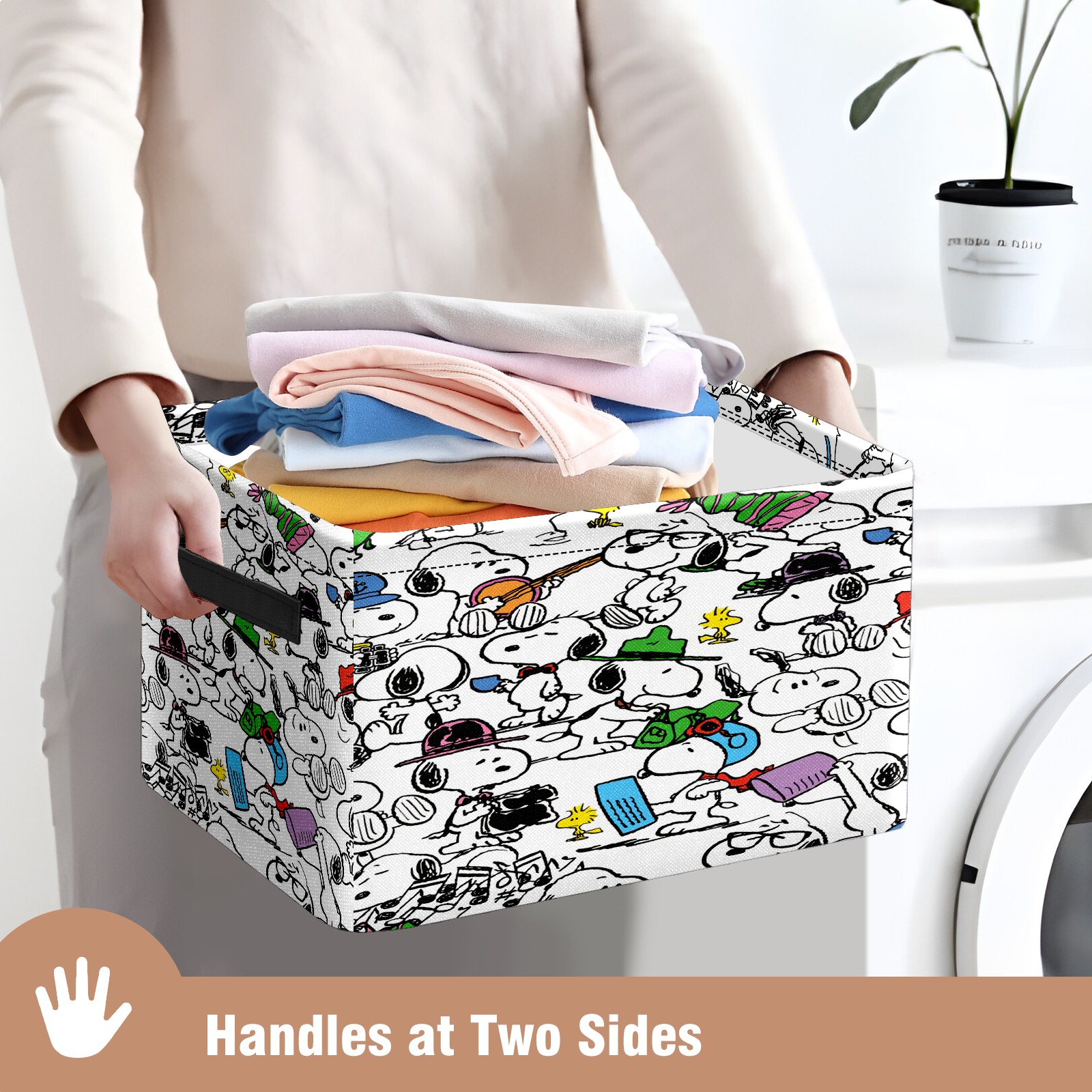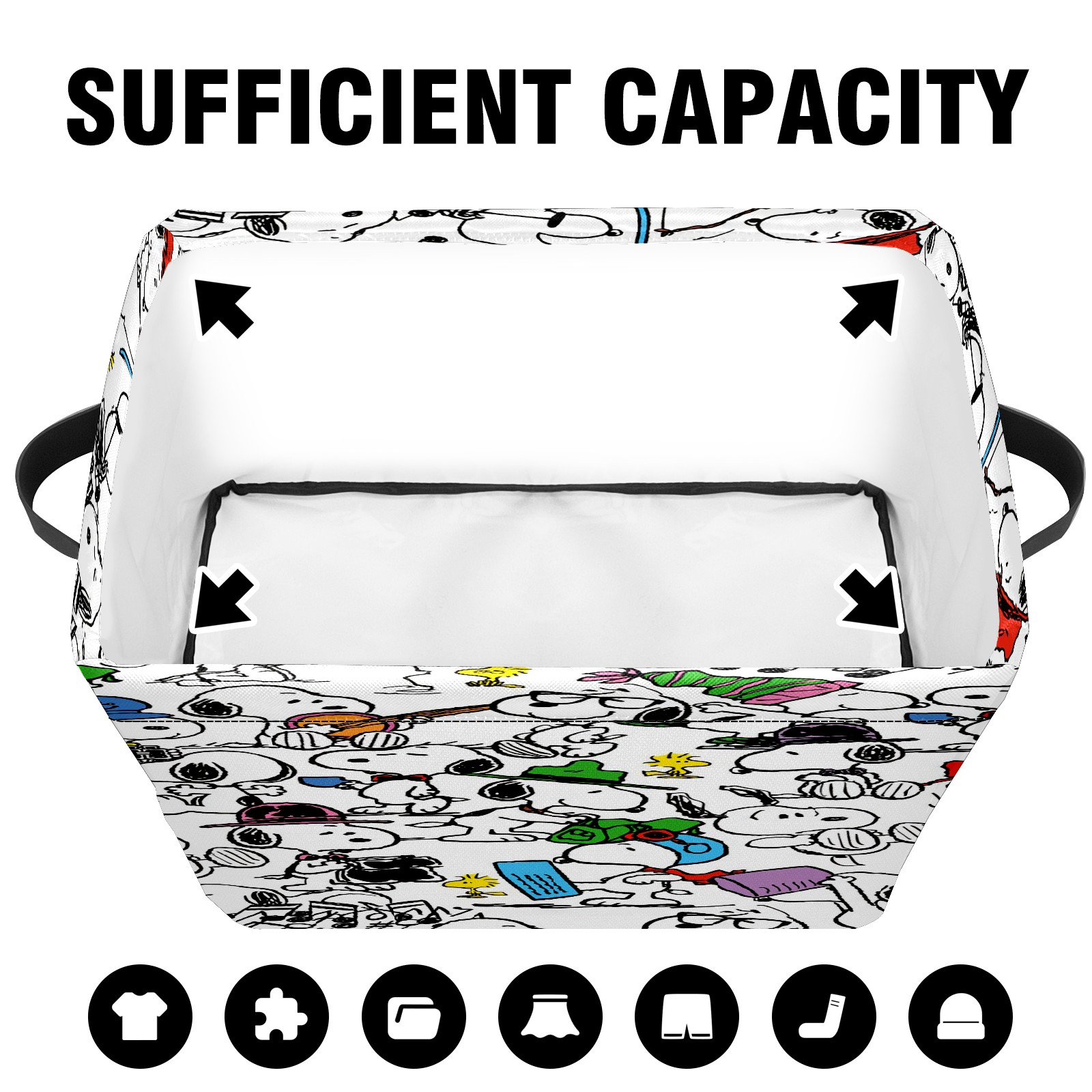 Foldable and Stackable Fabric Storage Basket for Home Organization with Handles, Decorative Closet Bins for Shelves and Laundry Storage( スヌーピー)