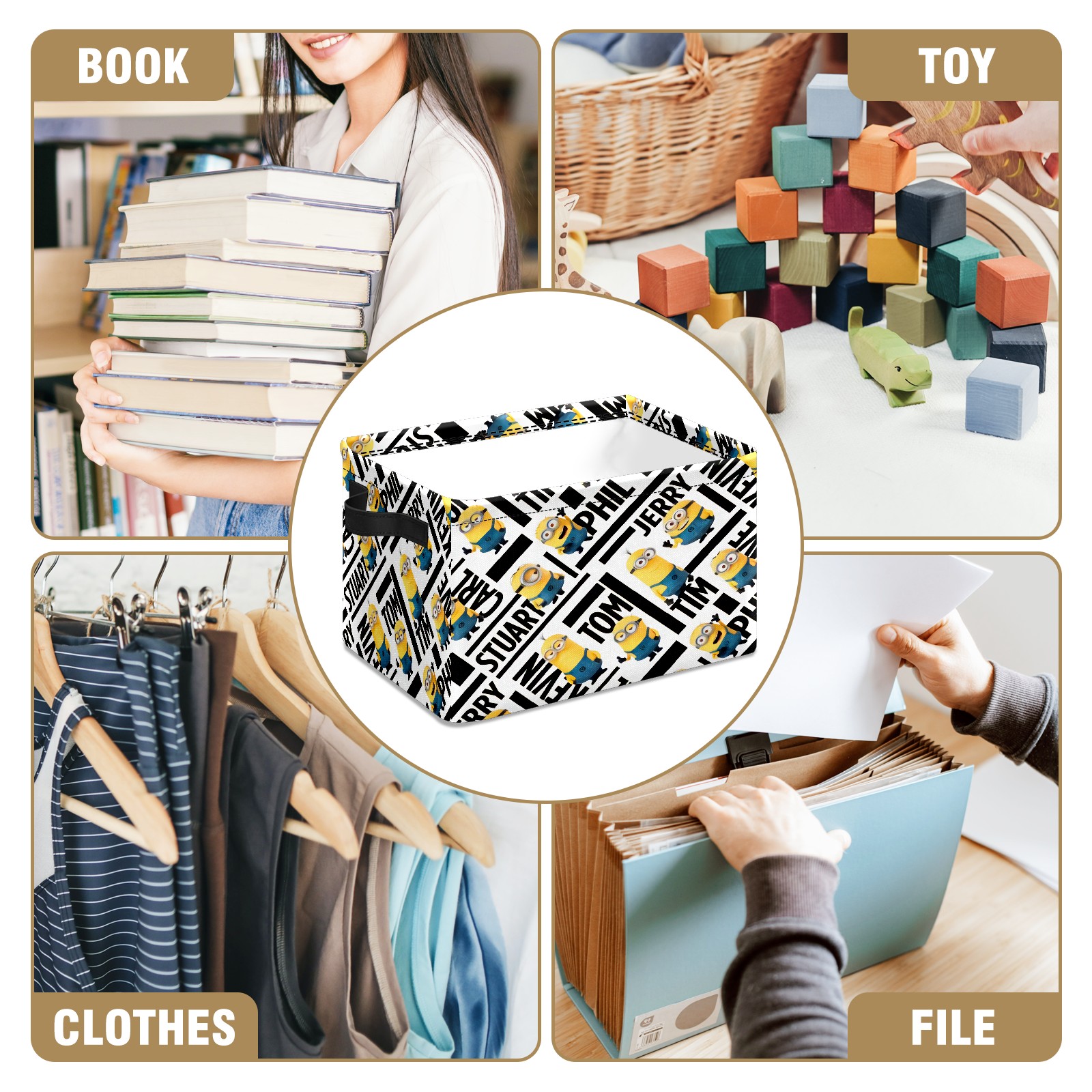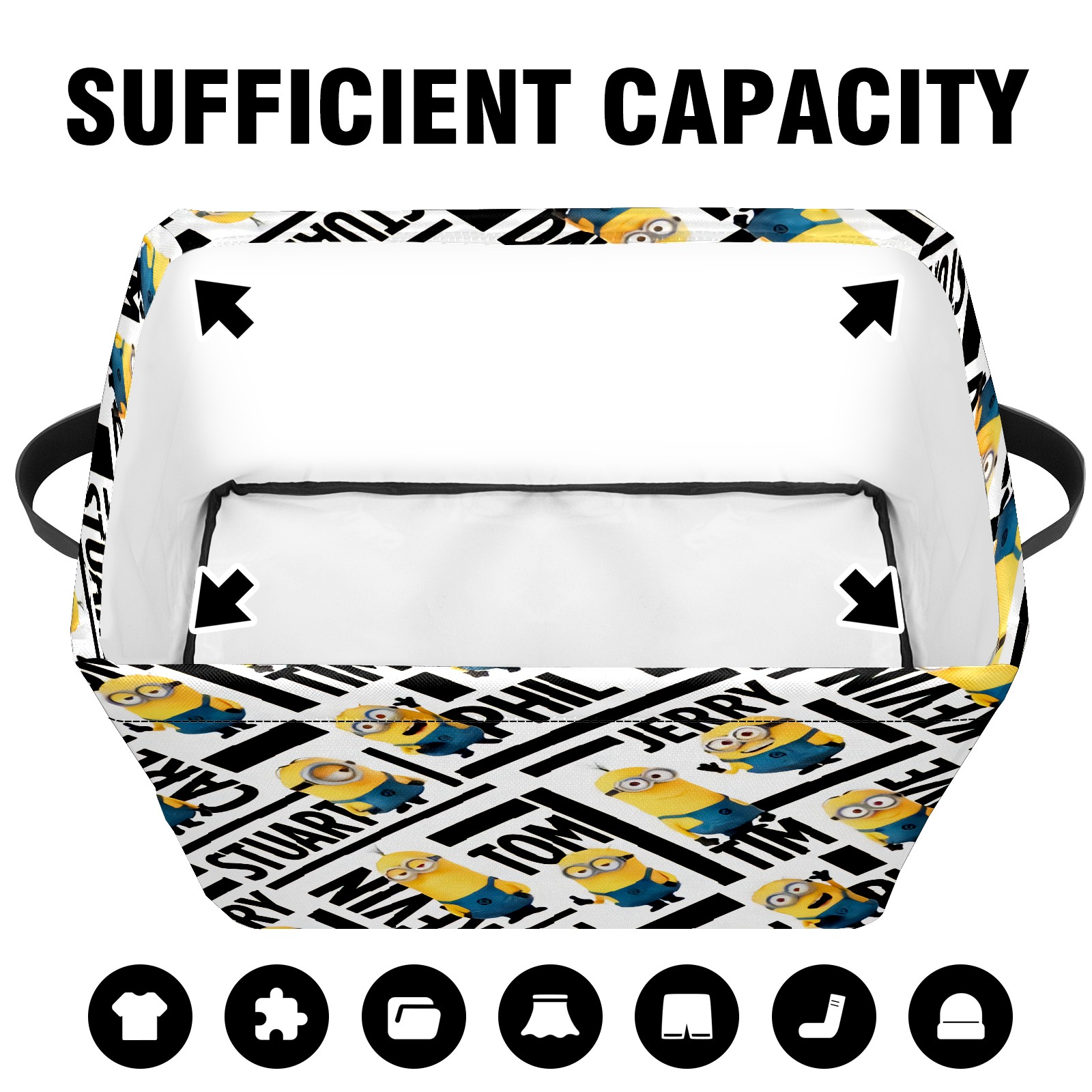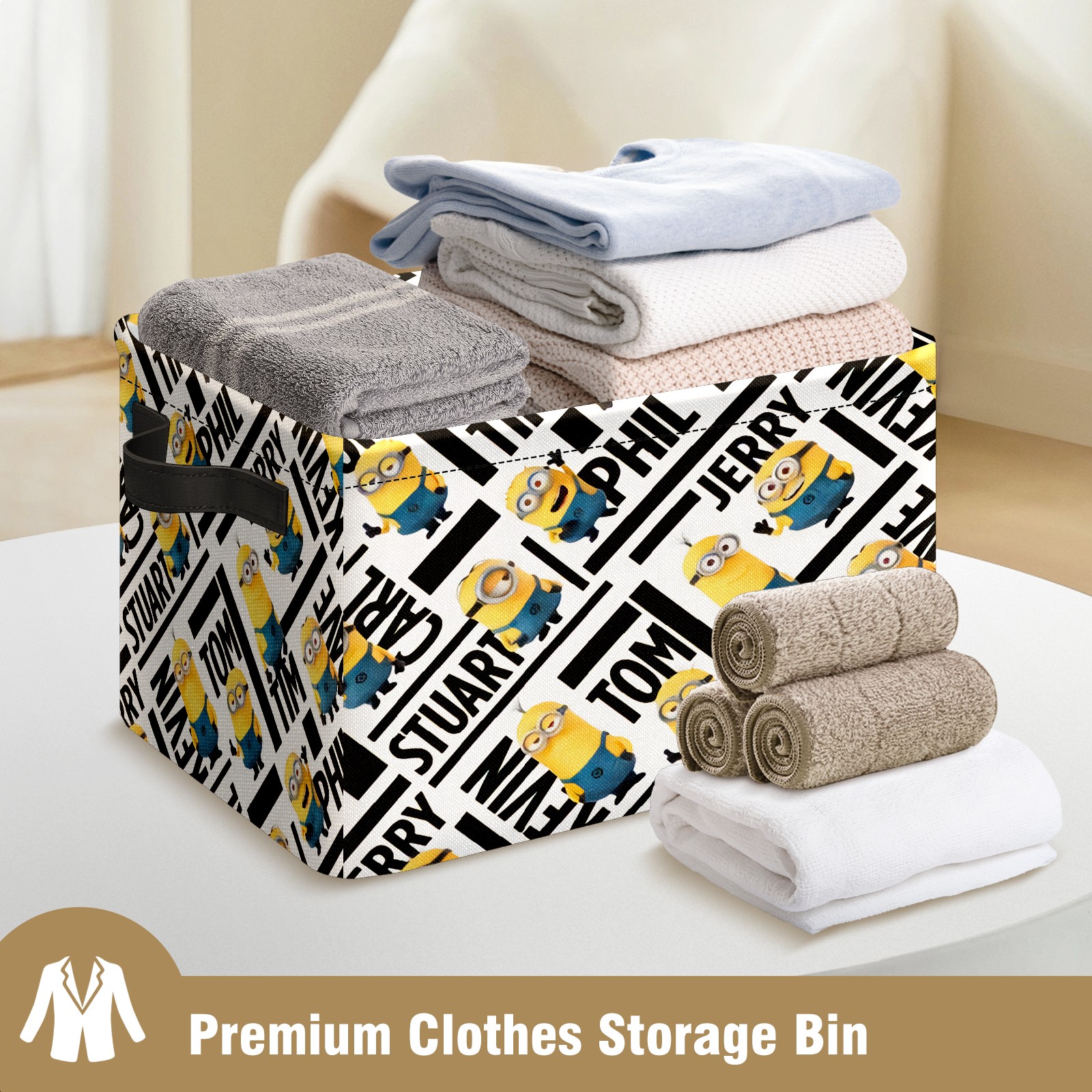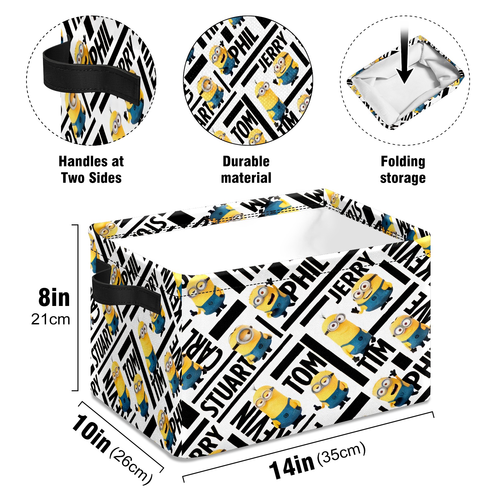 Foldable and Stackable Fabric Storage Basket for Home Organization with Handles, Decorative Closet Bins for Shelves and Laundry Storage( ミニオンズ ミニオン)