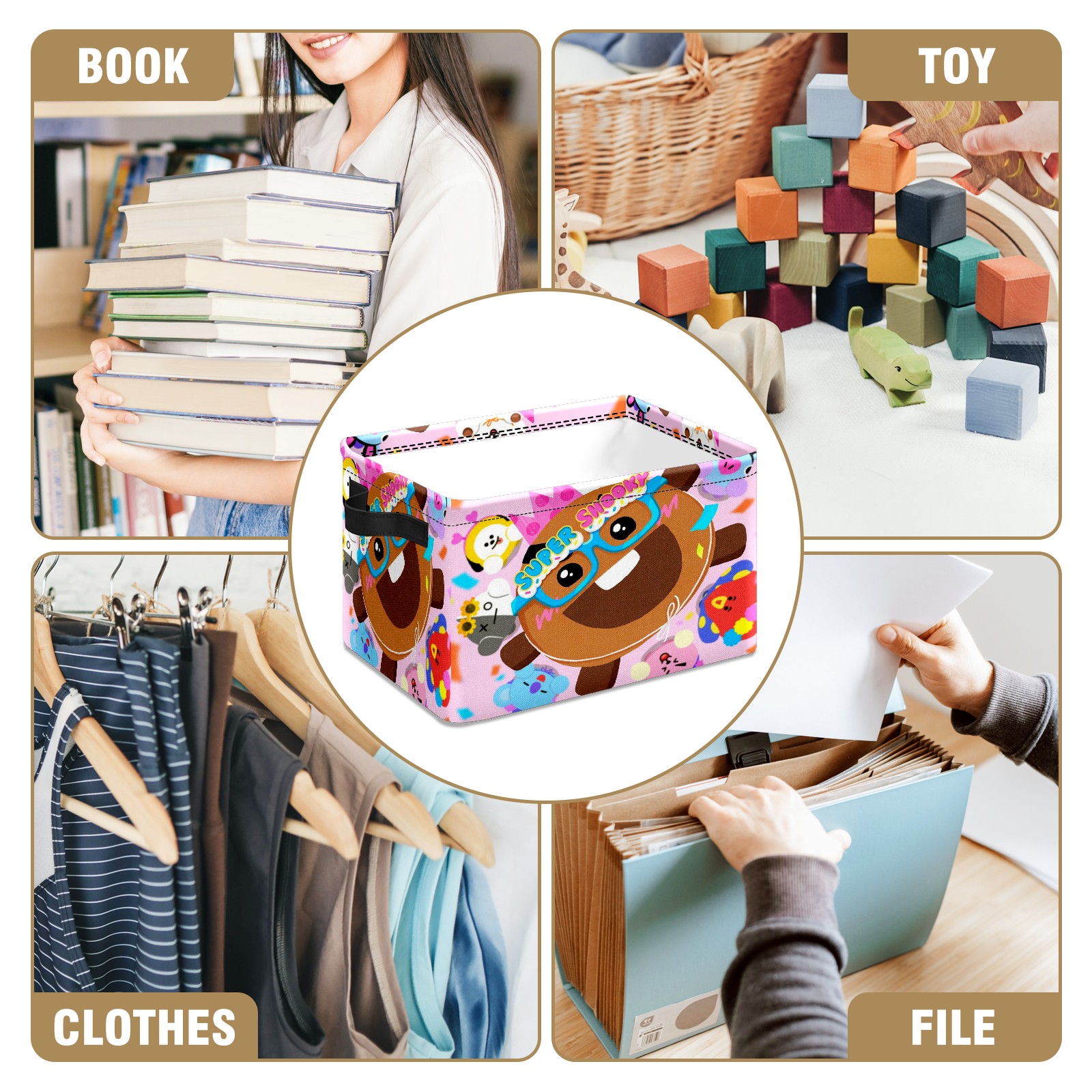 Foldable and Stackable Fabric Storage Basket for Home Organization with Handles, Decorative Closet Bins for Shelves and Laundry Storage( Bt21-25)