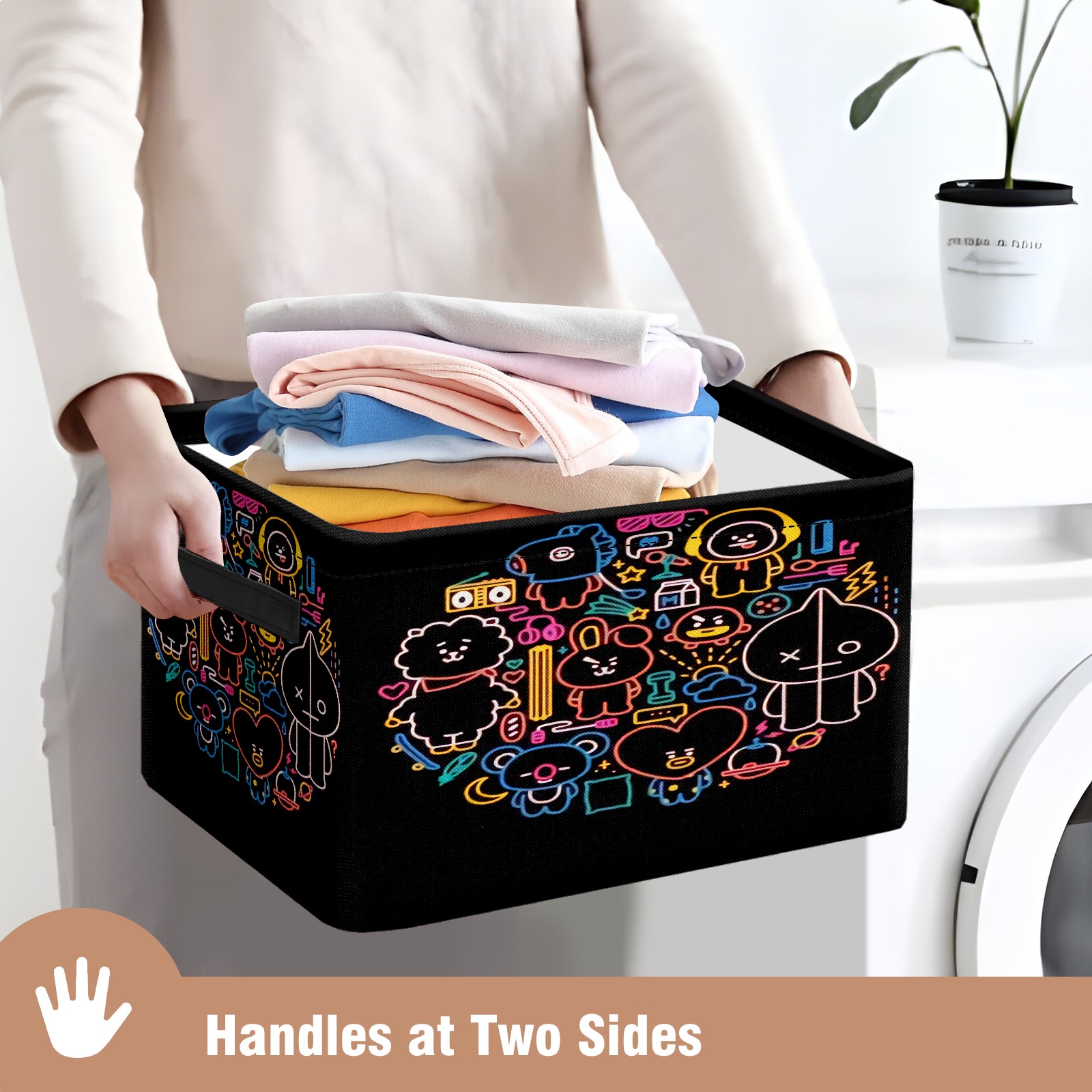 Foldable and Stackable Fabric Storage Basket for Home Organization with Handles, Decorative Closet Bins for Shelves and Laundry Storage( Bt21-18)