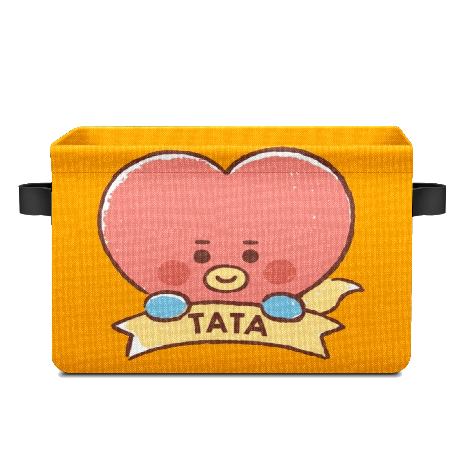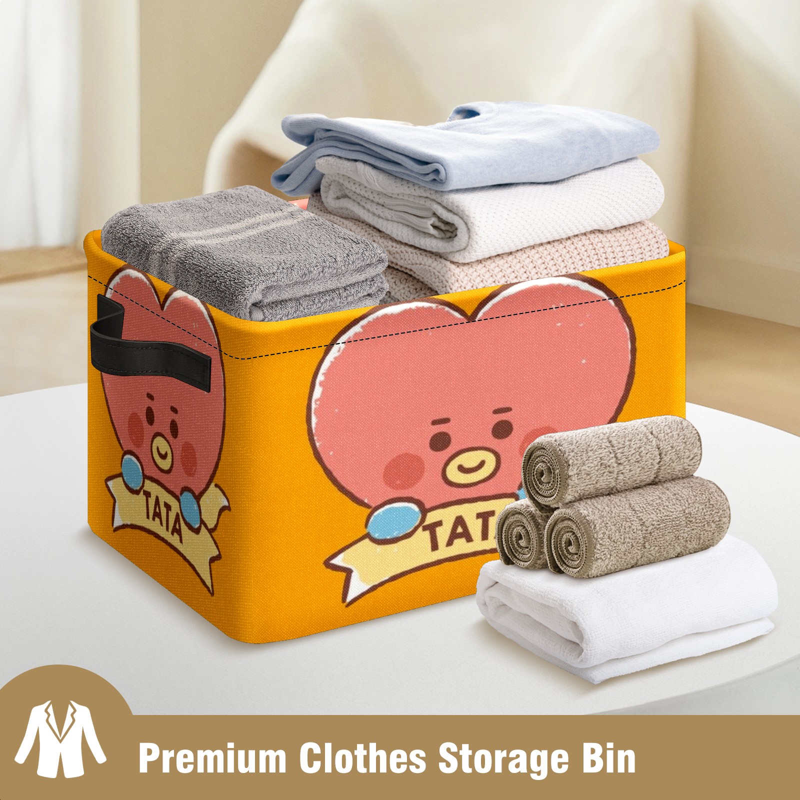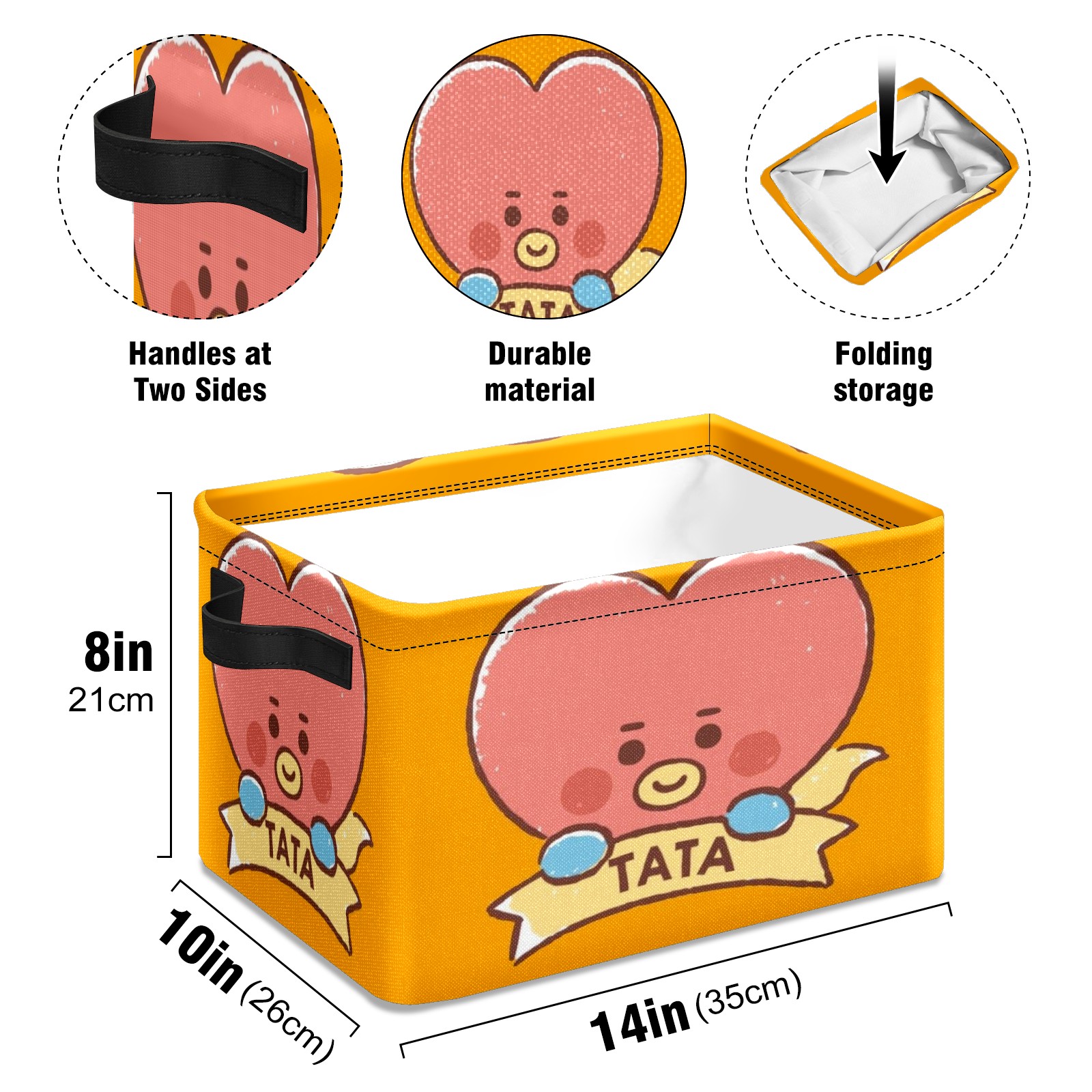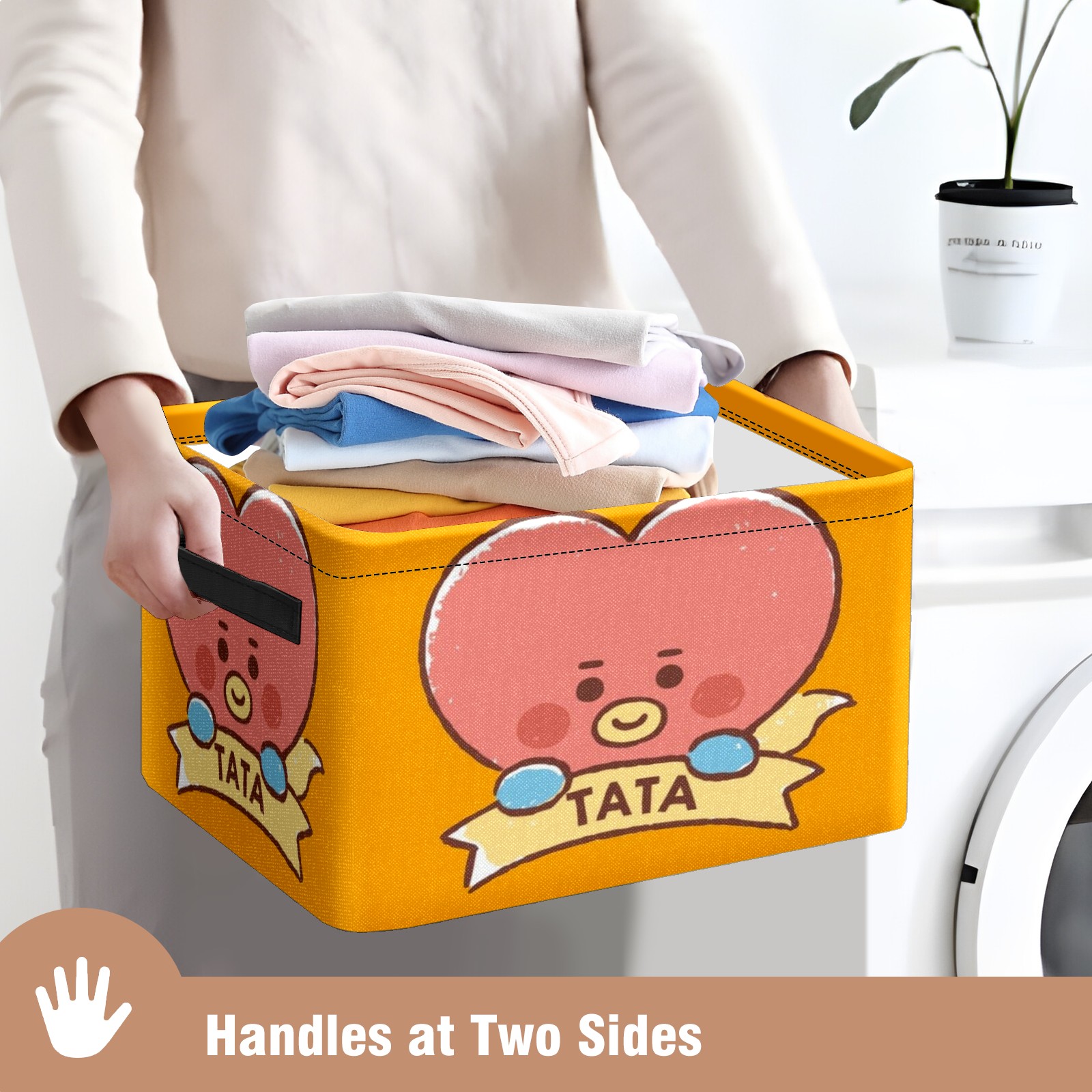Foldable and Stackable Fabric Storage Basket for Home Organization with Handles, Decorative Closet Bins for Shelves and Laundry Storage( Bt21 Tata)