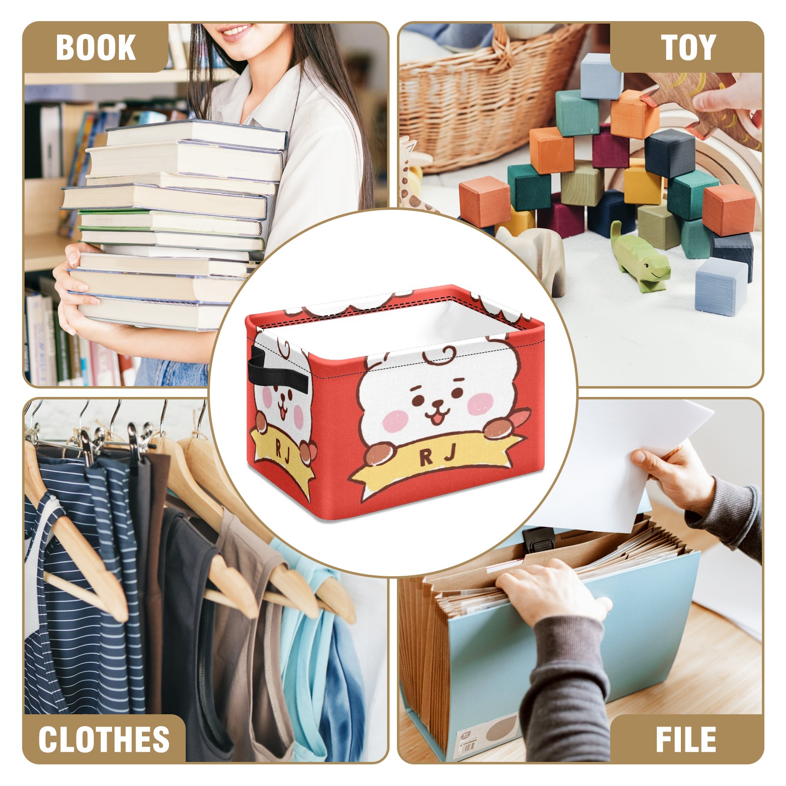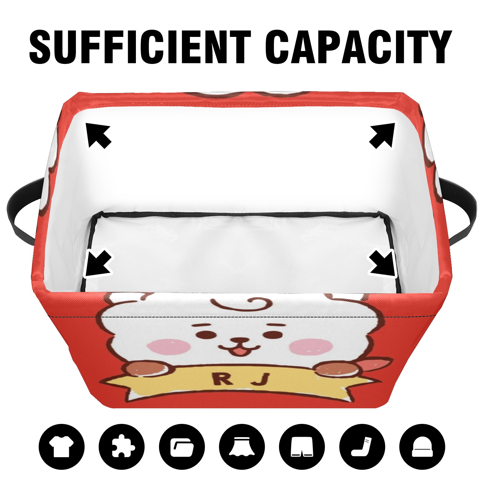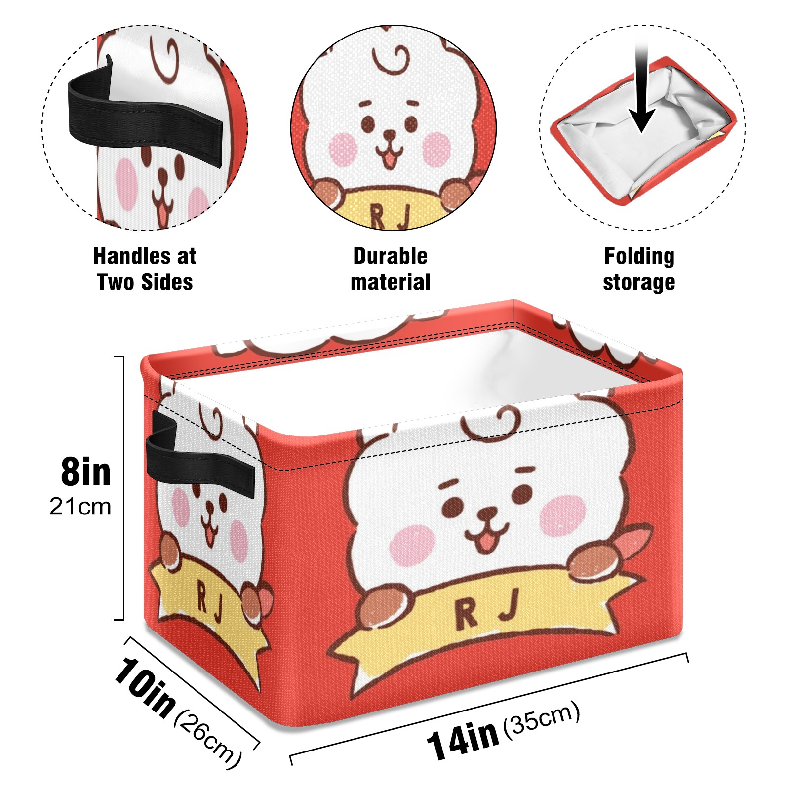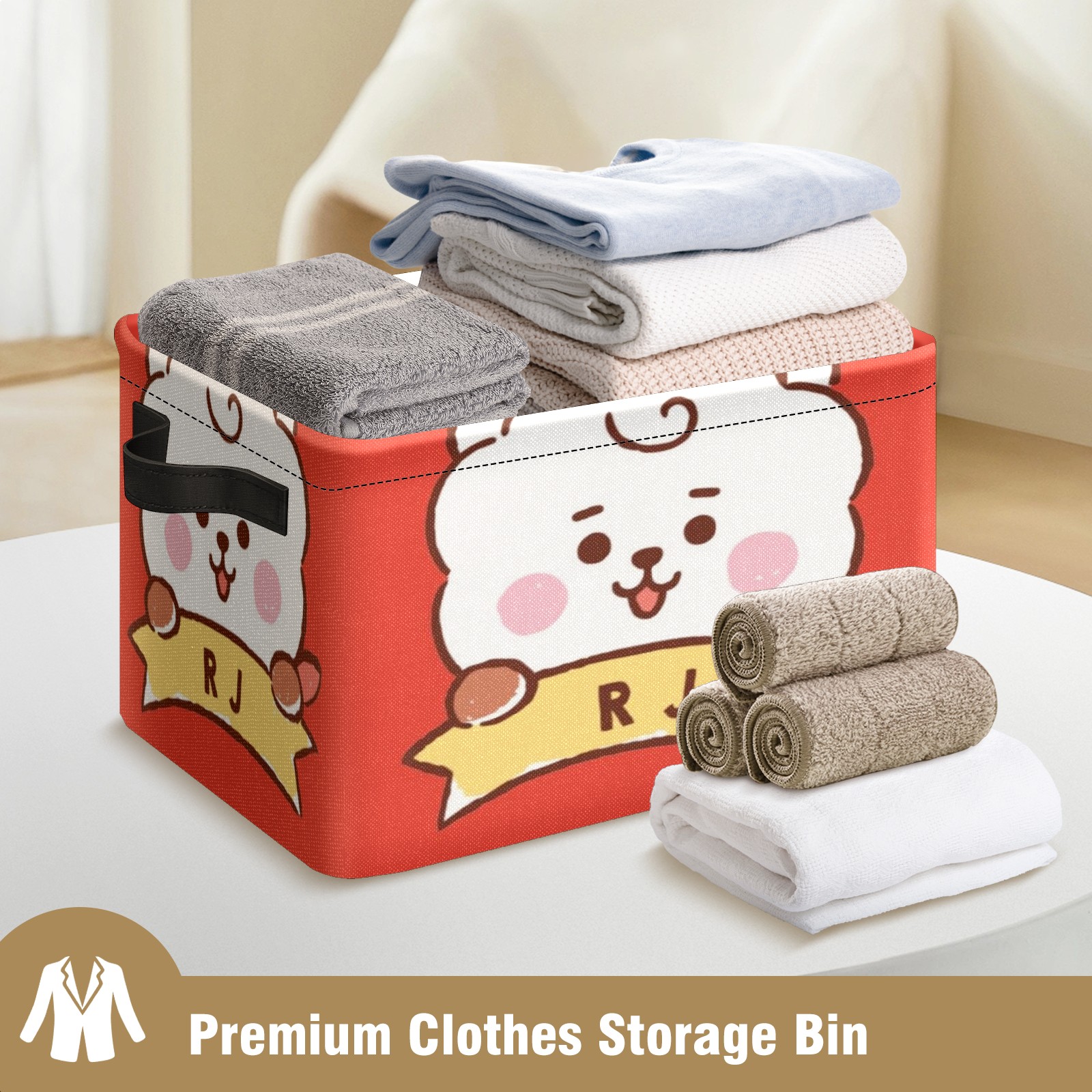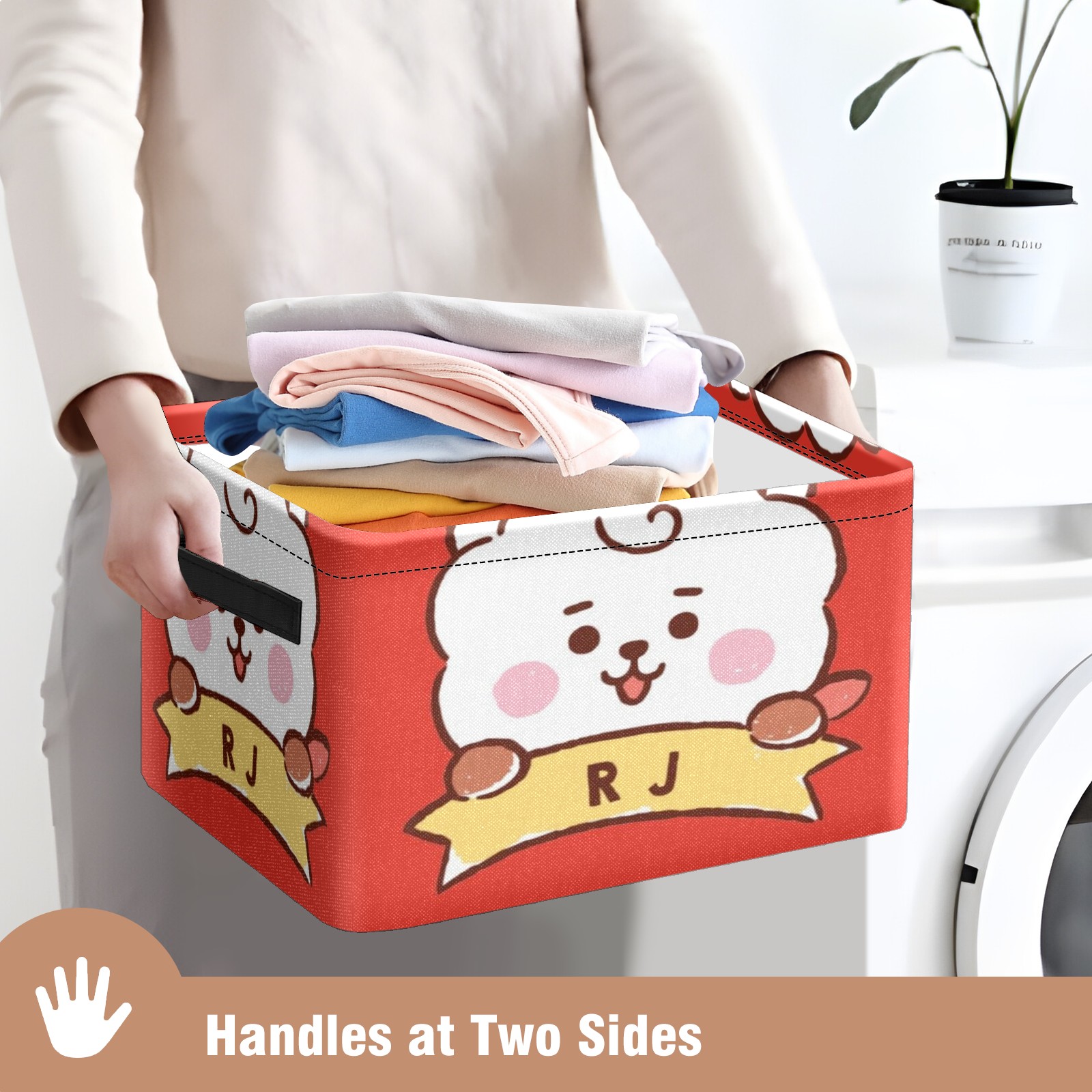 Foldable and Stackable Fabric Storage Basket for Home Organization with Handles, Decorative Closet Bins for Shelves and Laundry Storage( Bt21 Rj)