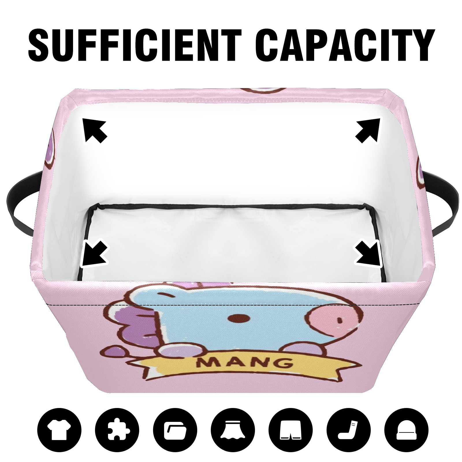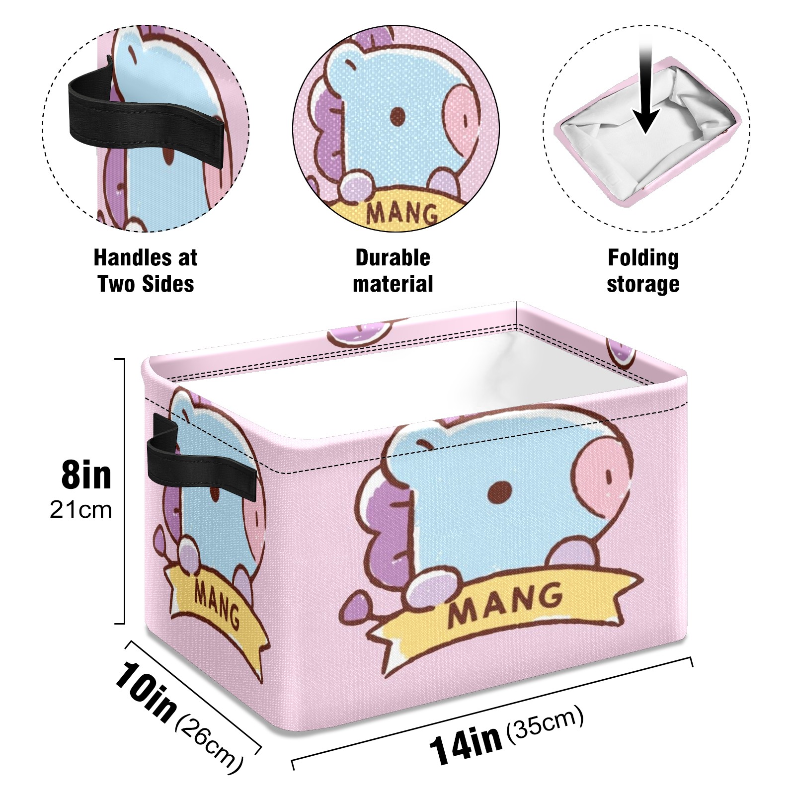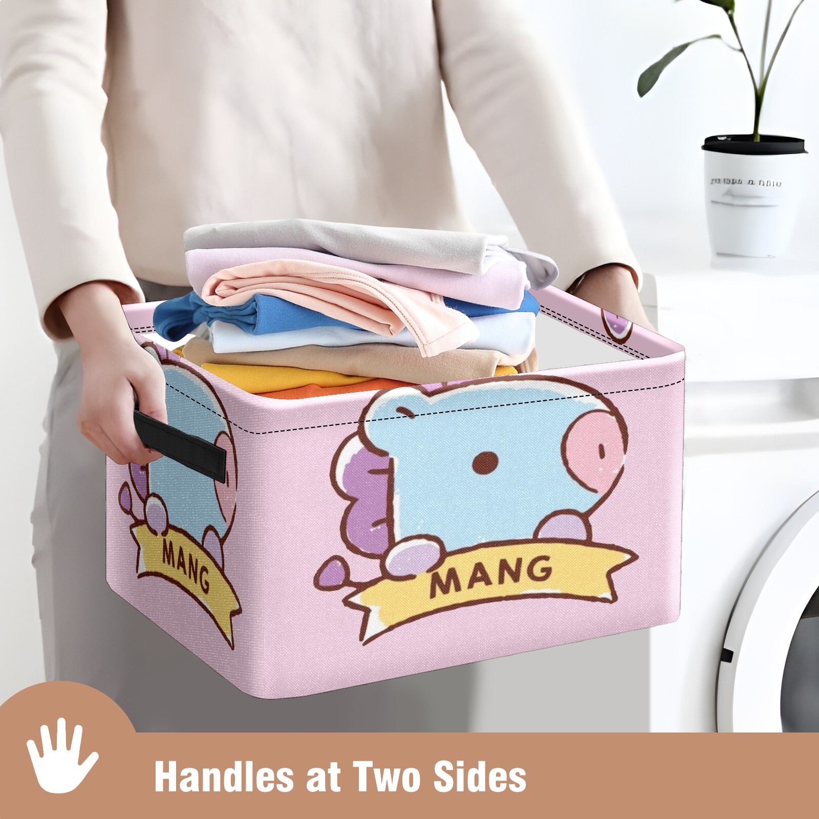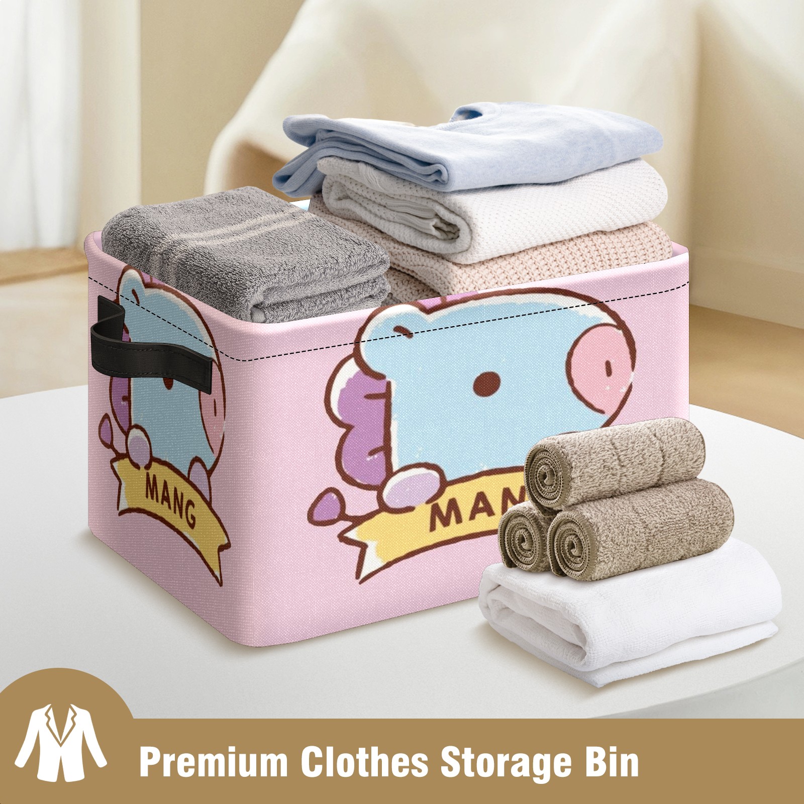 Foldable and Stackable Fabric Storage Basket for Home Organization with Handles, Decorative Closet Bins for Shelves and Laundry Storage( Bt21 Mang)
