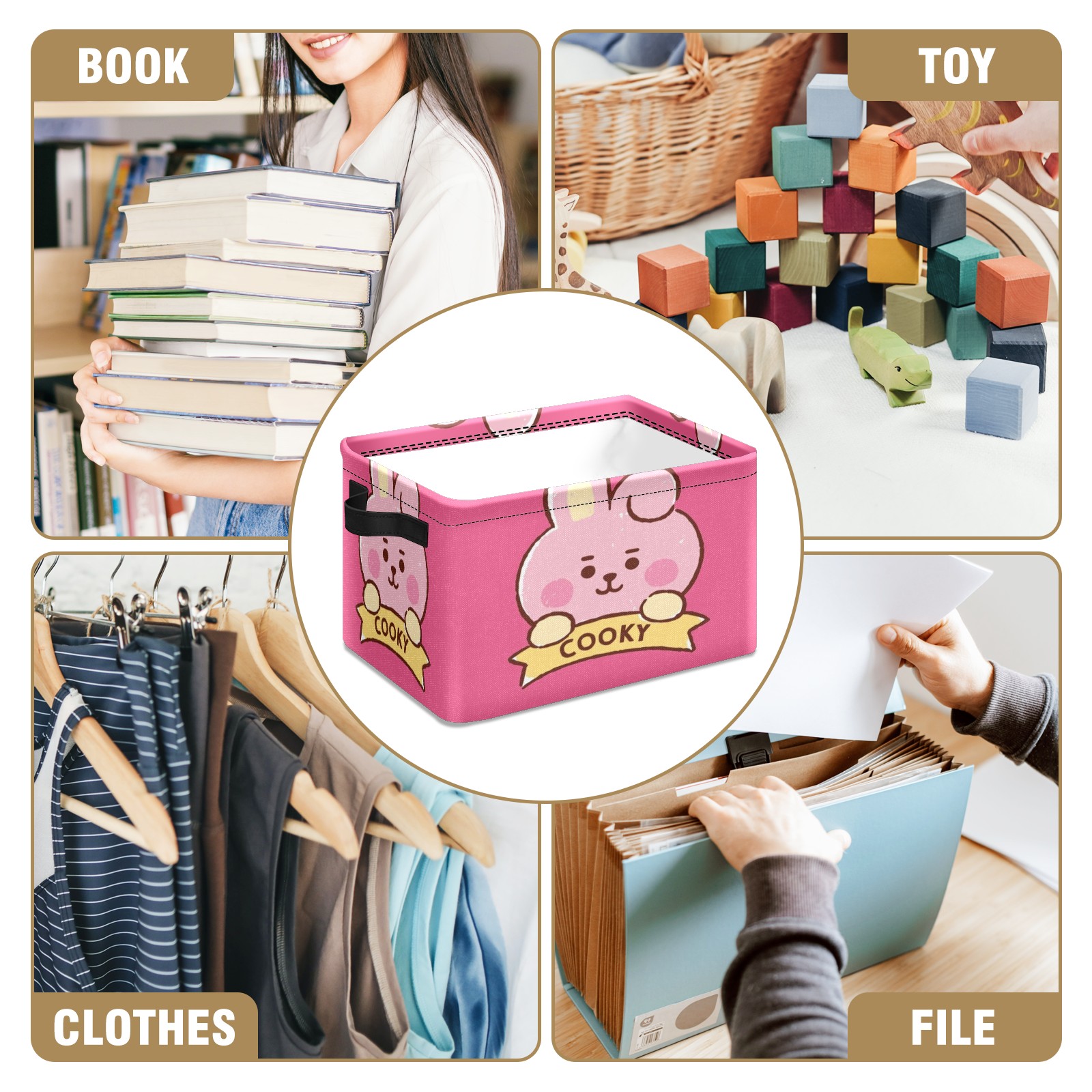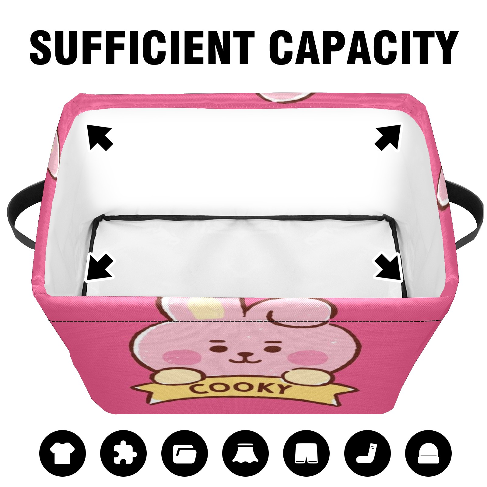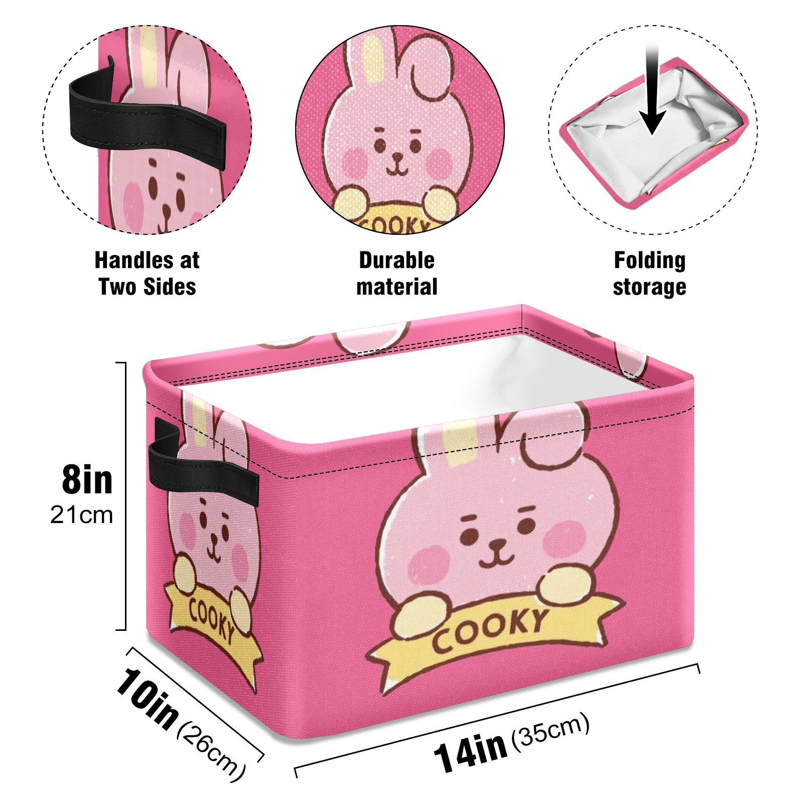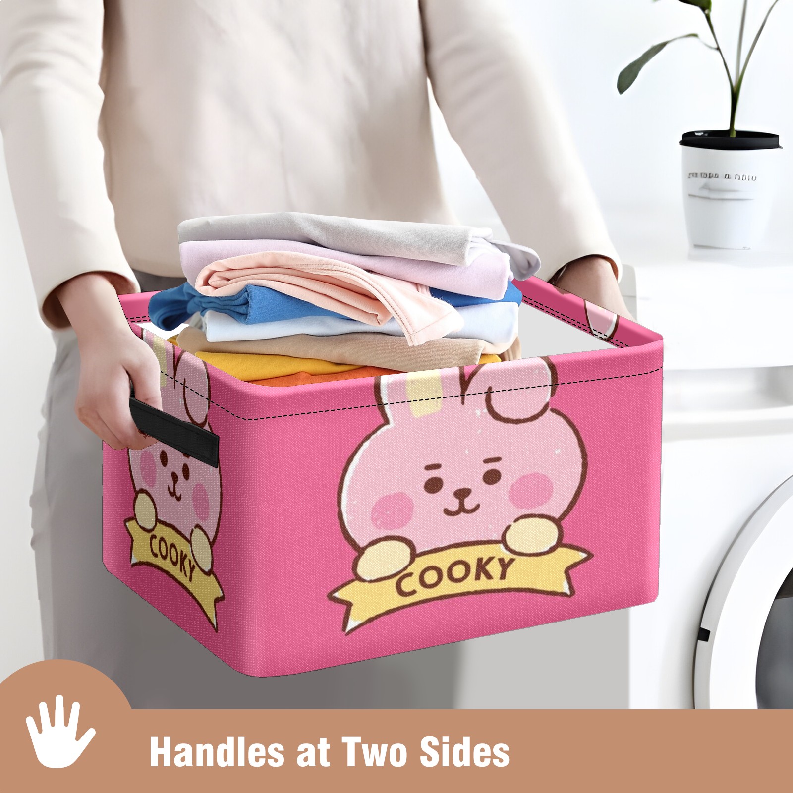 Foldable and Stackable Fabric Storage Basket for Home Organization with Handles, Decorative Closet Bins for Shelves and Laundry Storage( Bt21 Cooky)