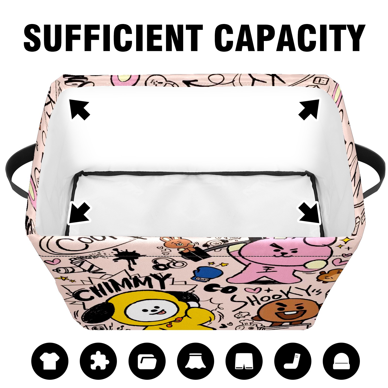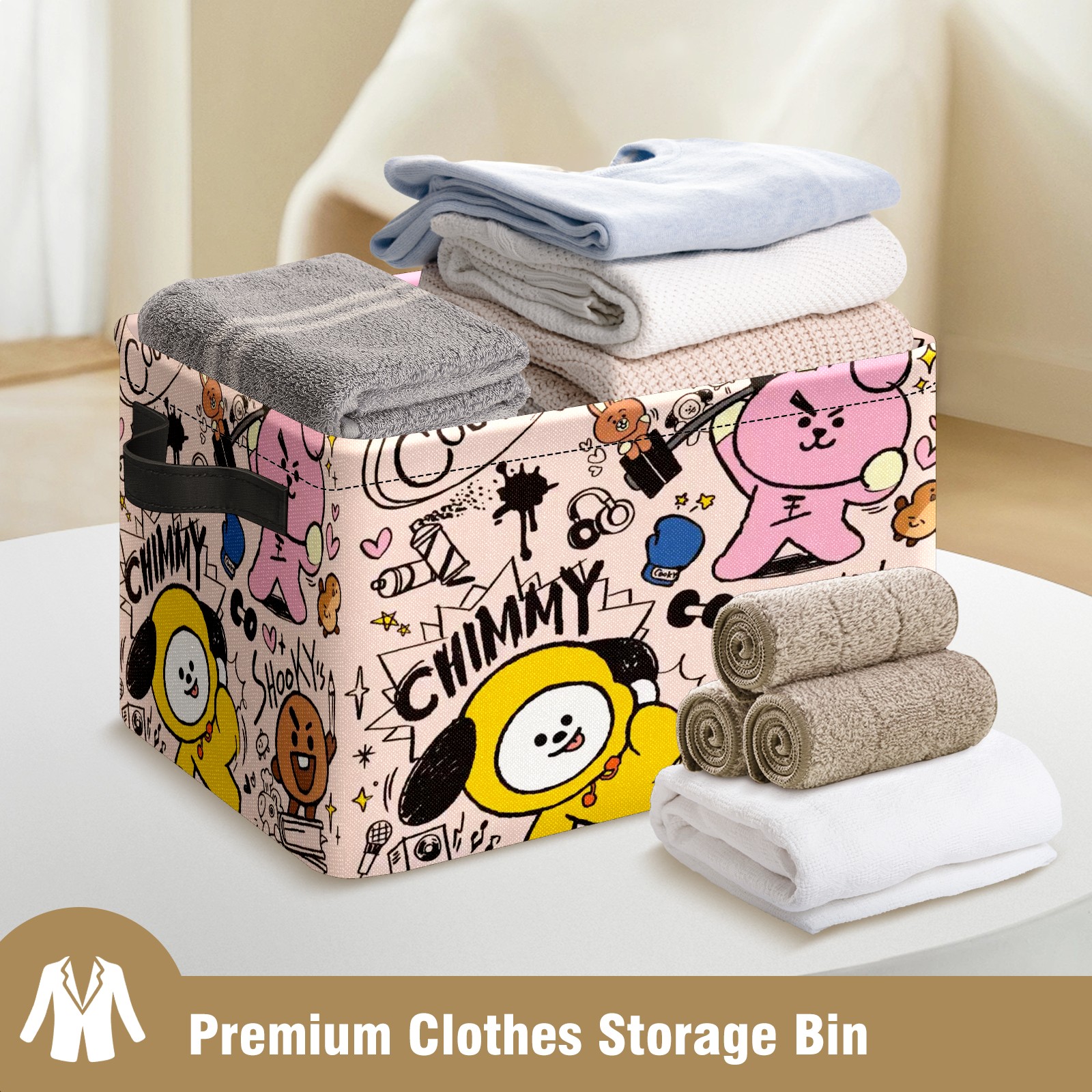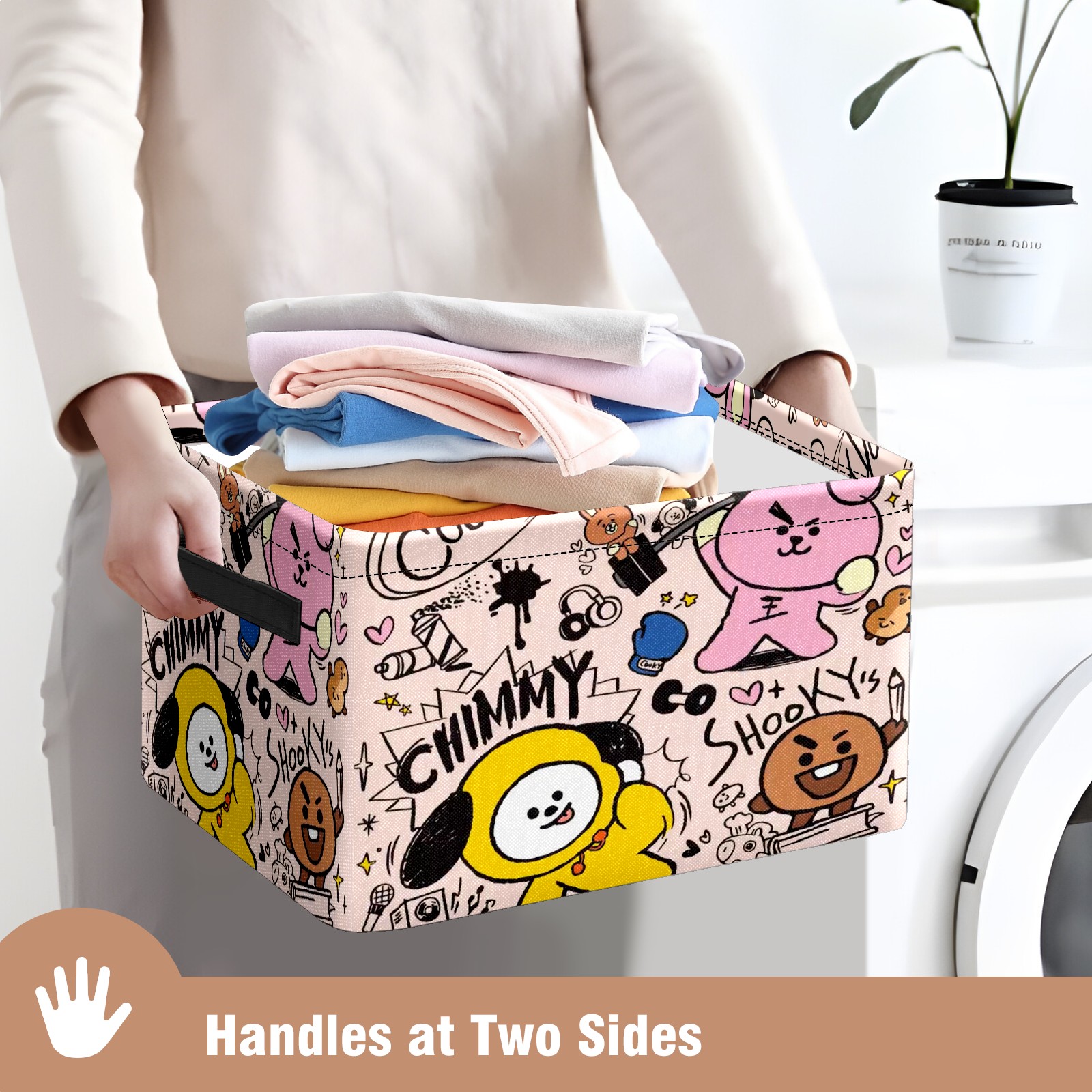 Foldable and Stackable Fabric Storage Basket for Home Organization with Handles, Decorative Closet Bins for Shelves and Laundry Storage( Bt21-5)
