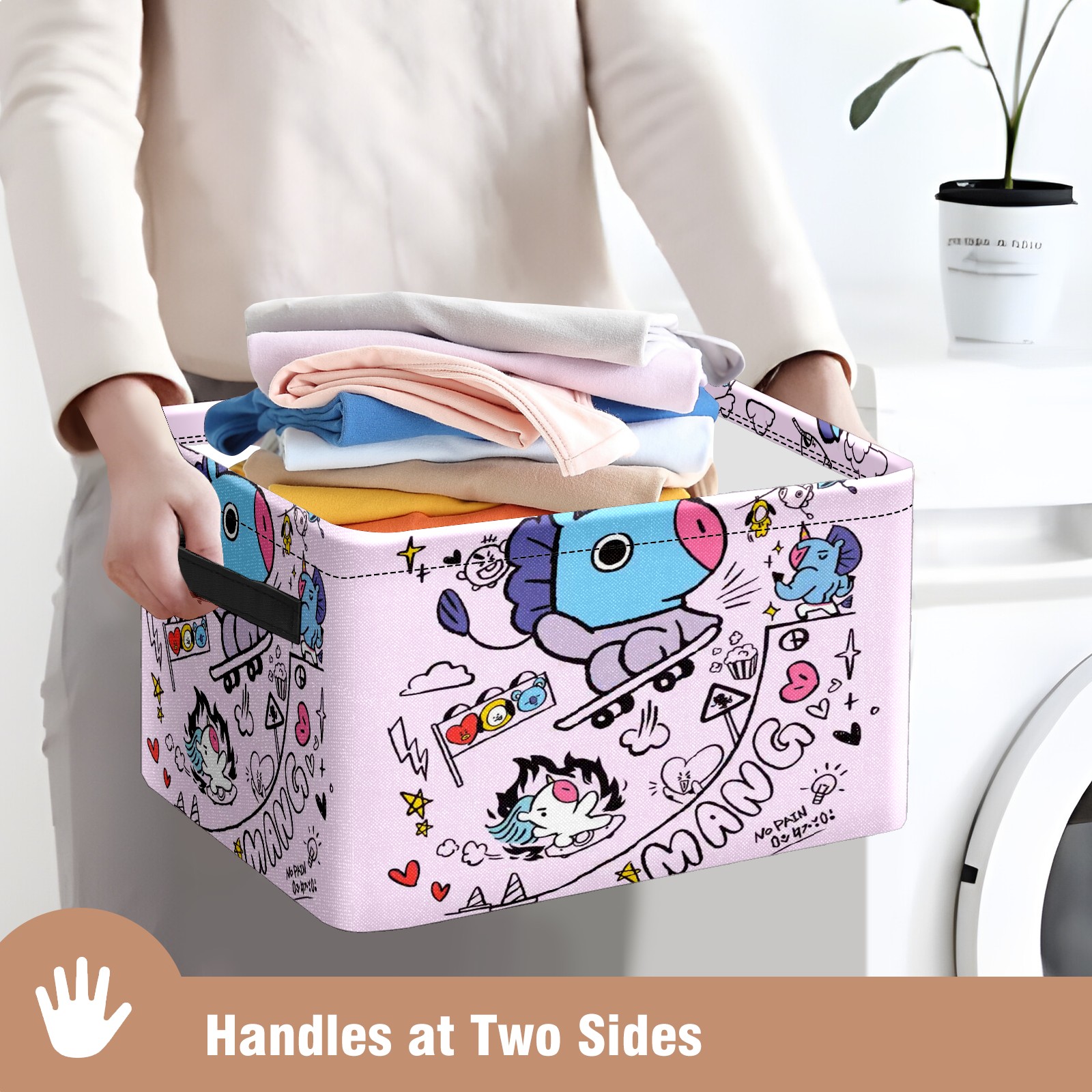 Foldable and Stackable Fabric Storage Basket for Home Organization with Handles, Decorative Closet Bins for Shelves and Laundry Storage( Bt21-3)