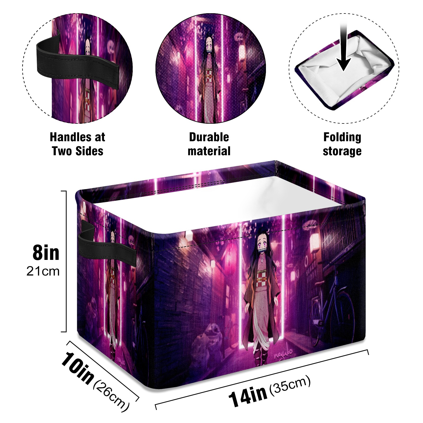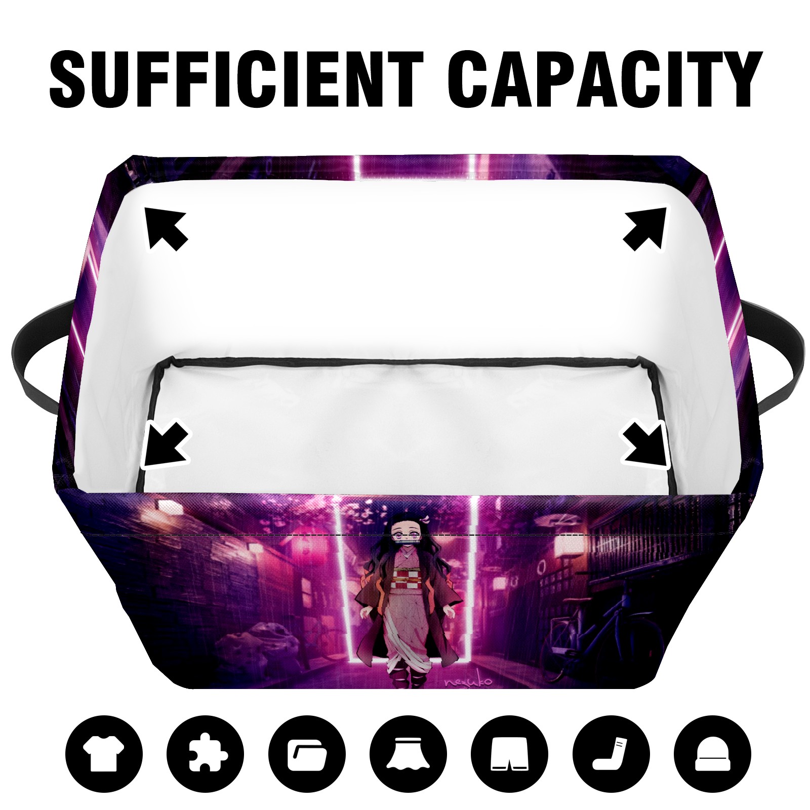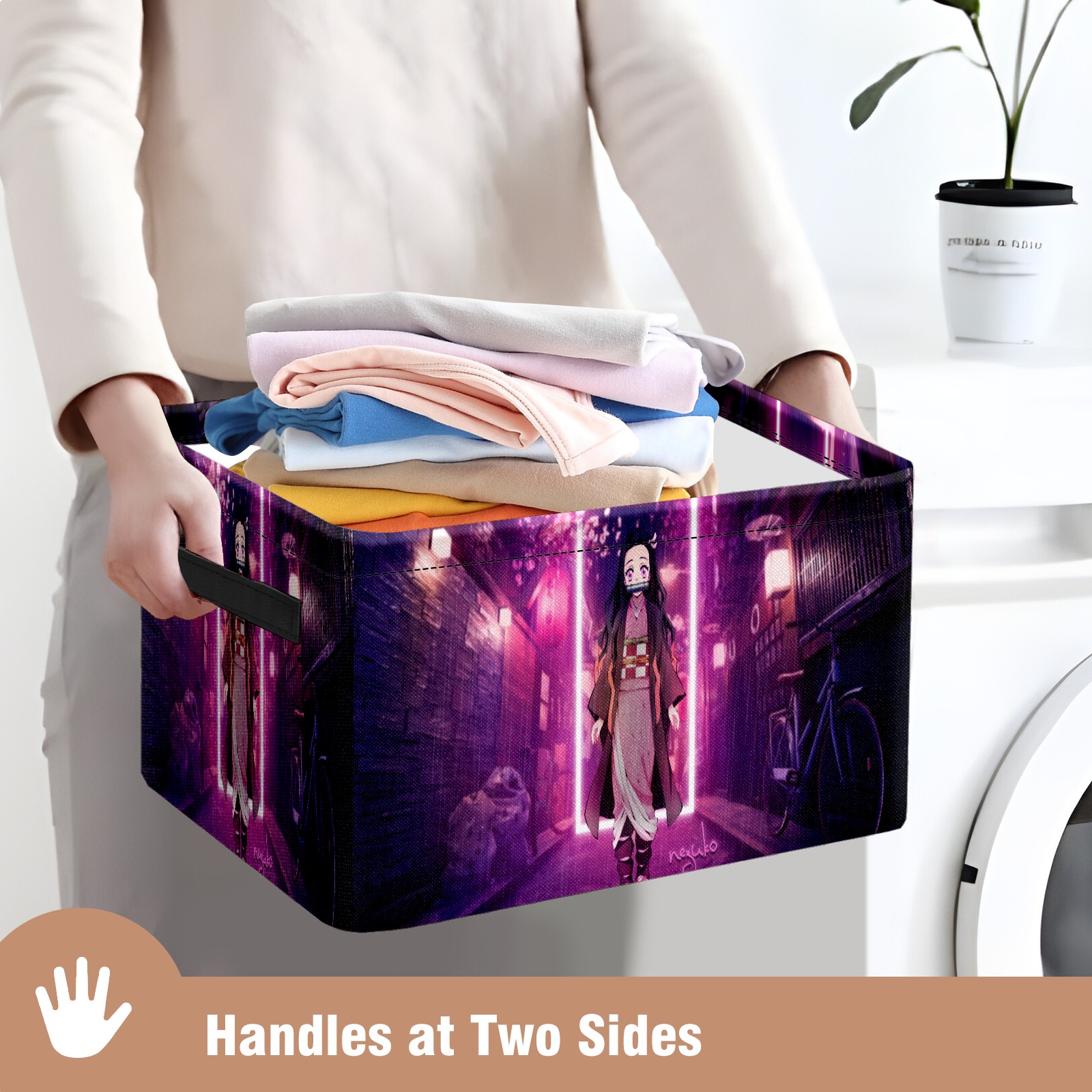Foldable and Stackable Fabric Storage Basket for Home Organization with Handles, Decorative Closet Bins for Shelves and Laundry Storage( Demon Slayer 58)