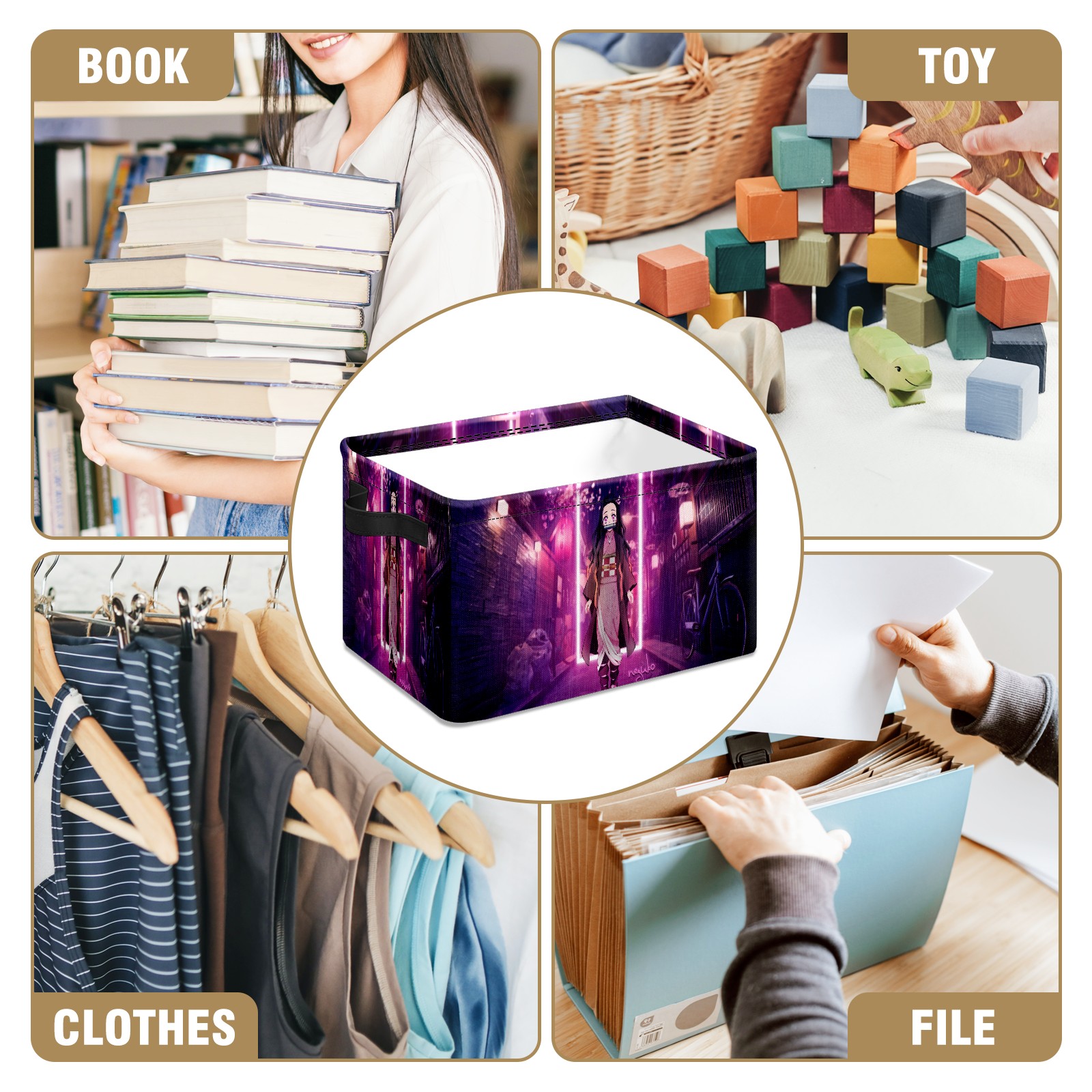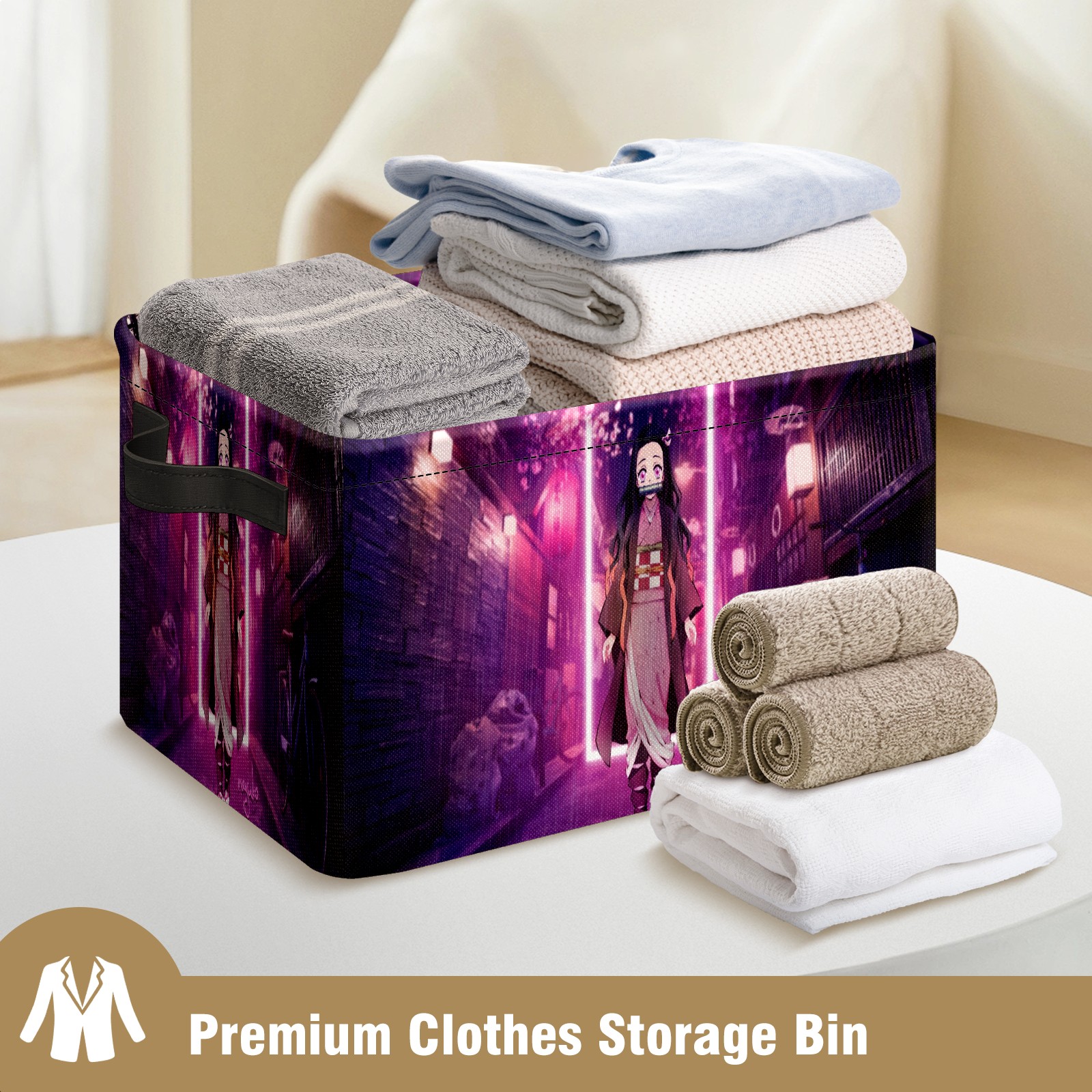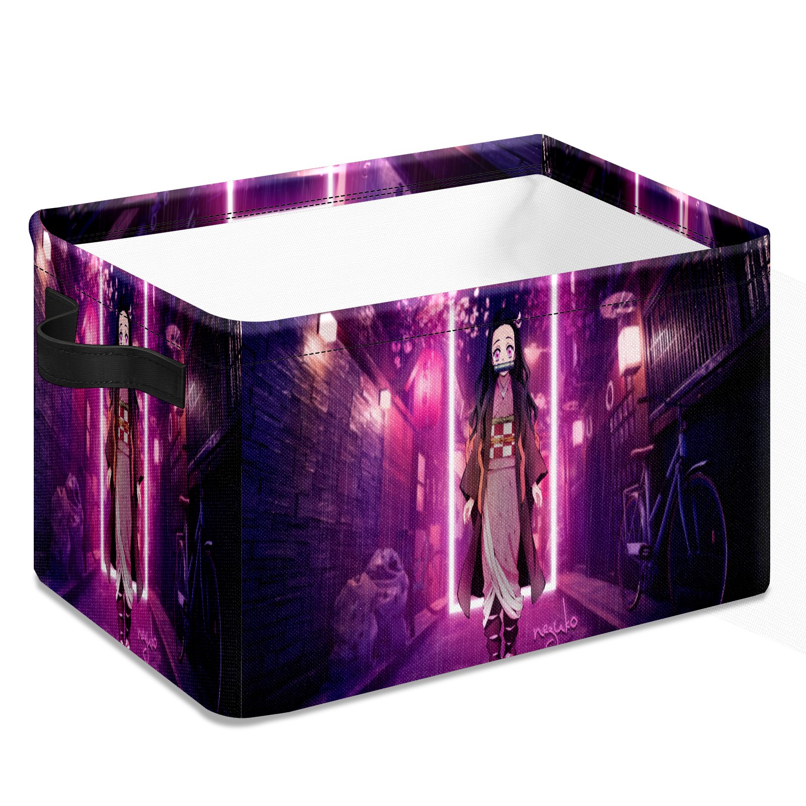 Foldable and Stackable Fabric Storage Basket for Home Organization with Handles, Decorative Closet Bins for Shelves and Laundry Storage( Demon Slayer 58)