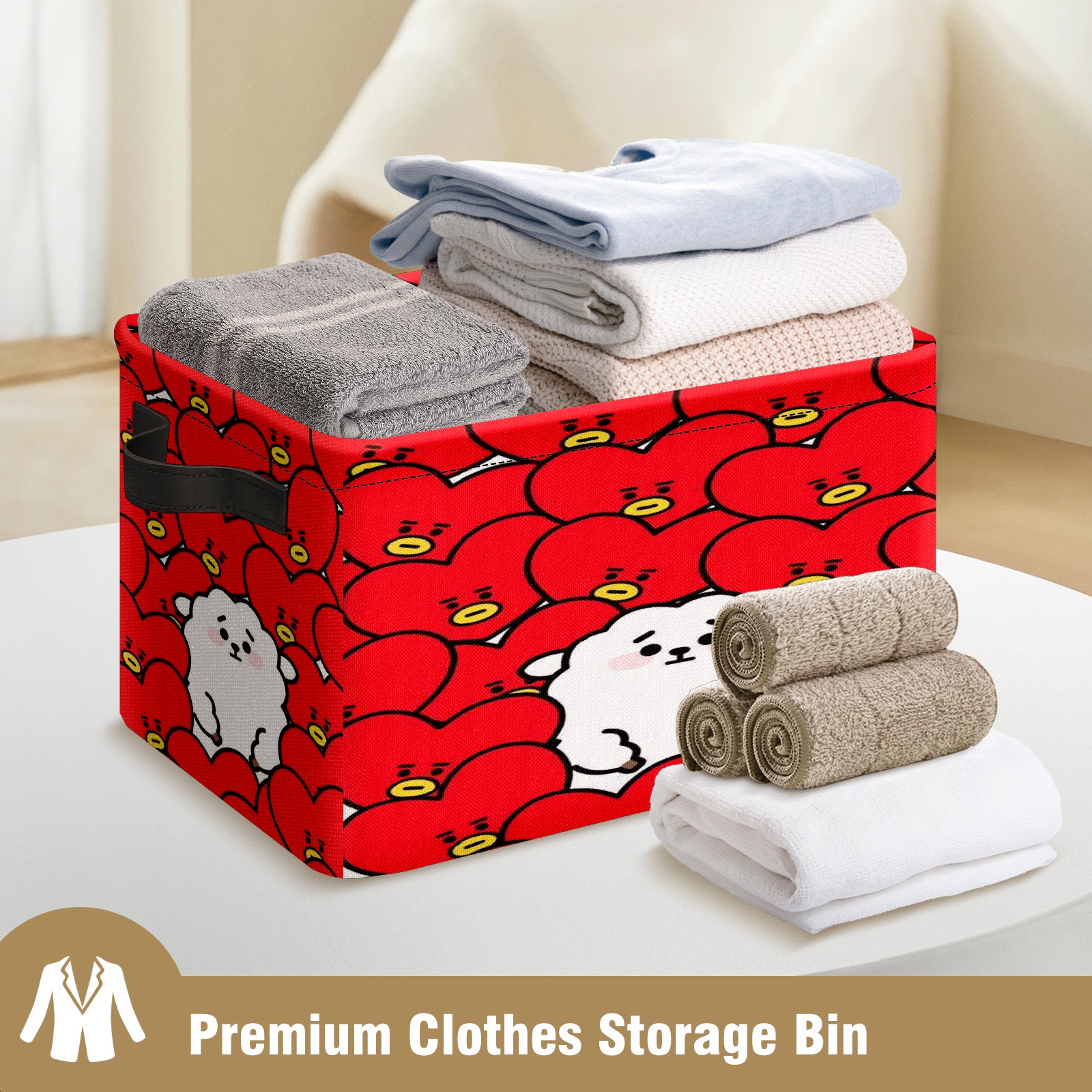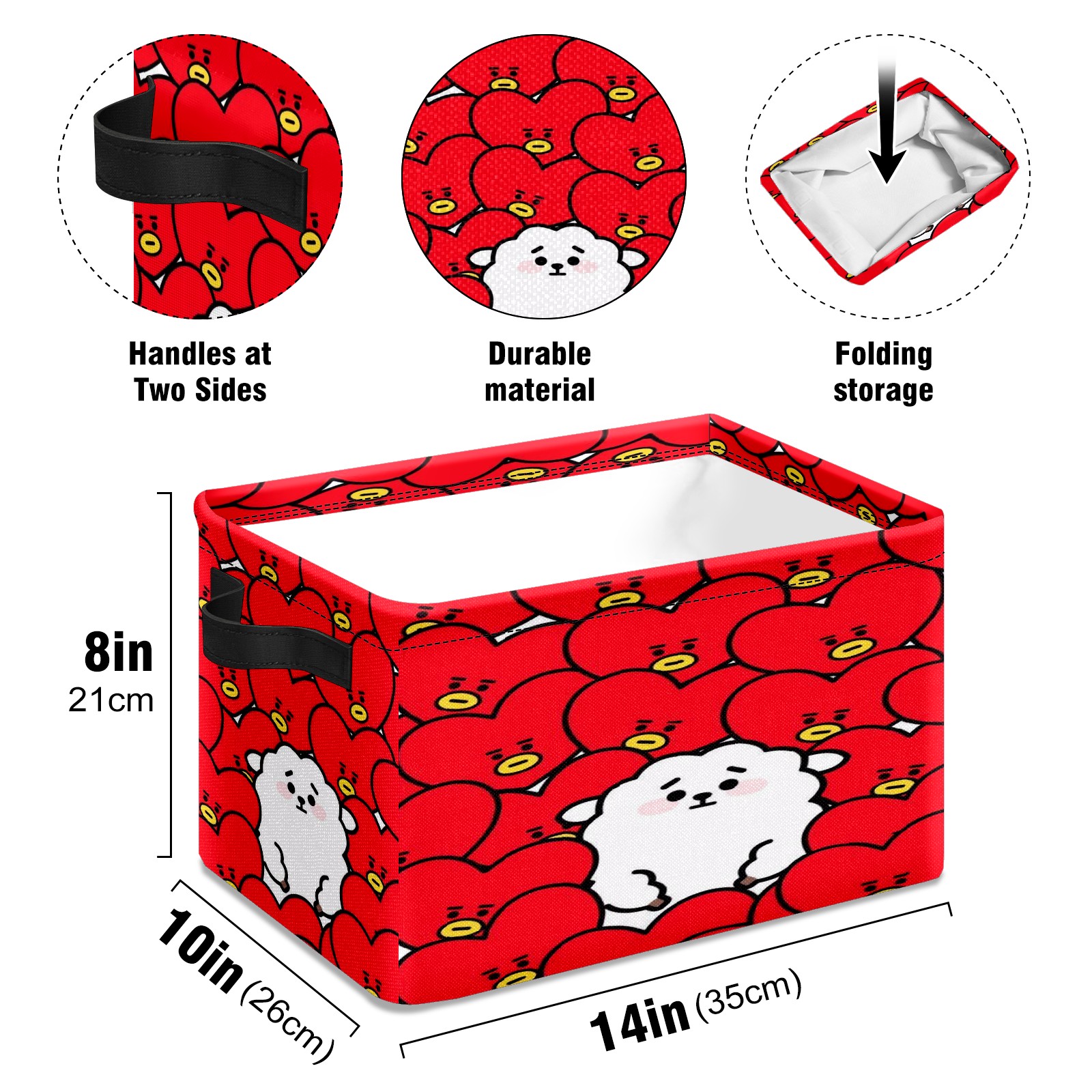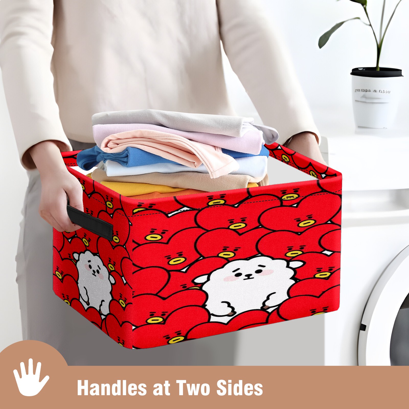 Foldable and Stackable Fabric Storage Basket for Home Organization with Handles, Decorative Closet Bins for Shelves and Laundry Storage( Bt21 Tata Rj Bts)