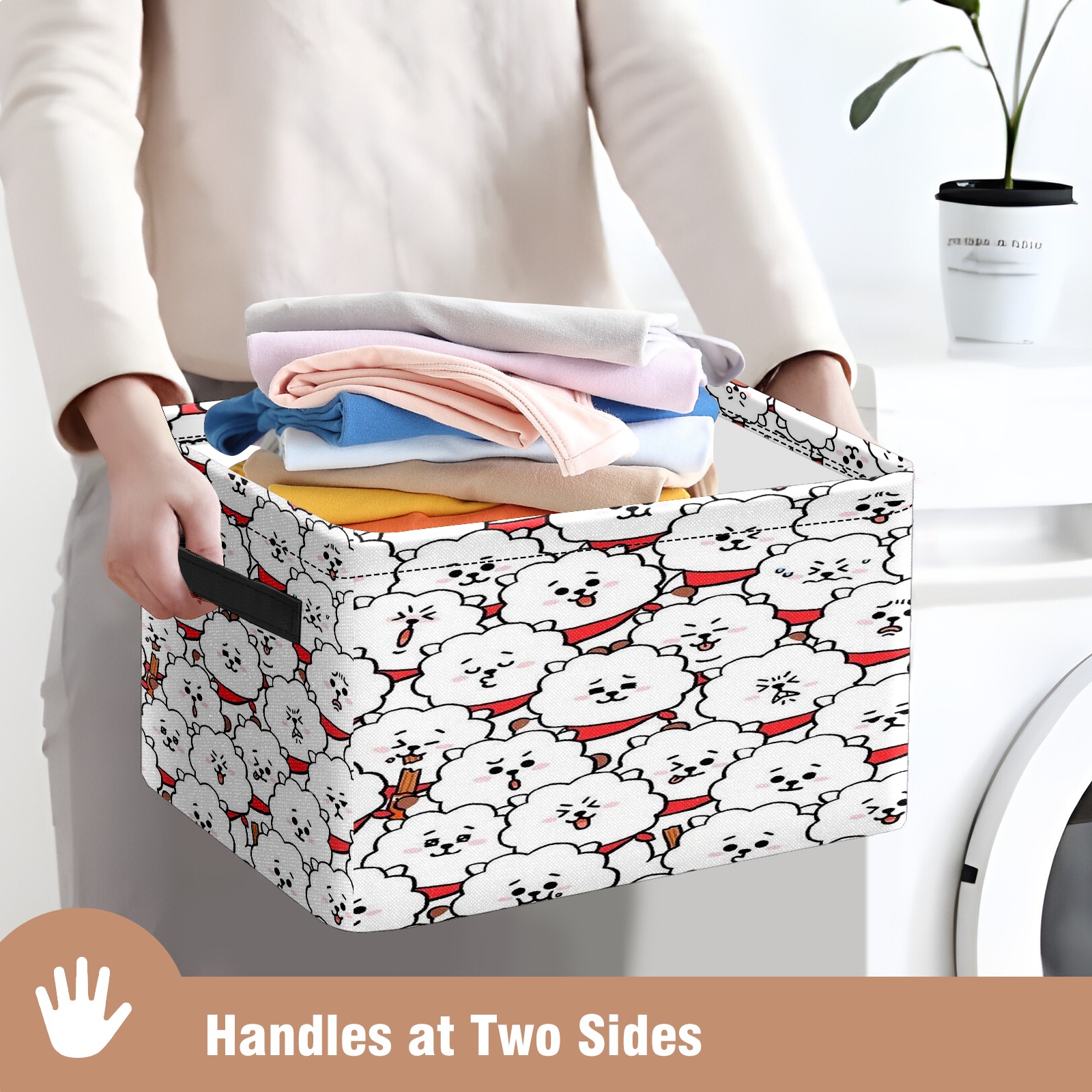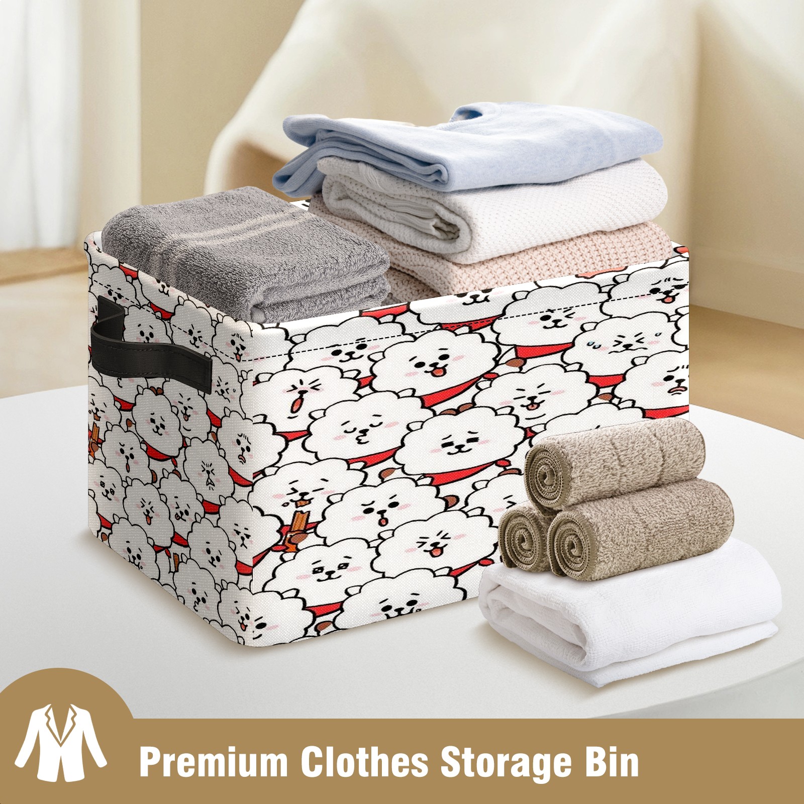 Foldable and Stackable Fabric Storage Basket for Home Organization with Handles, Decorative Closet Bins for Shelves and Laundry Storage( Bt21 Rj Bts)
