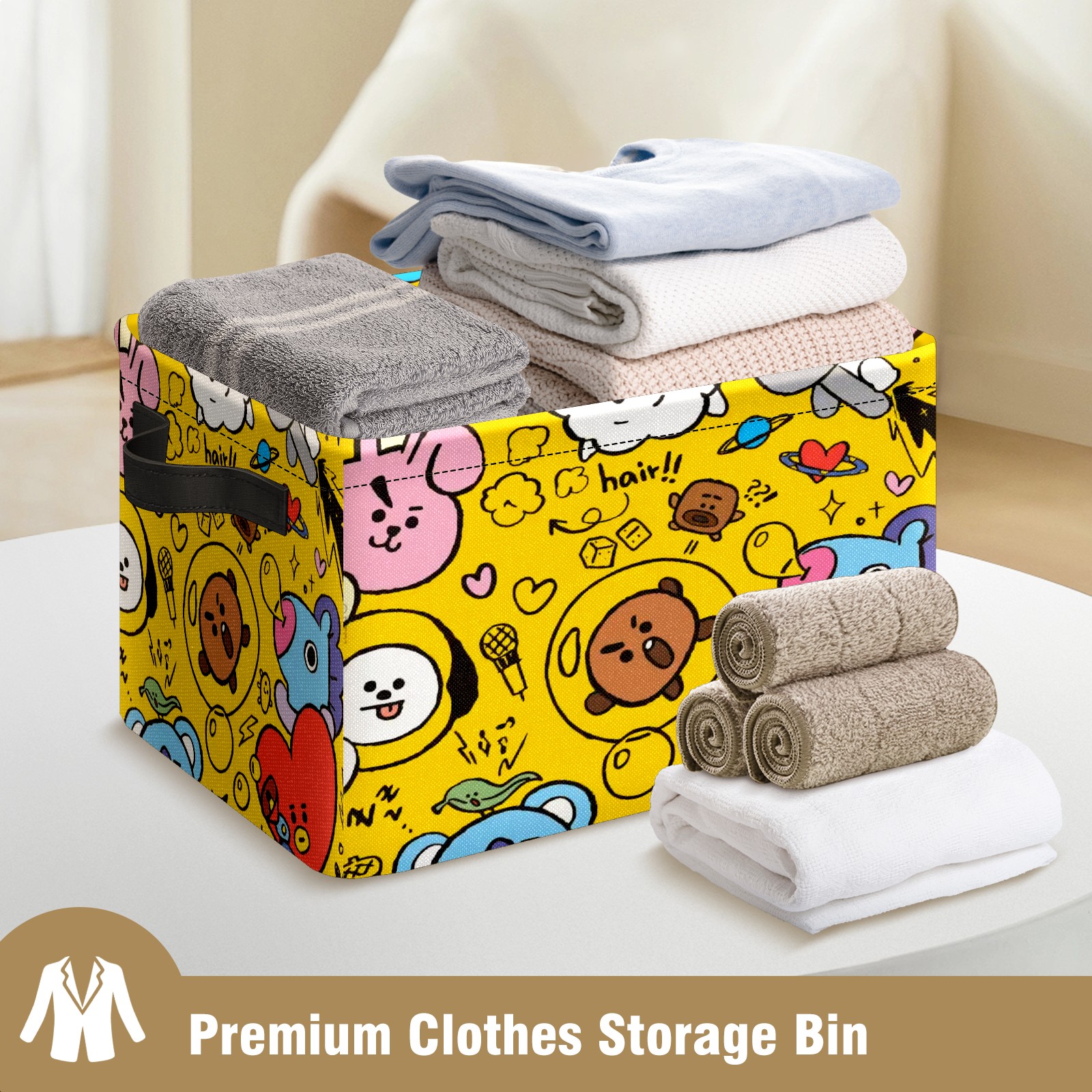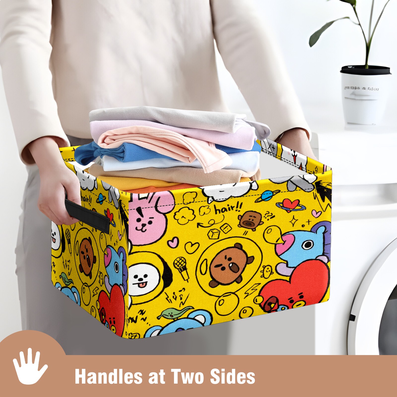 Foldable and Stackable Fabric Storage Basket for Home Organization with Handles, Decorative Closet Bins for Shelves and Laundry Storage( Bt21-014)