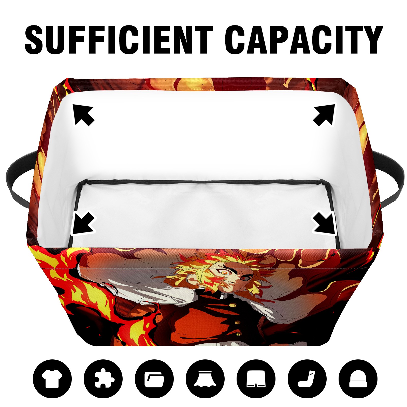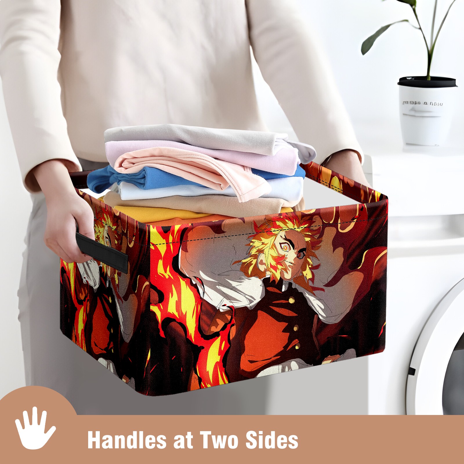 Foldable and Stackable Fabric Storage Basket for Home Organization with Handles, Decorative Closet Bins for Shelves and Laundry Storage( Demon Slayer)