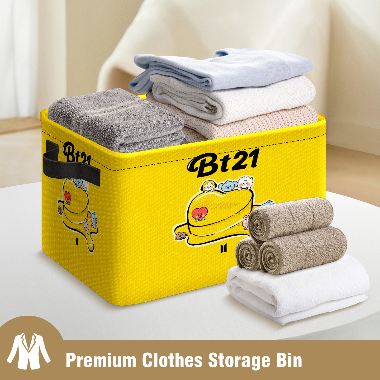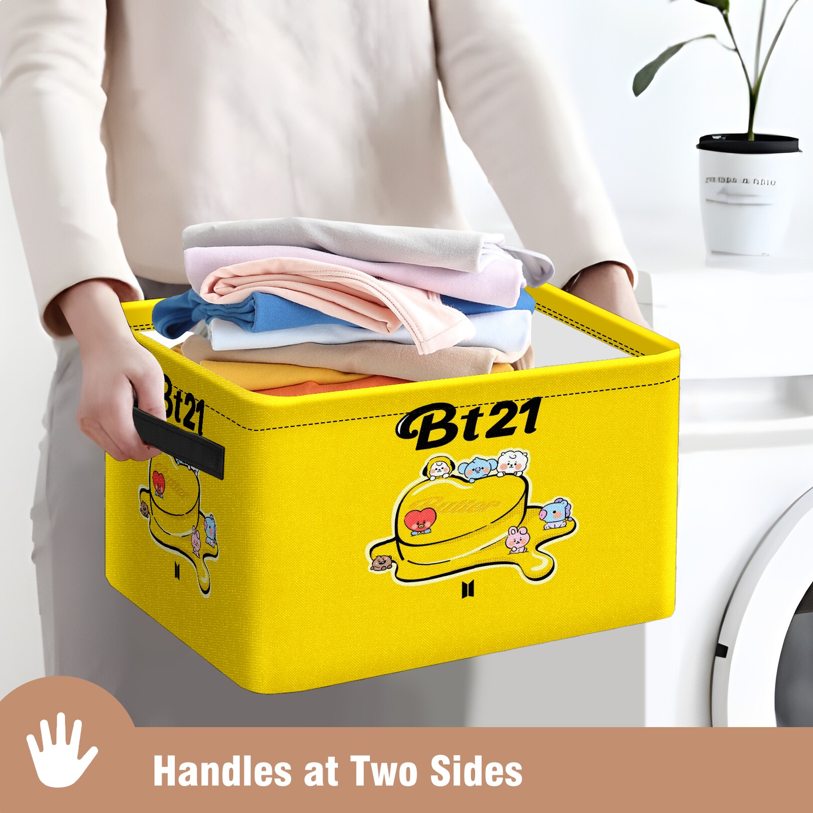 Foldable and Stackable Fabric Storage Basket for Home Organization with Handles, Decorative Closet Bins for Shelves and Laundry Storage( Bt21-010)