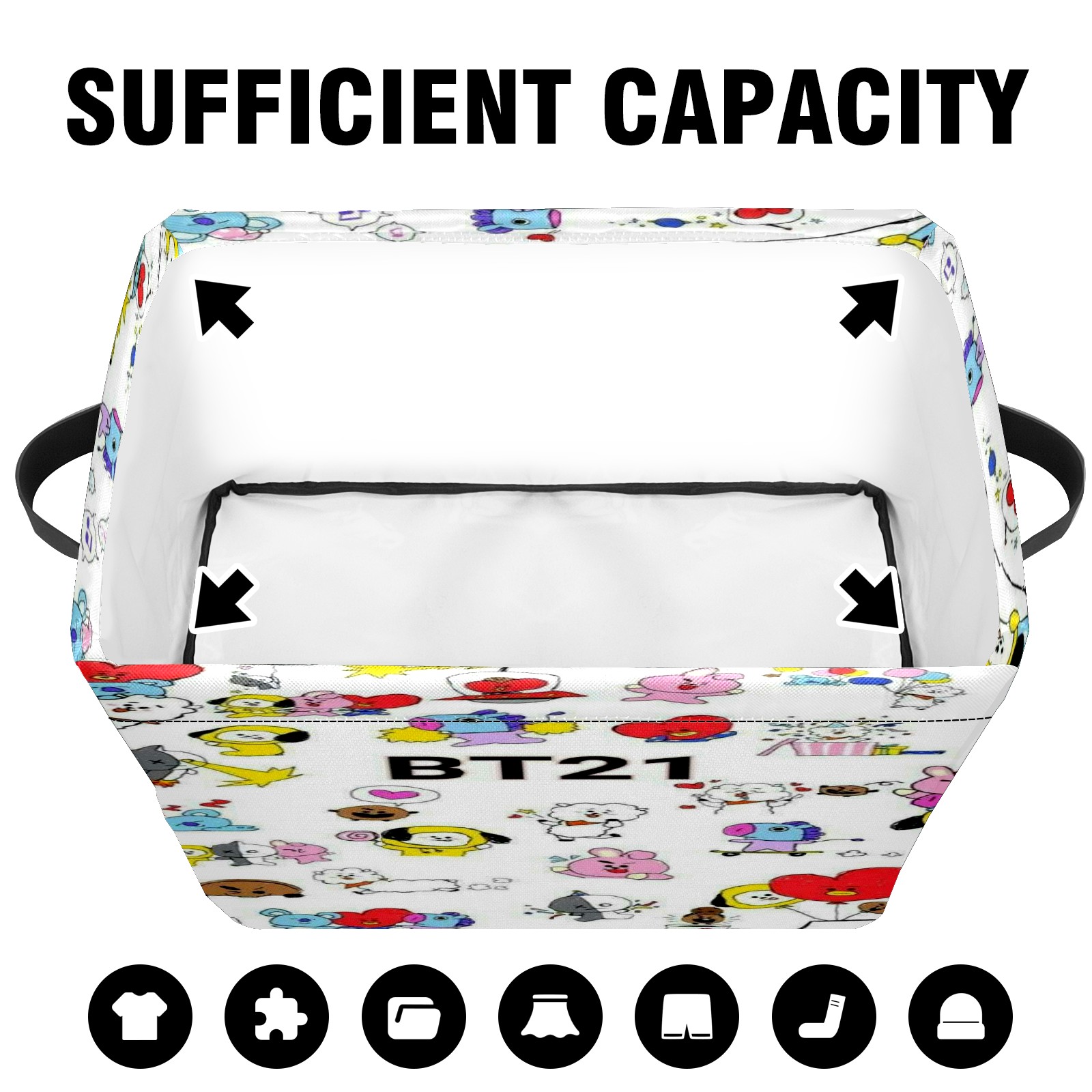 Foldable and Stackable Fabric Storage Basket for Home Organization with Handles, Decorative Closet Bins for Shelves and Laundry Storage( Bt21-005)