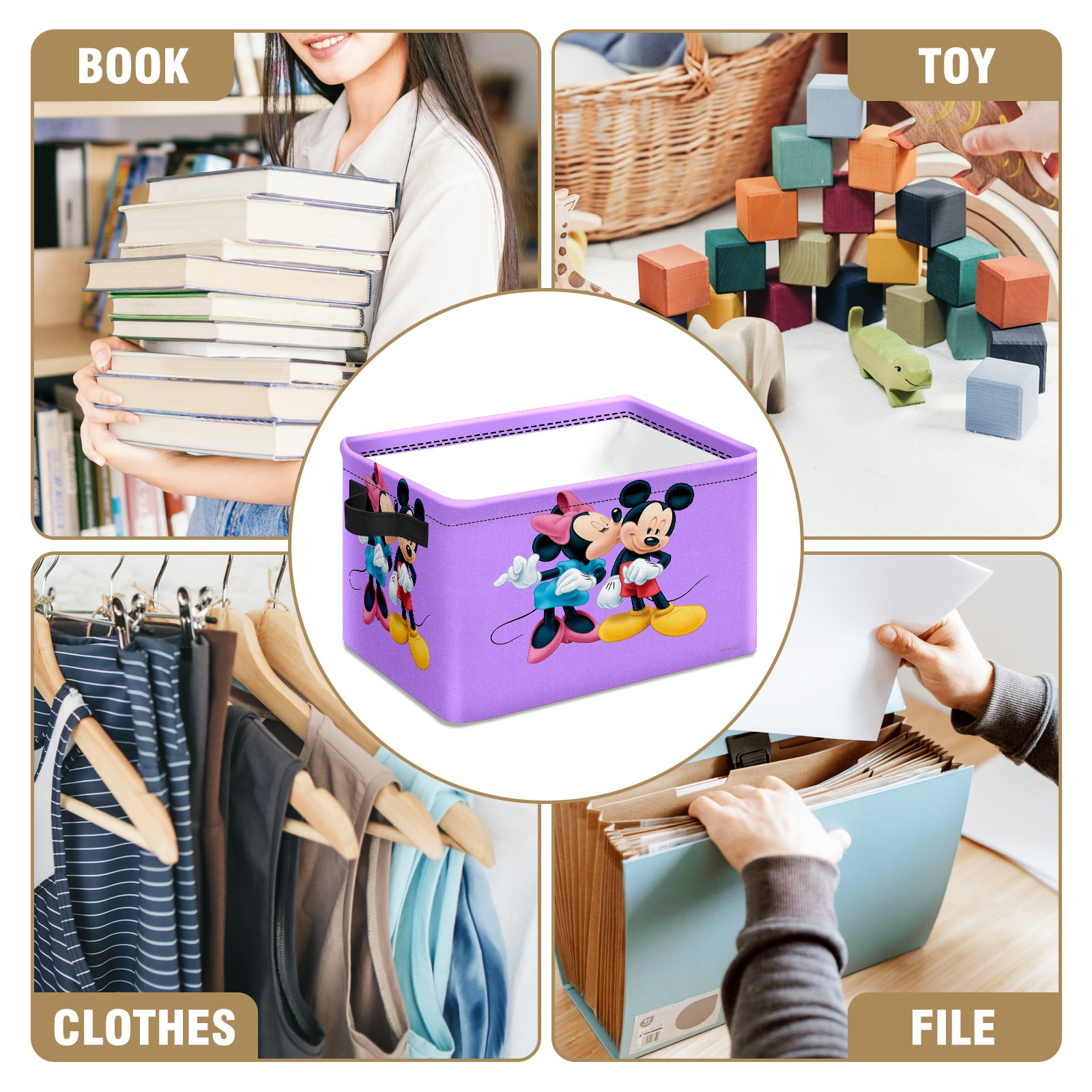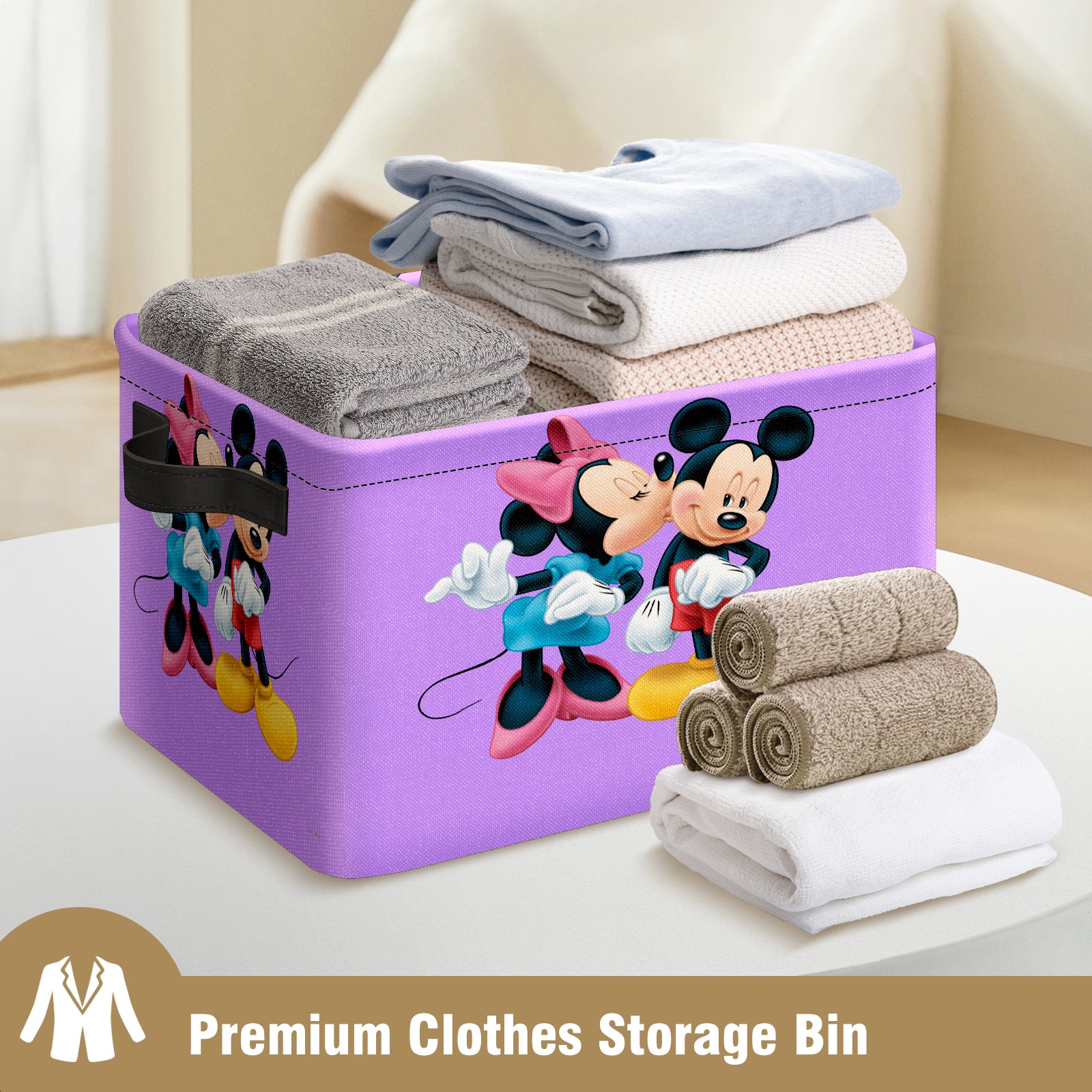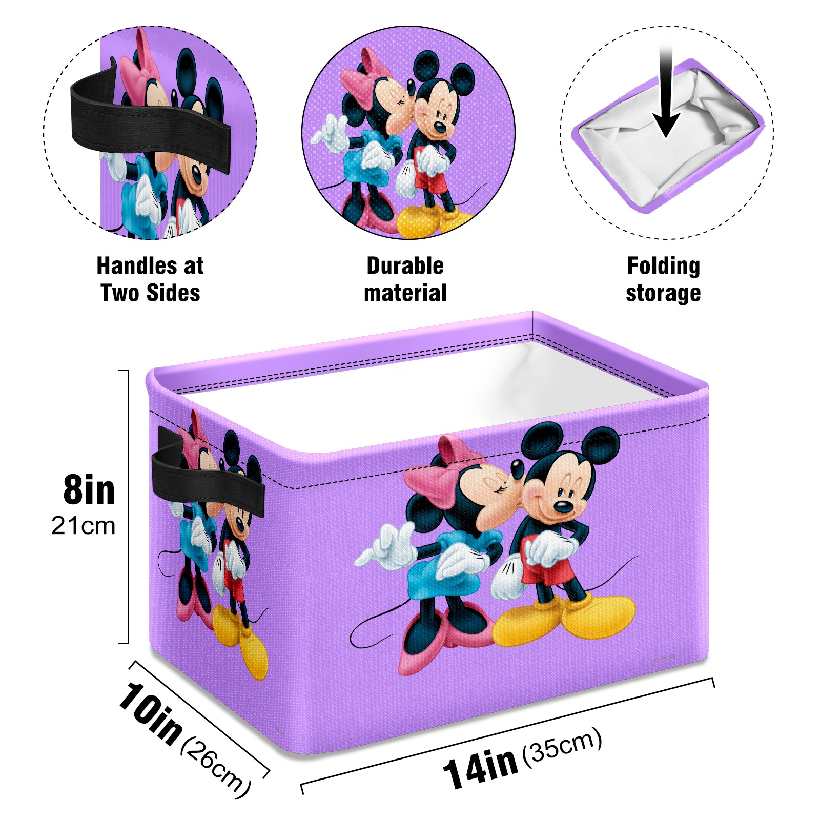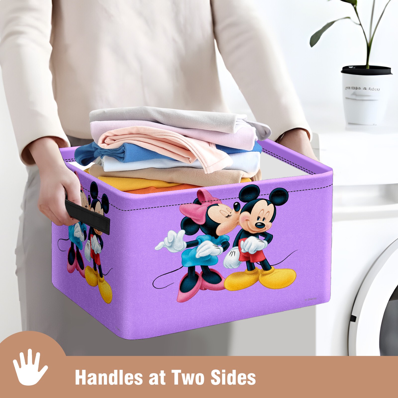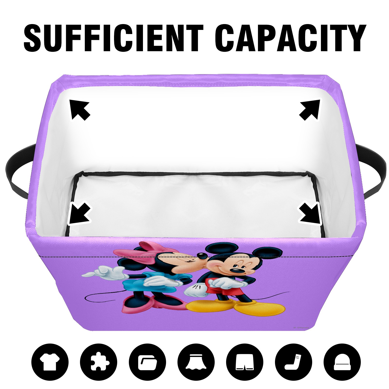 Foldable and Stackable Fabric Storage Basket for Home Organization with Handles, Decorative Closet Bins for Shelves and Laundry Storage( Mickey Minnie)