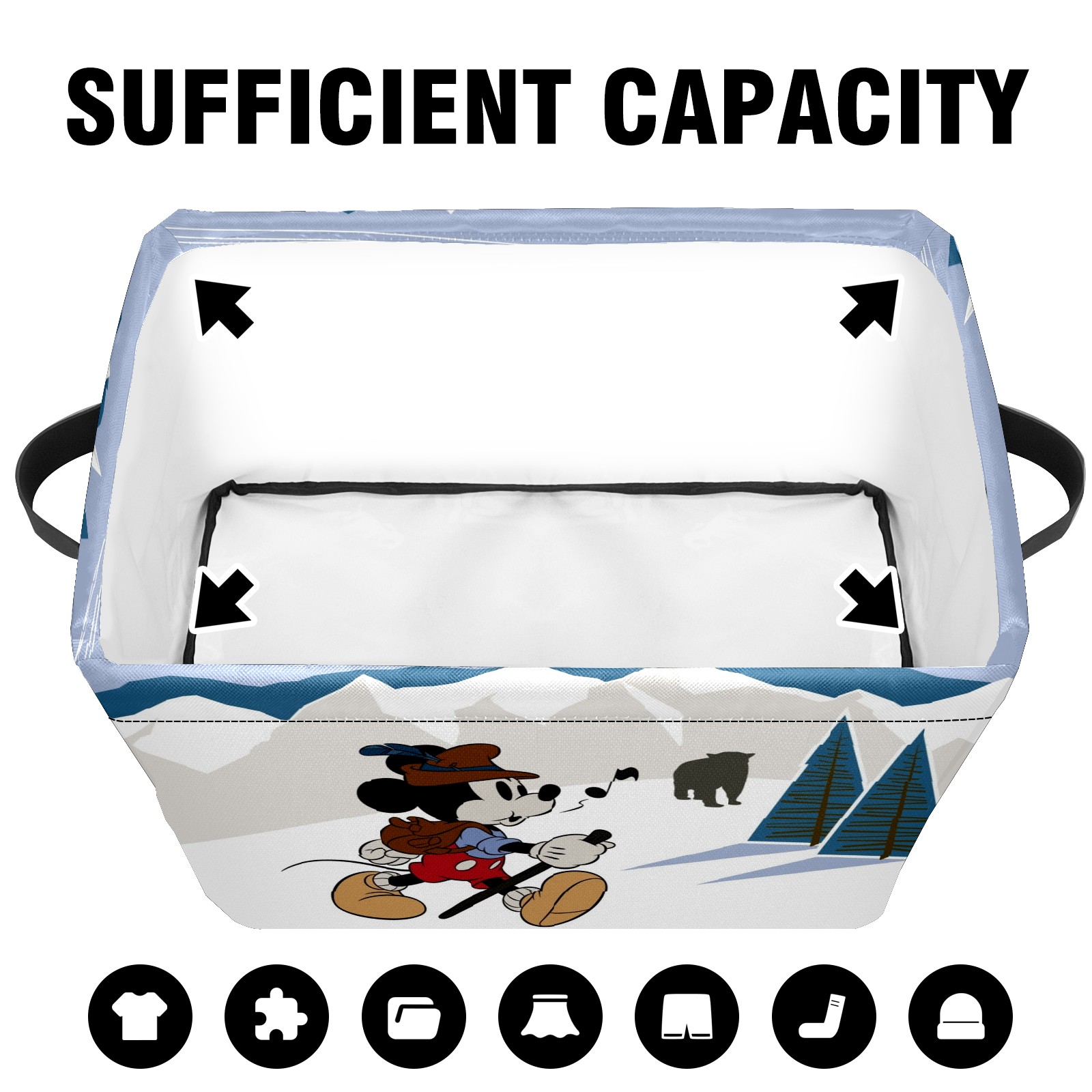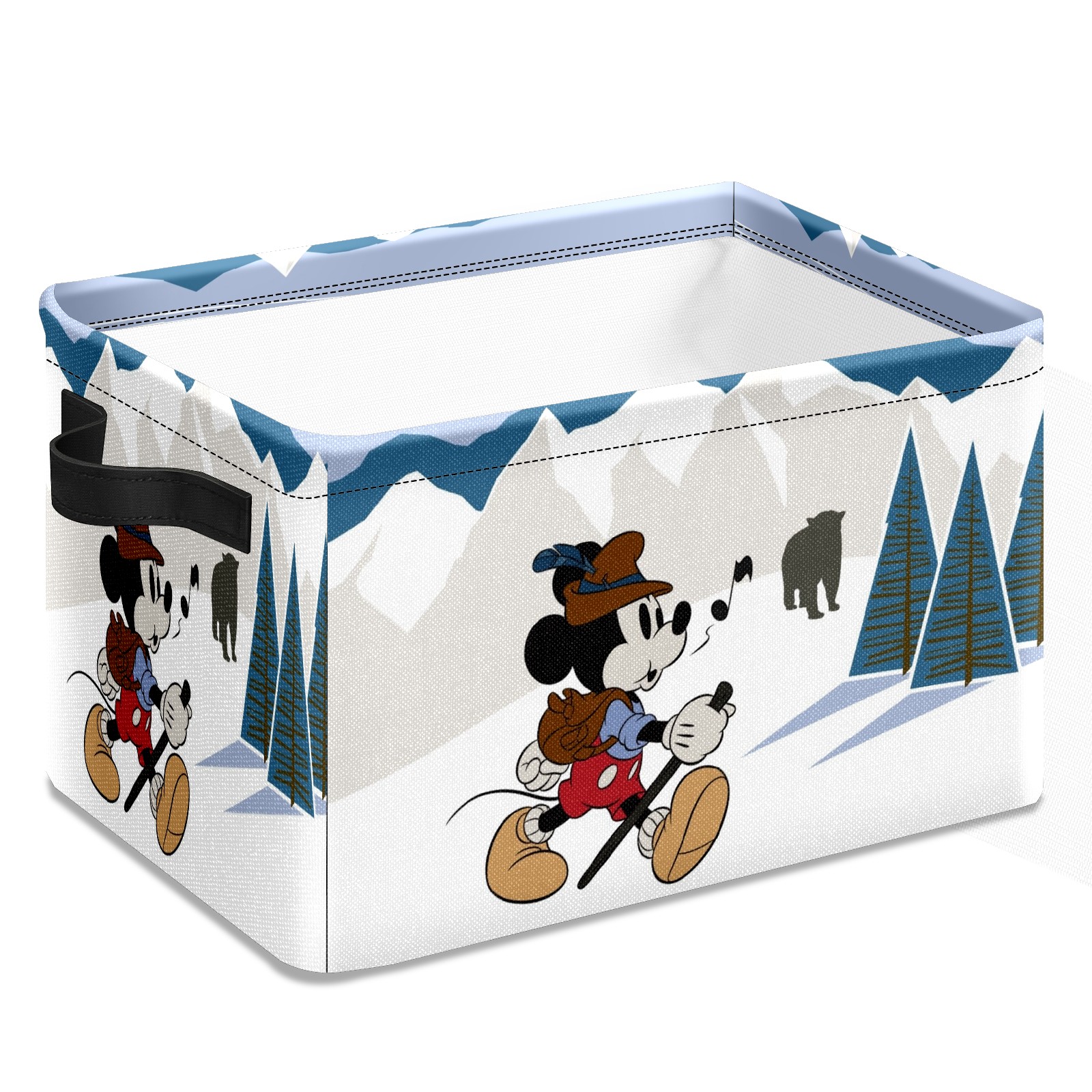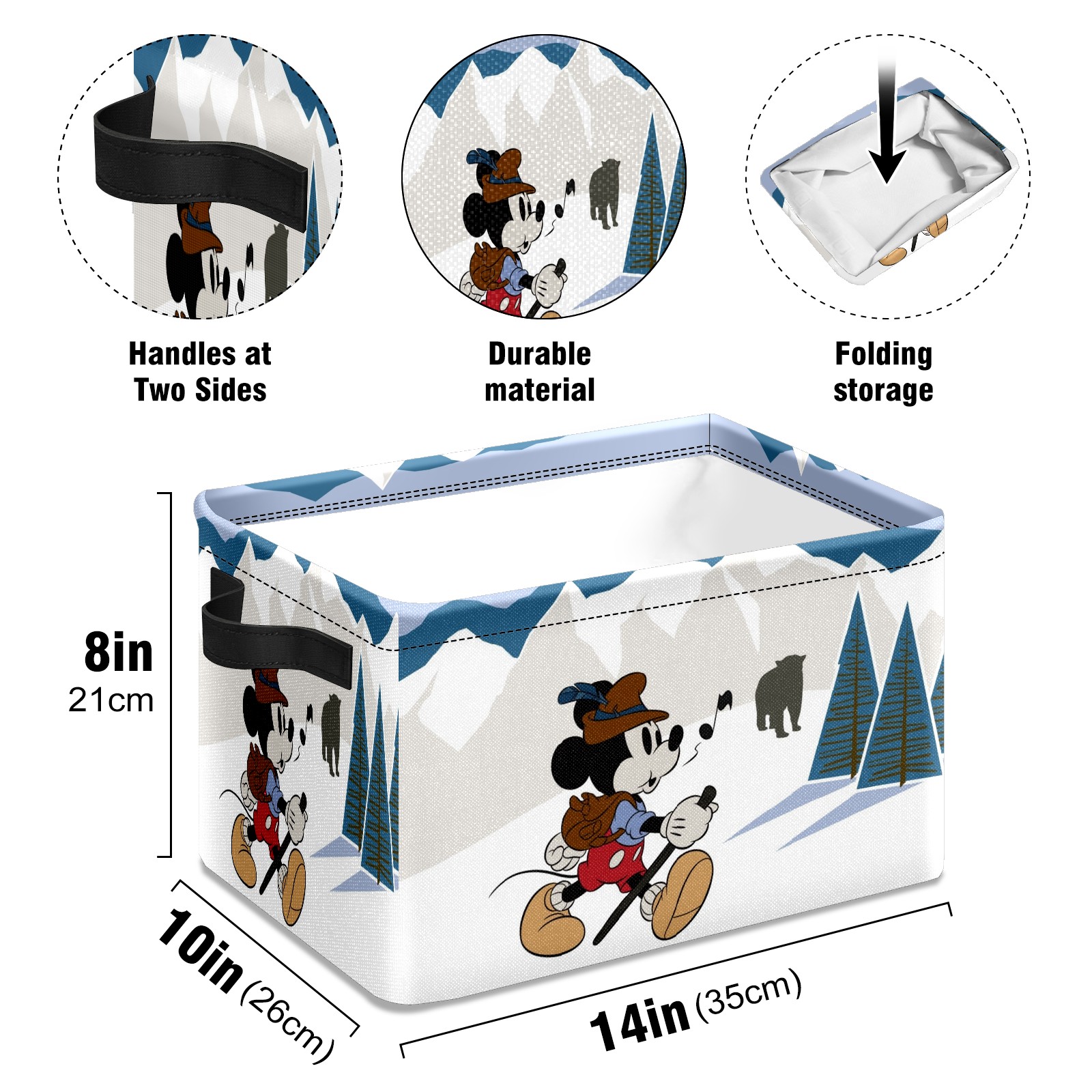 Foldable and Stackable Fabric Storage Basket for Home Organization with Handles, Decorative Closet Bins for Shelves and Laundry Storage( Mickey Mouse Winter Night Forest)