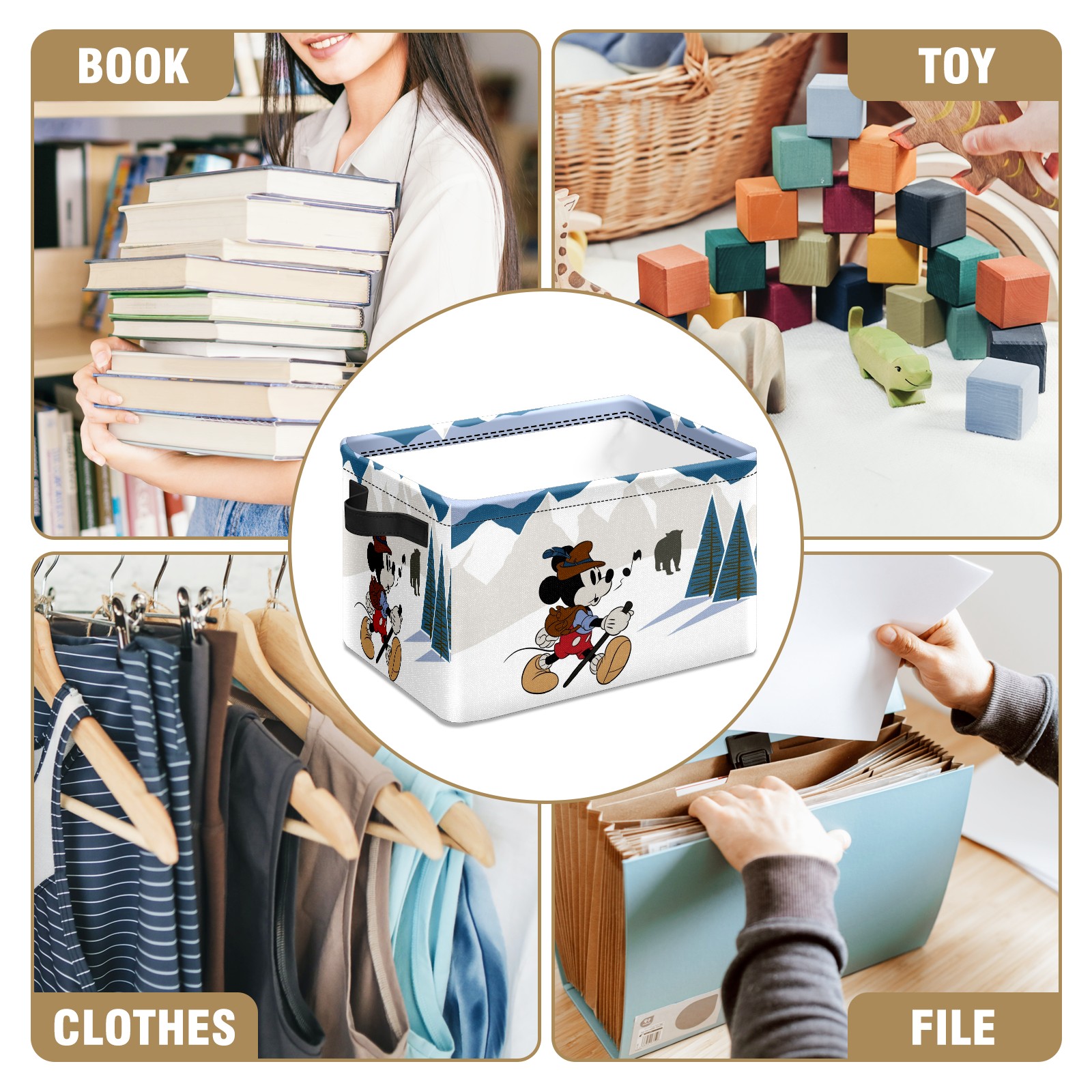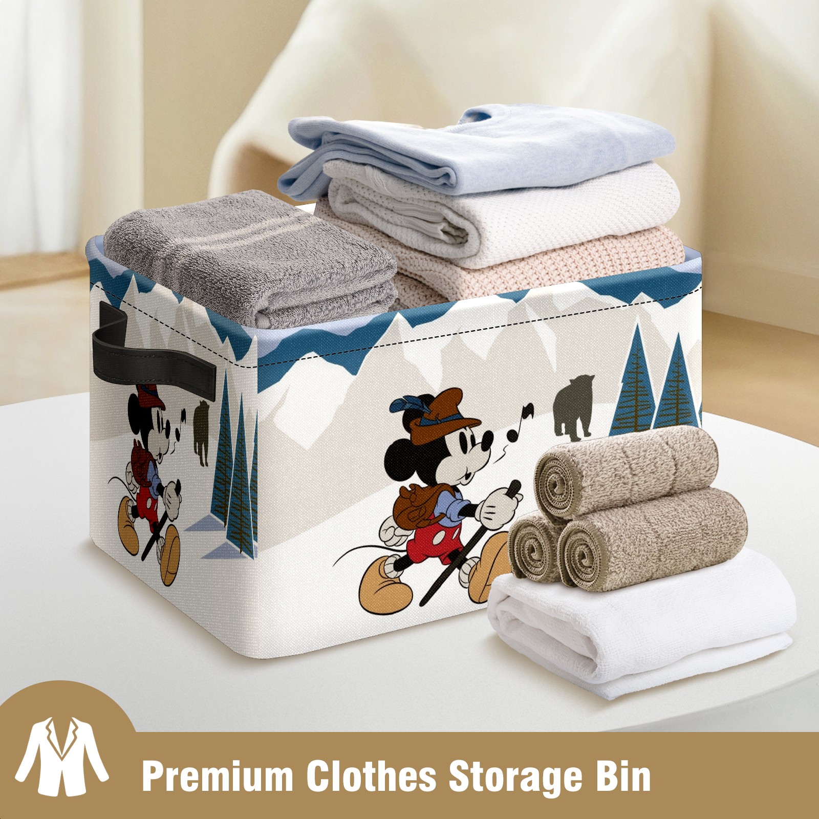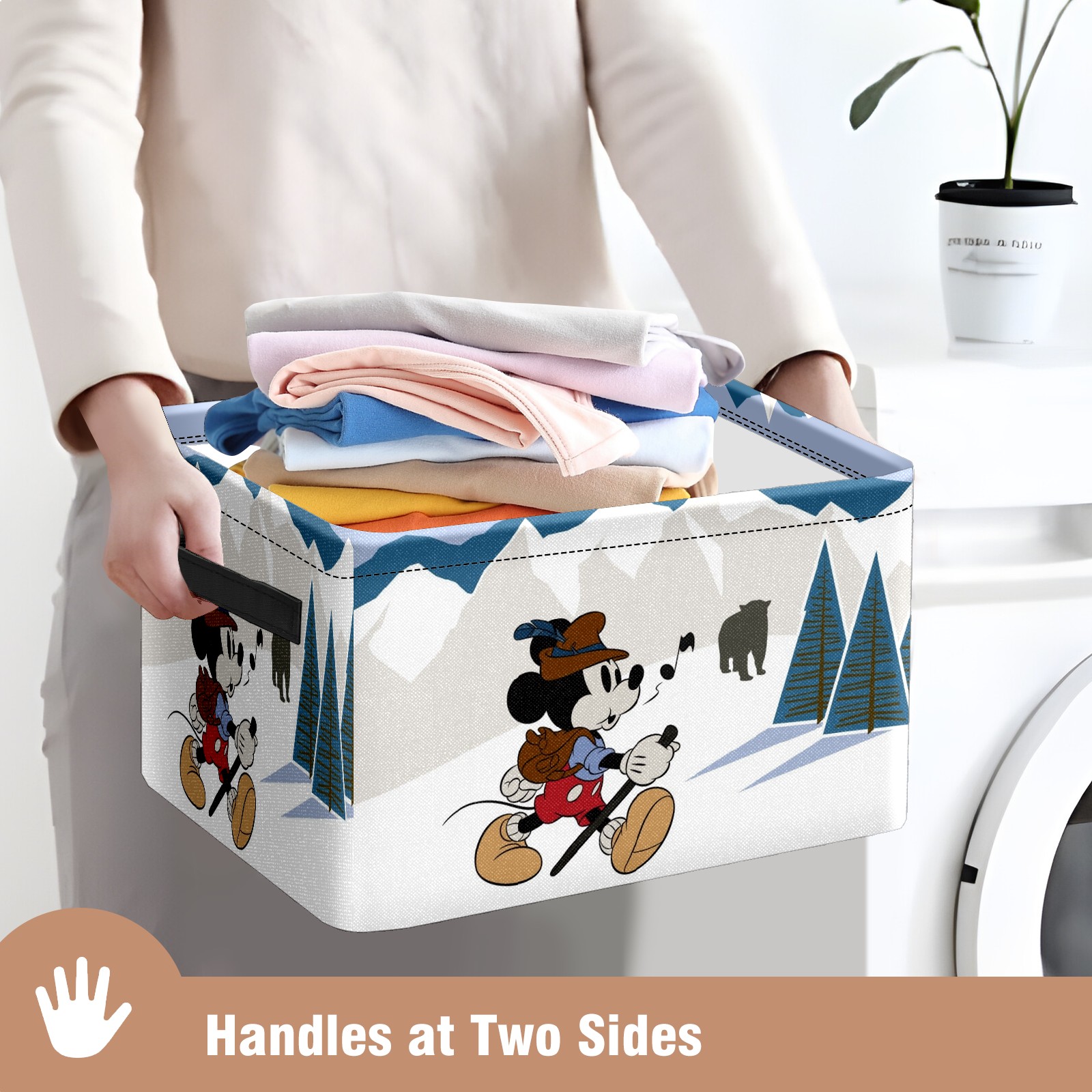Foldable and Stackable Fabric Storage Basket for Home Organization with Handles, Decorative Closet Bins for Shelves and Laundry Storage( Mickey Mouse Winter Night Forest)