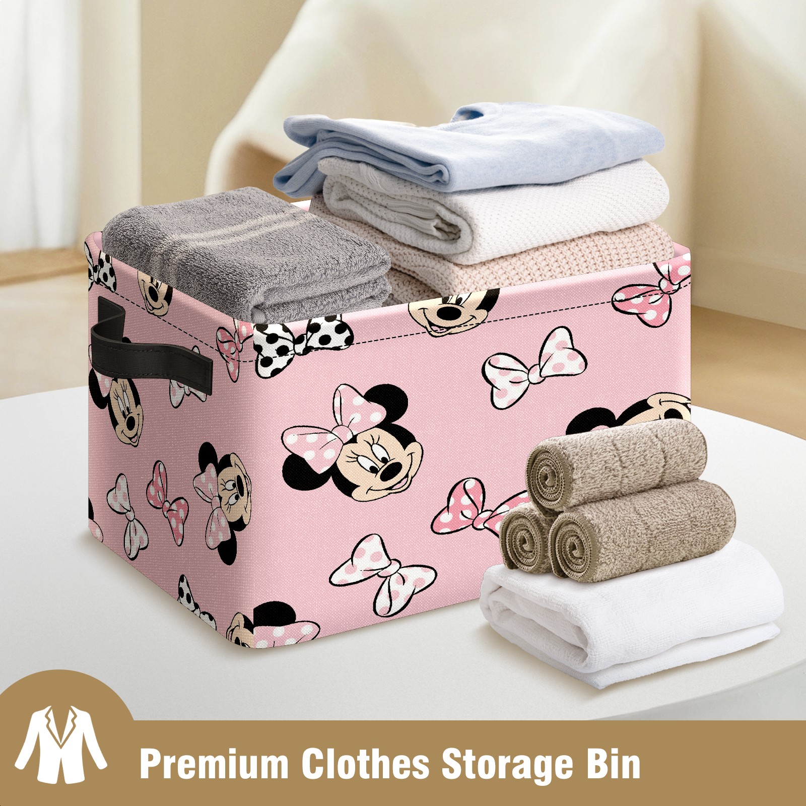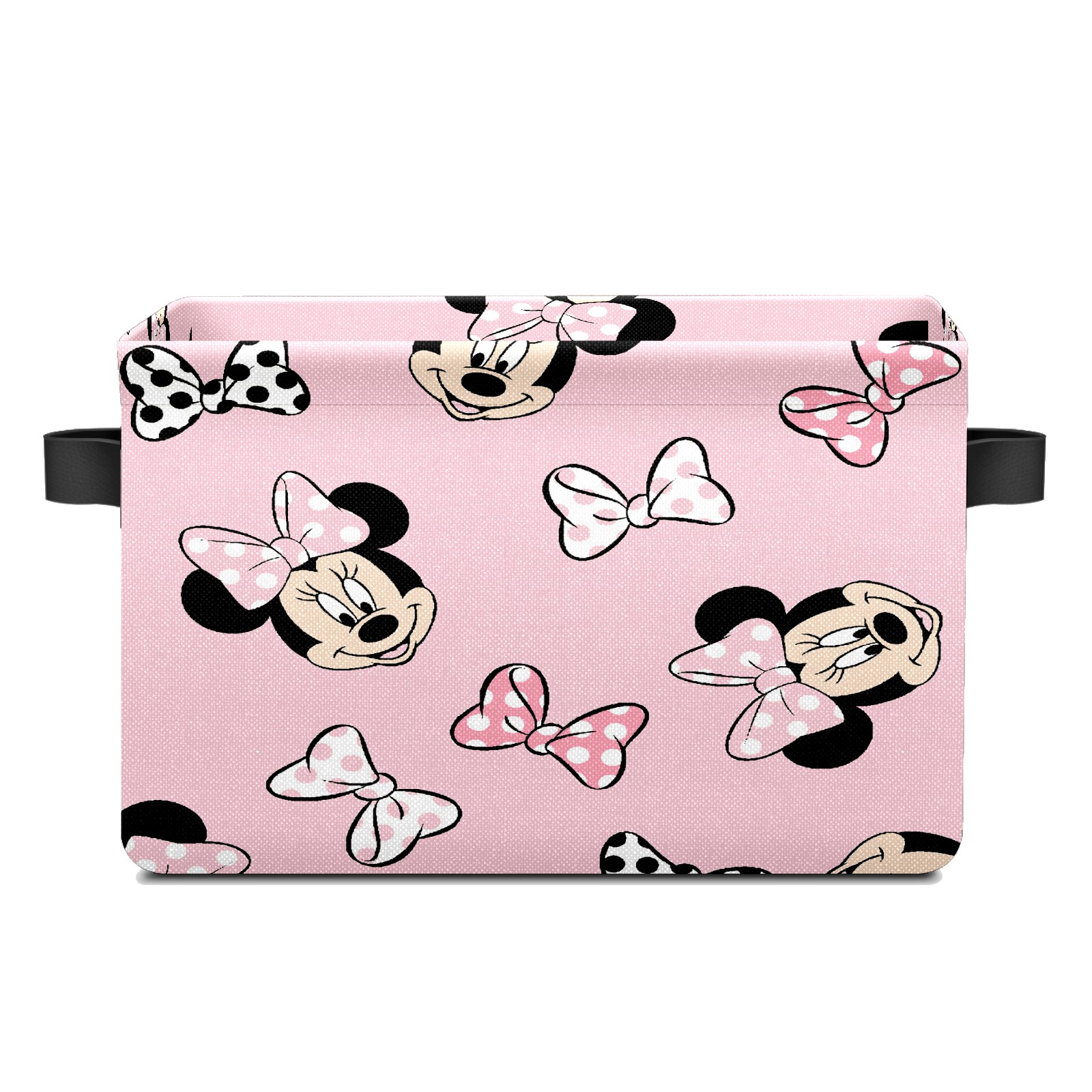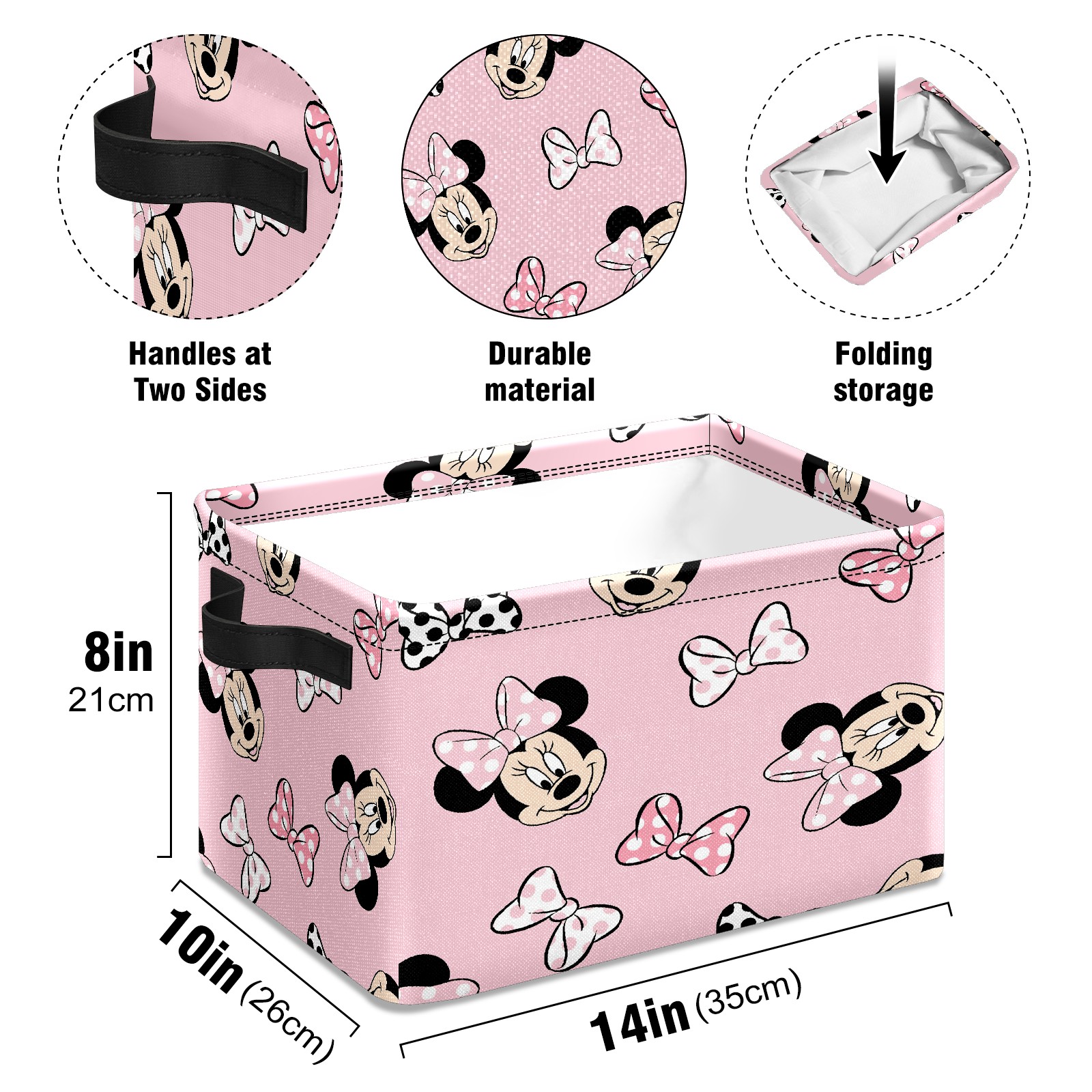Foldable and Stackable Fabric Storage Basket for Home Organization with Handles, Decorative Closet Bins for Shelves and Laundry Storage( Mickey Mouse Minni)