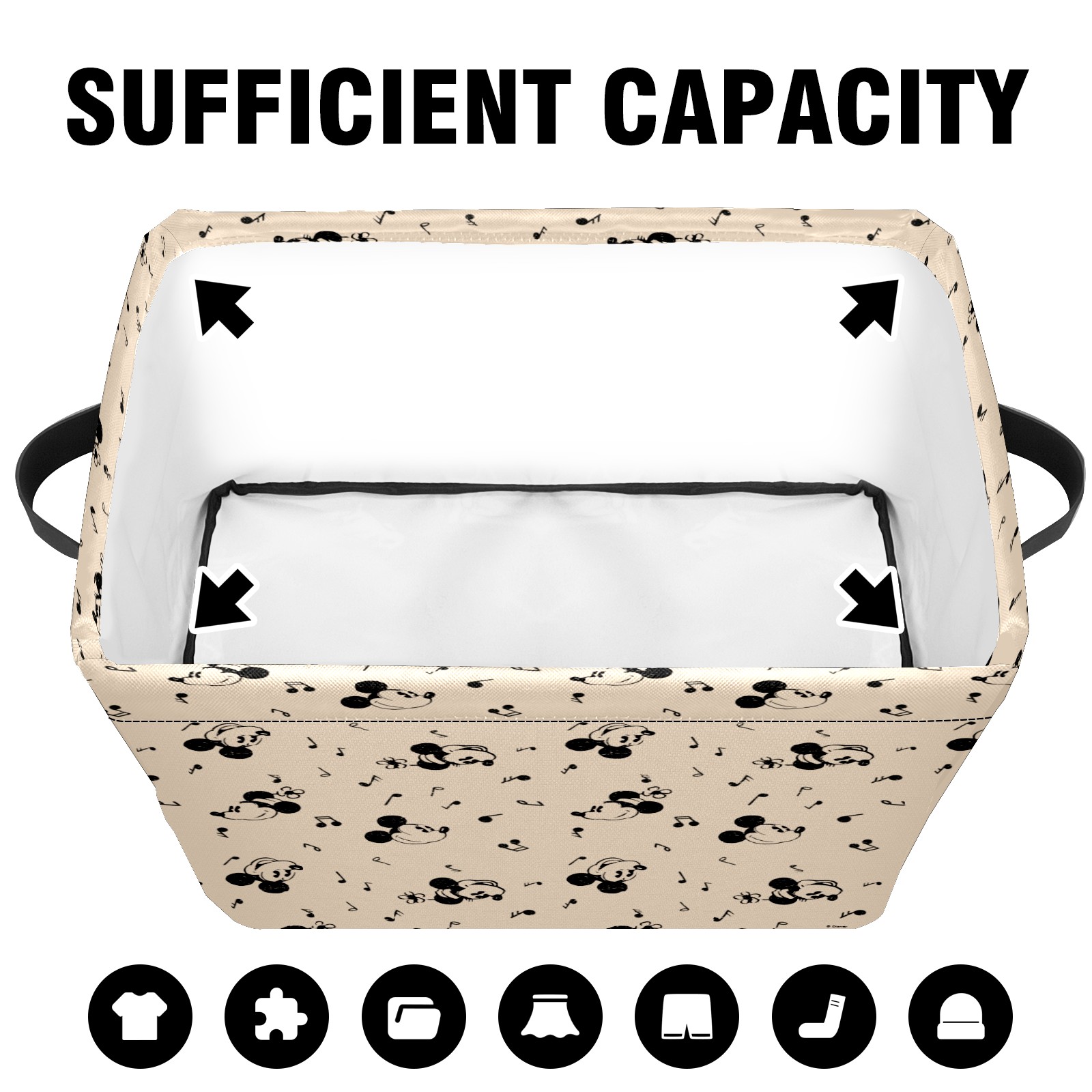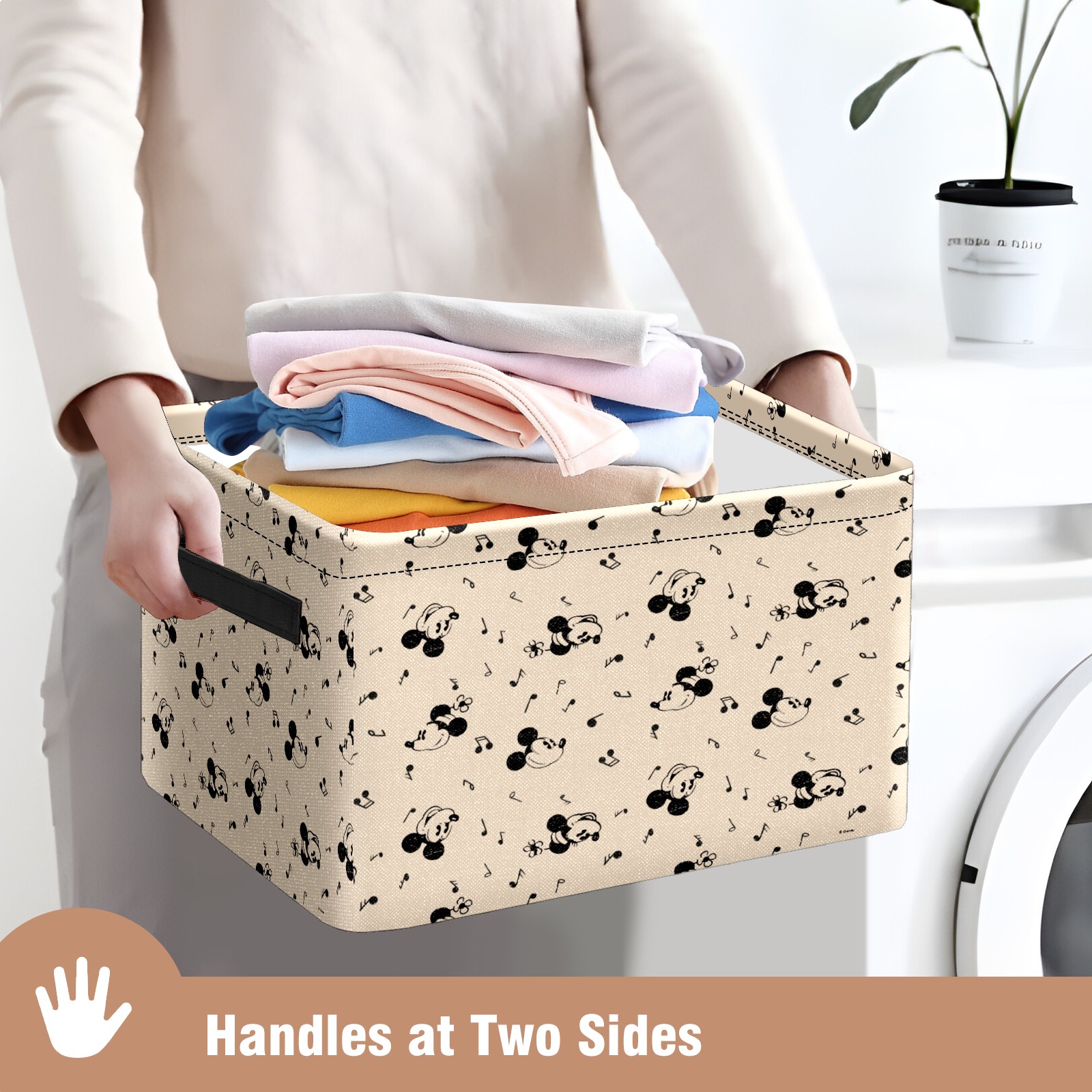 Foldable and Stackable Fabric Storage Basket for Home Organization with Handles, Decorative Closet Bins for Shelves and Laundry Storage( Vintage Mickey Minnie Music Pattern)