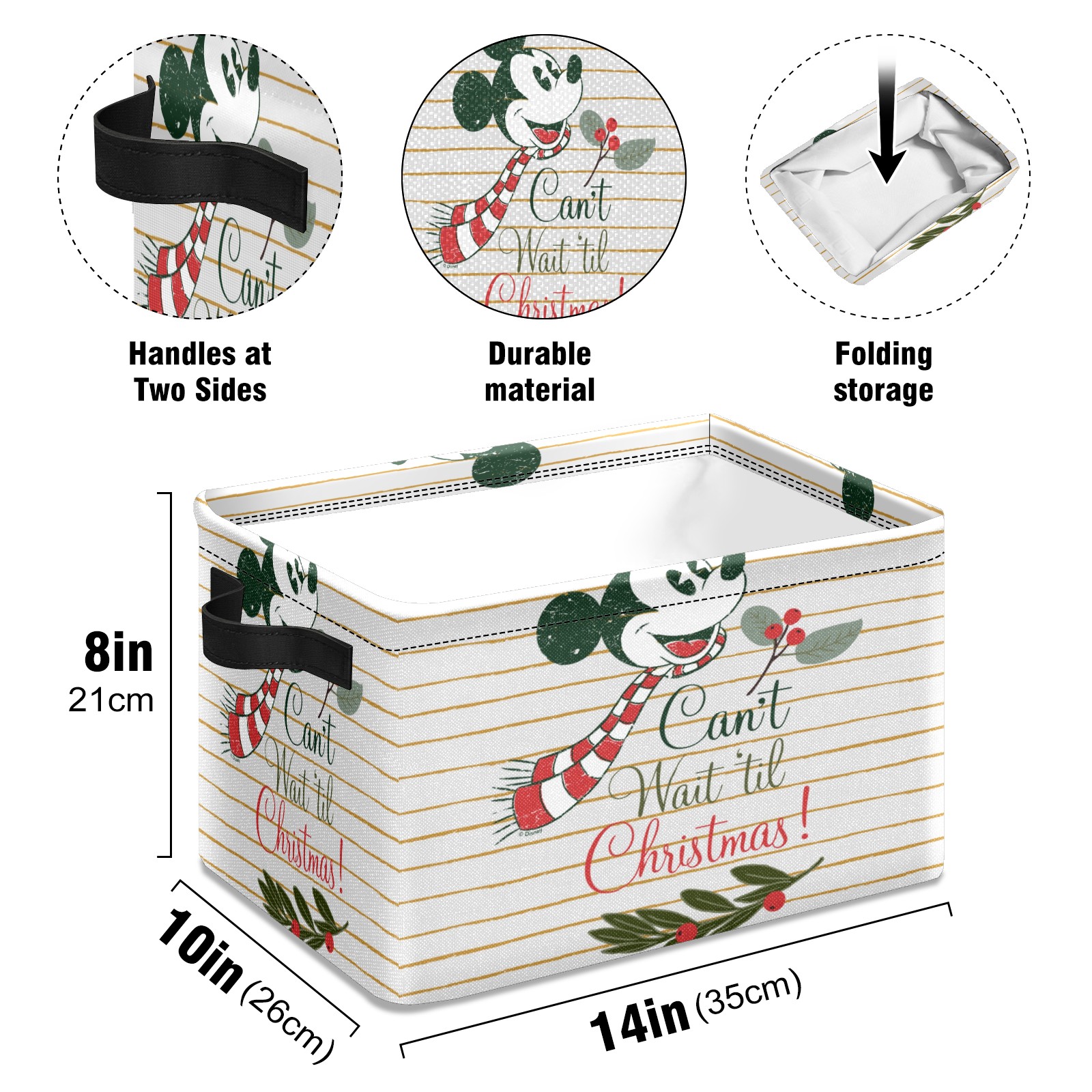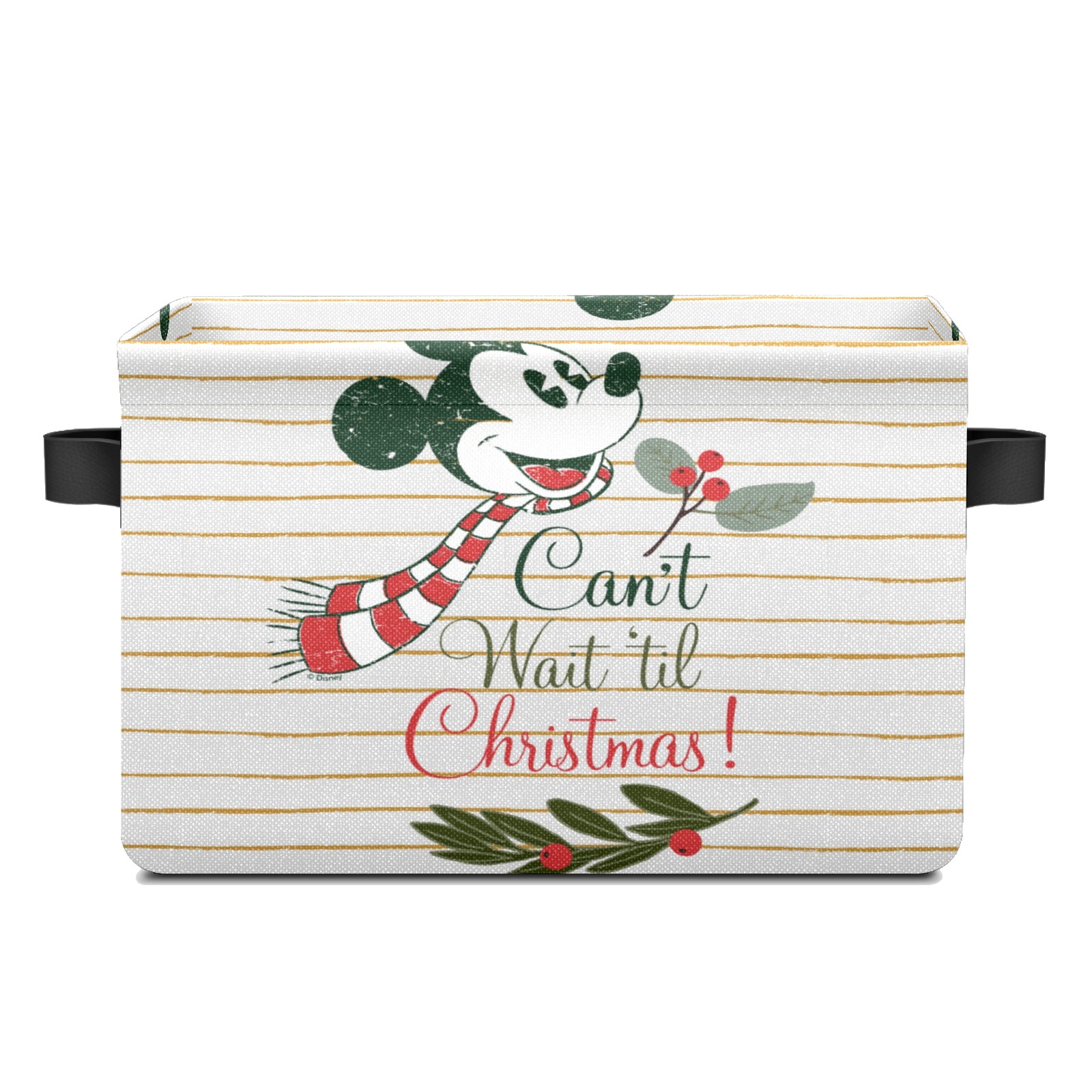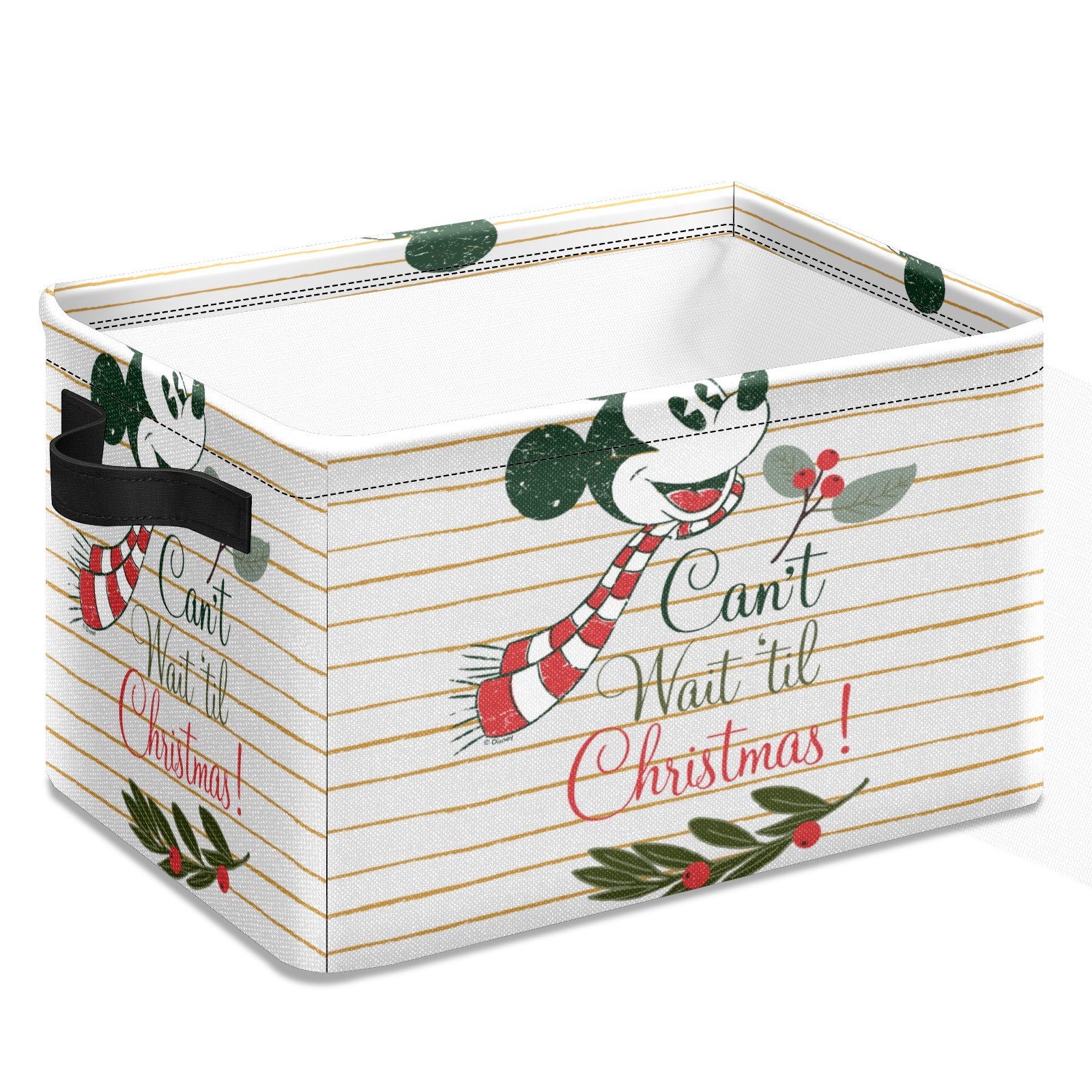 Foldable and Stackable Fabric Storage Basket for Home Organization with Handles, Decorative Closet Bins for Shelves and Laundry Storage( Mickey Mouse Can't Wait 'til Christmas)