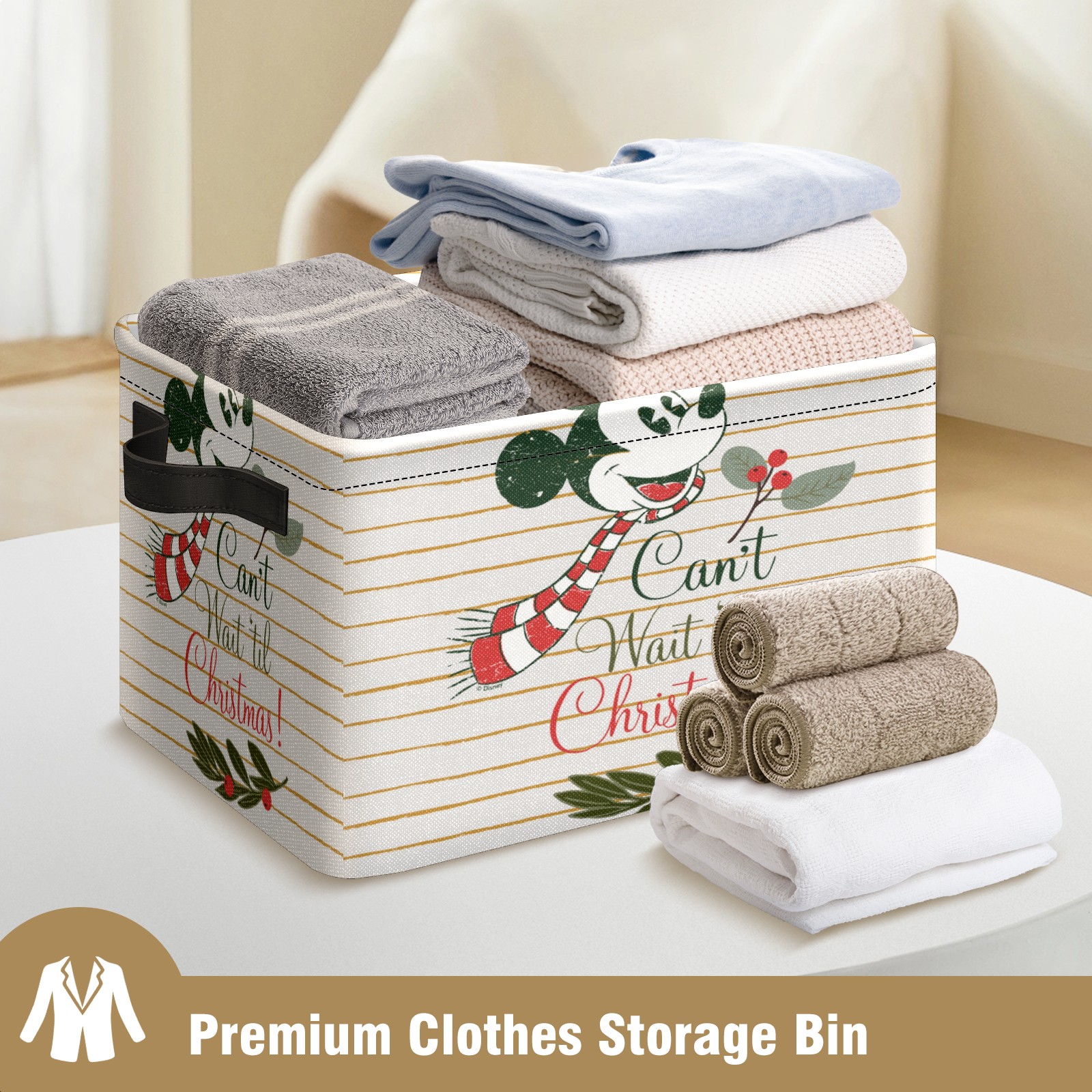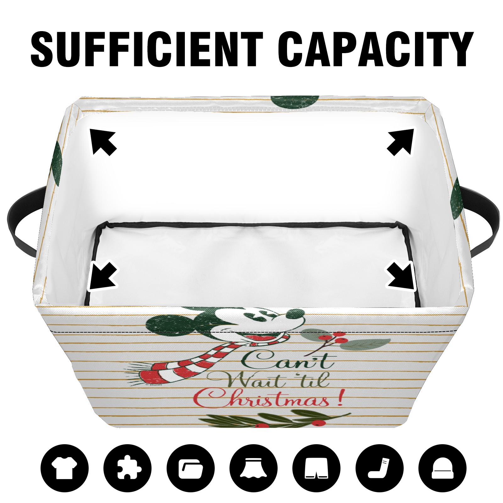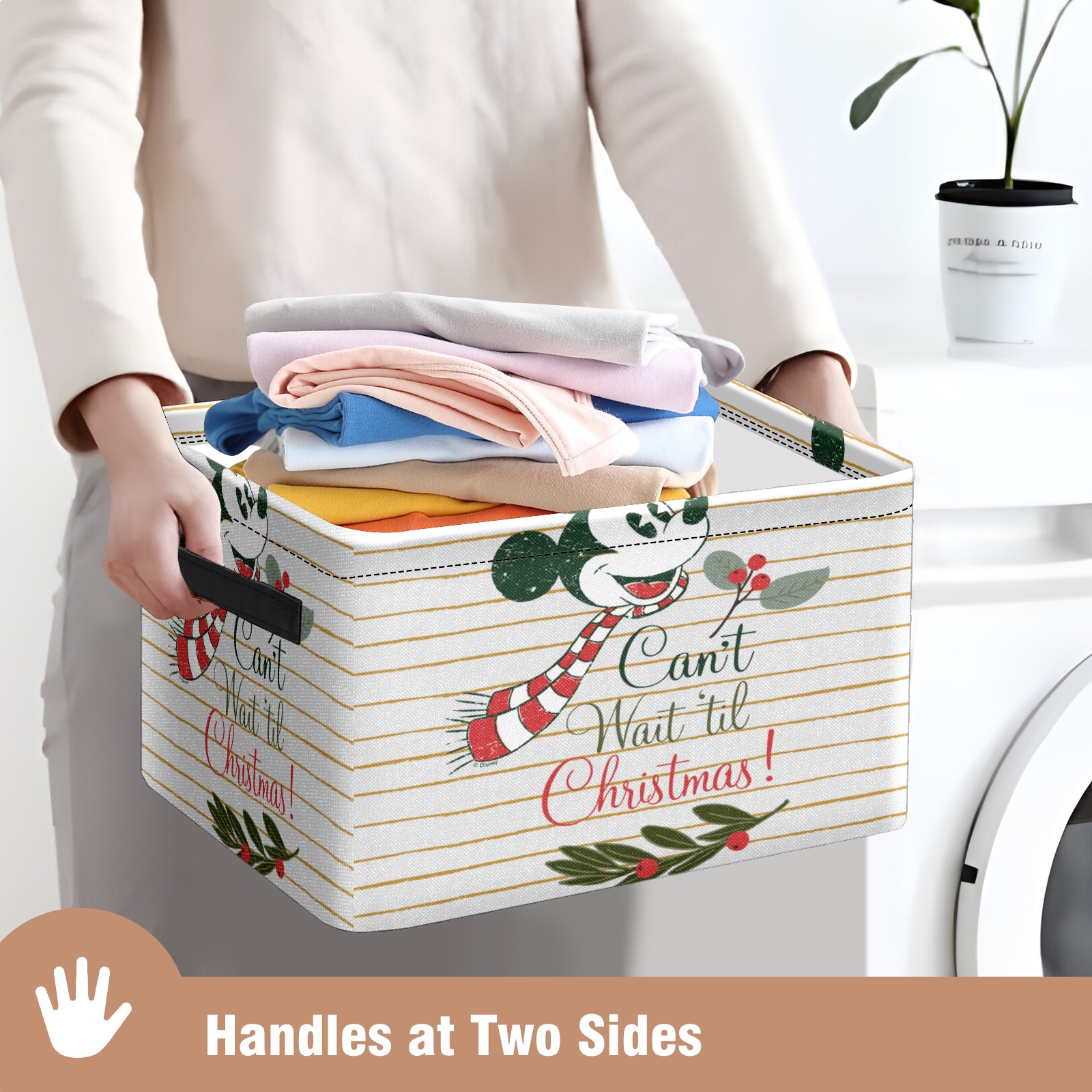 Foldable and Stackable Fabric Storage Basket for Home Organization with Handles, Decorative Closet Bins for Shelves and Laundry Storage( Mickey Mouse Can't Wait 'til Christmas)