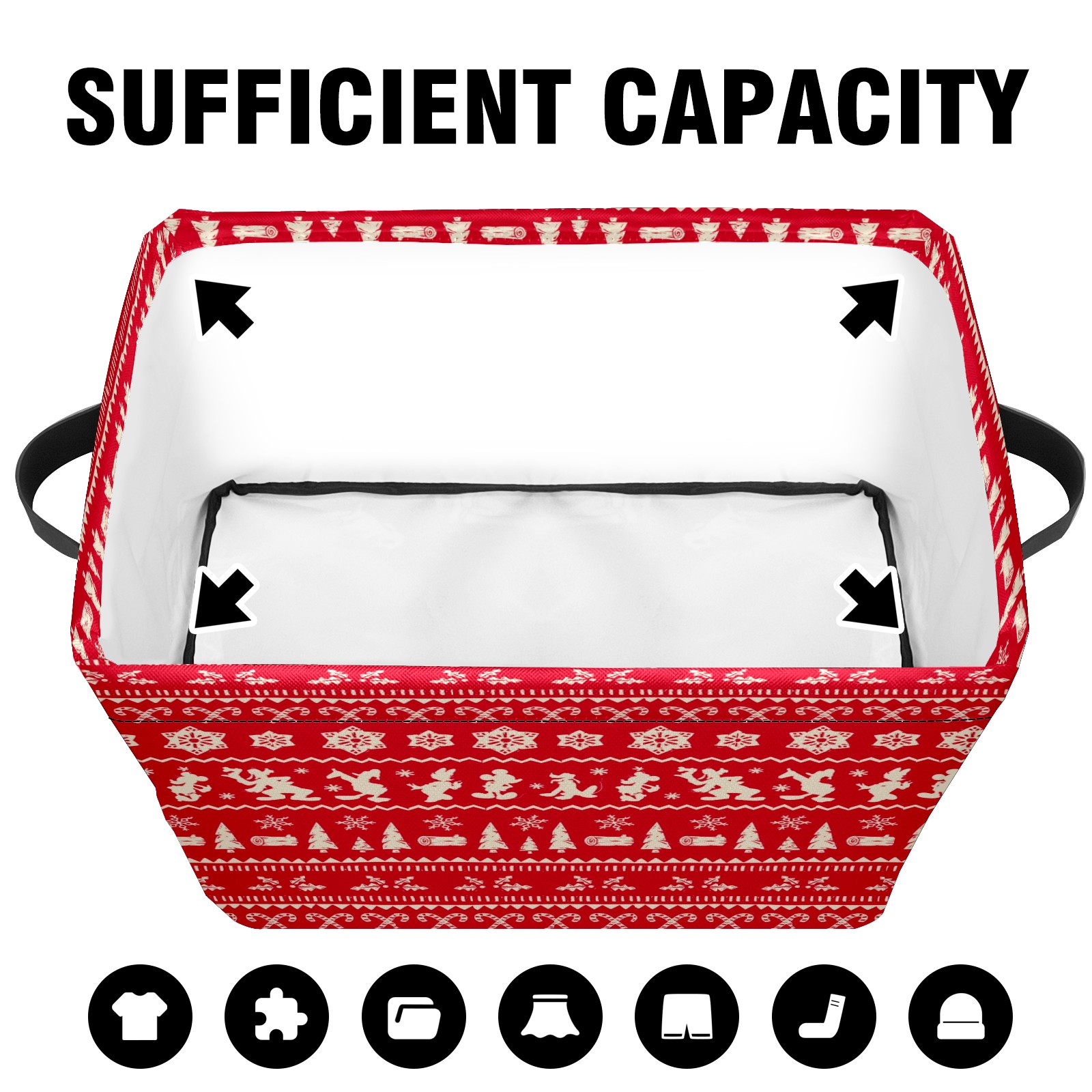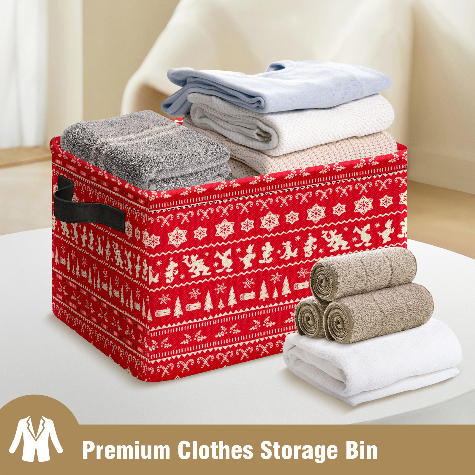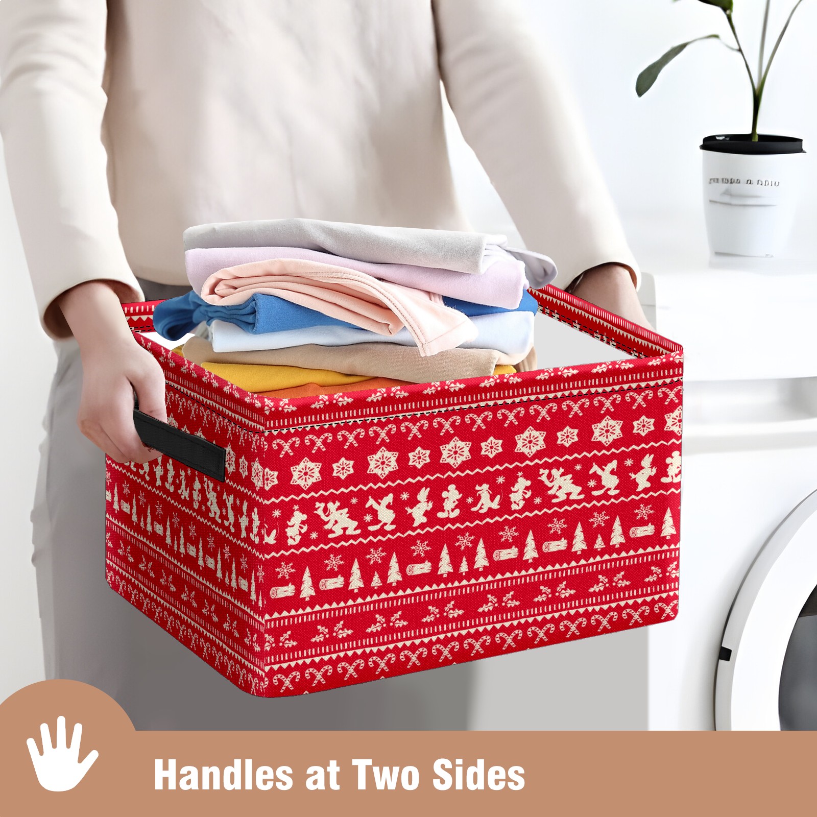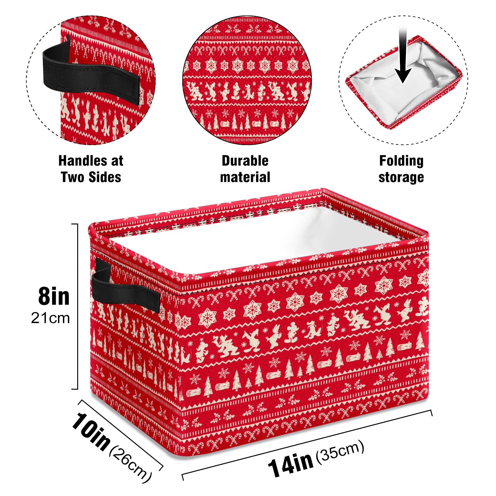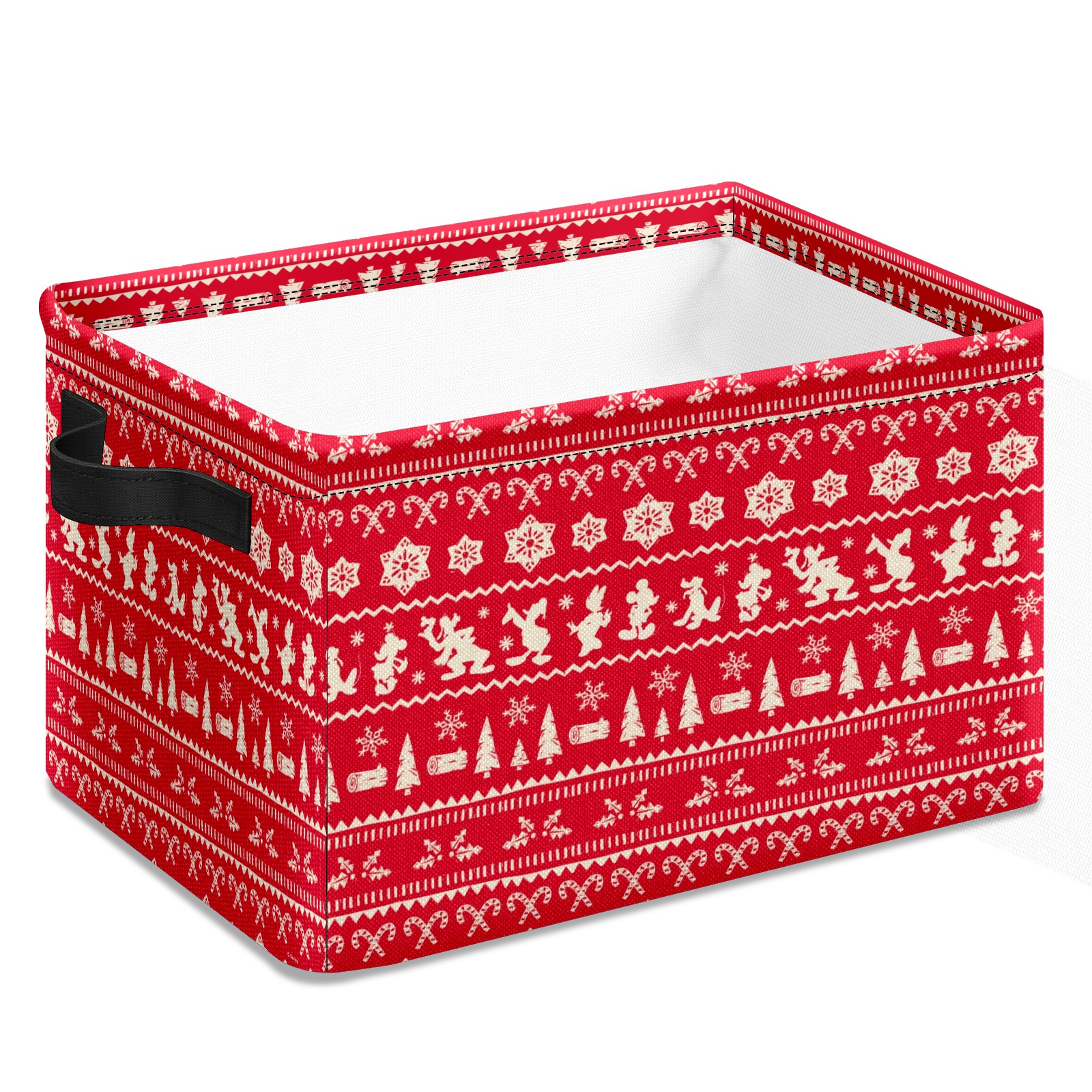 Foldable and Stackable Fabric Storage Basket for Home Organization with Handles, Decorative Closet Bins for Shelves and Laundry Storage( Merry Christmas Mickey Mouse Snowflake Pattern)