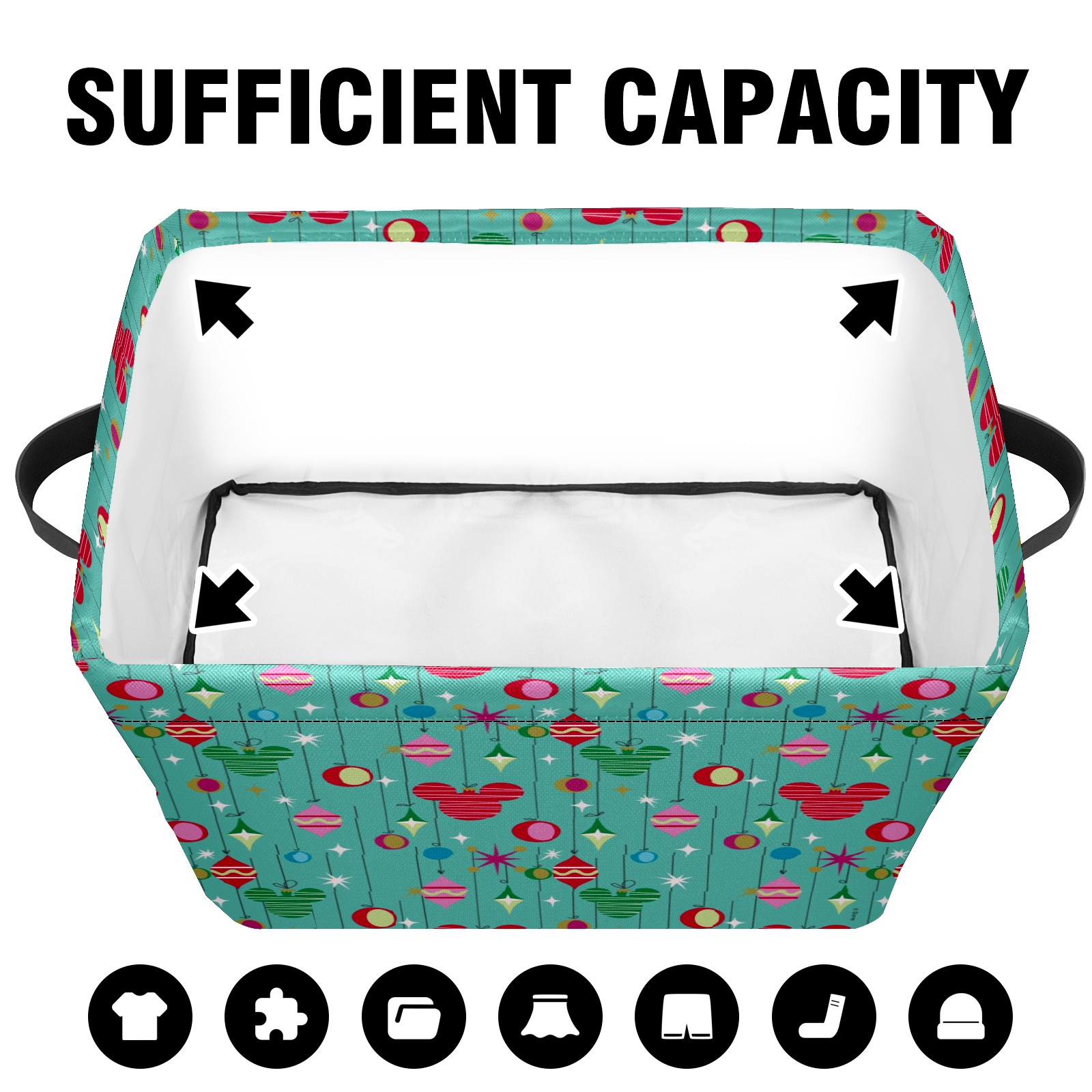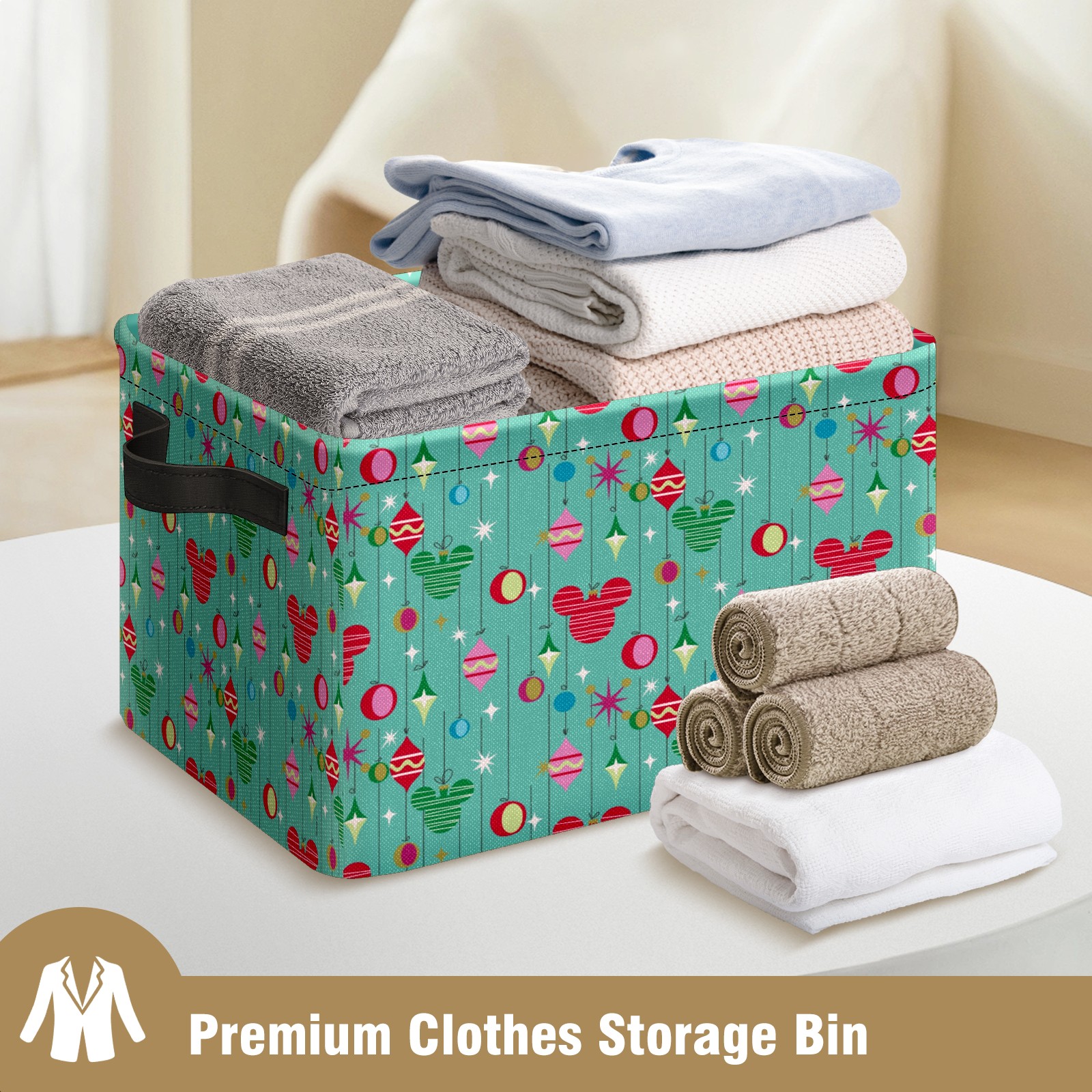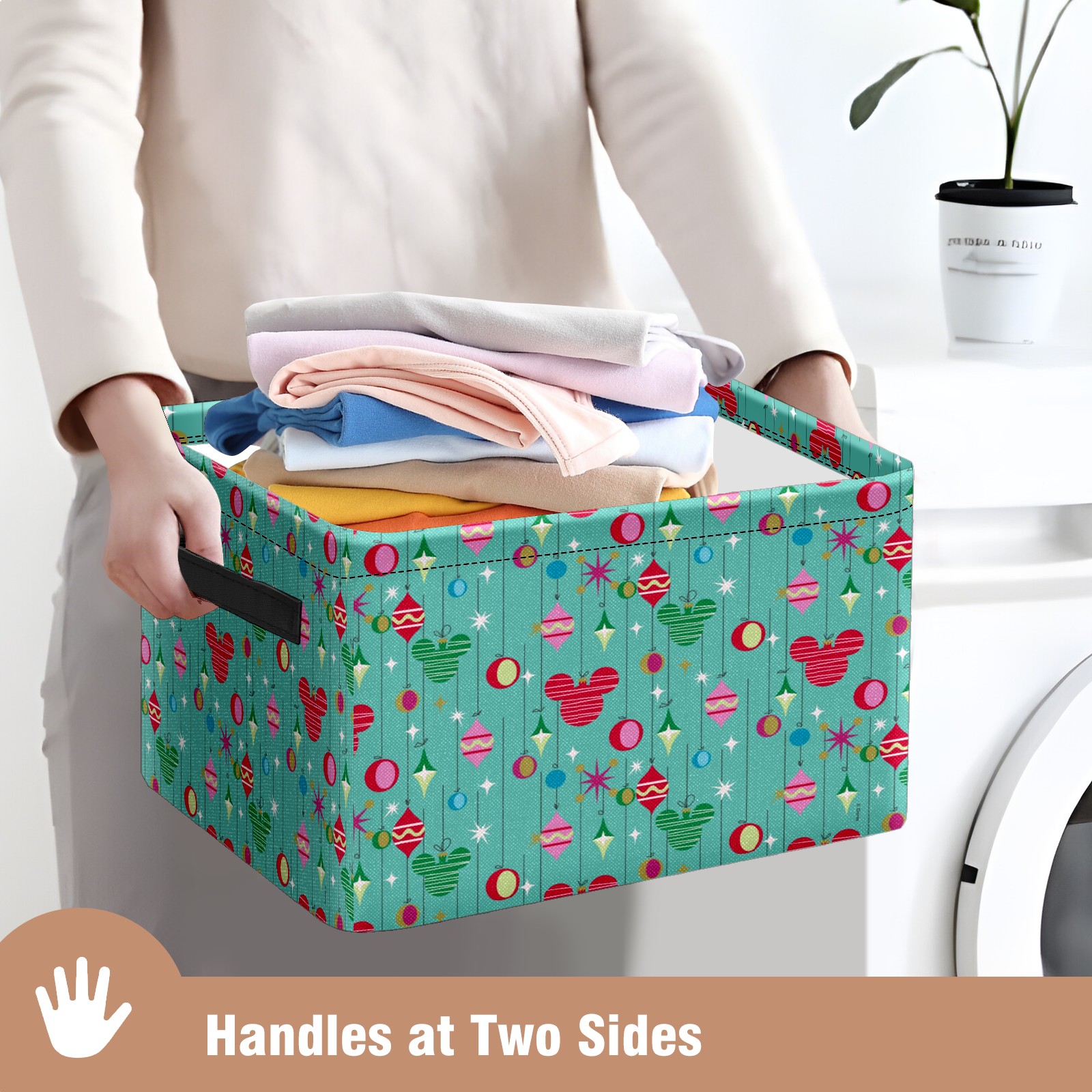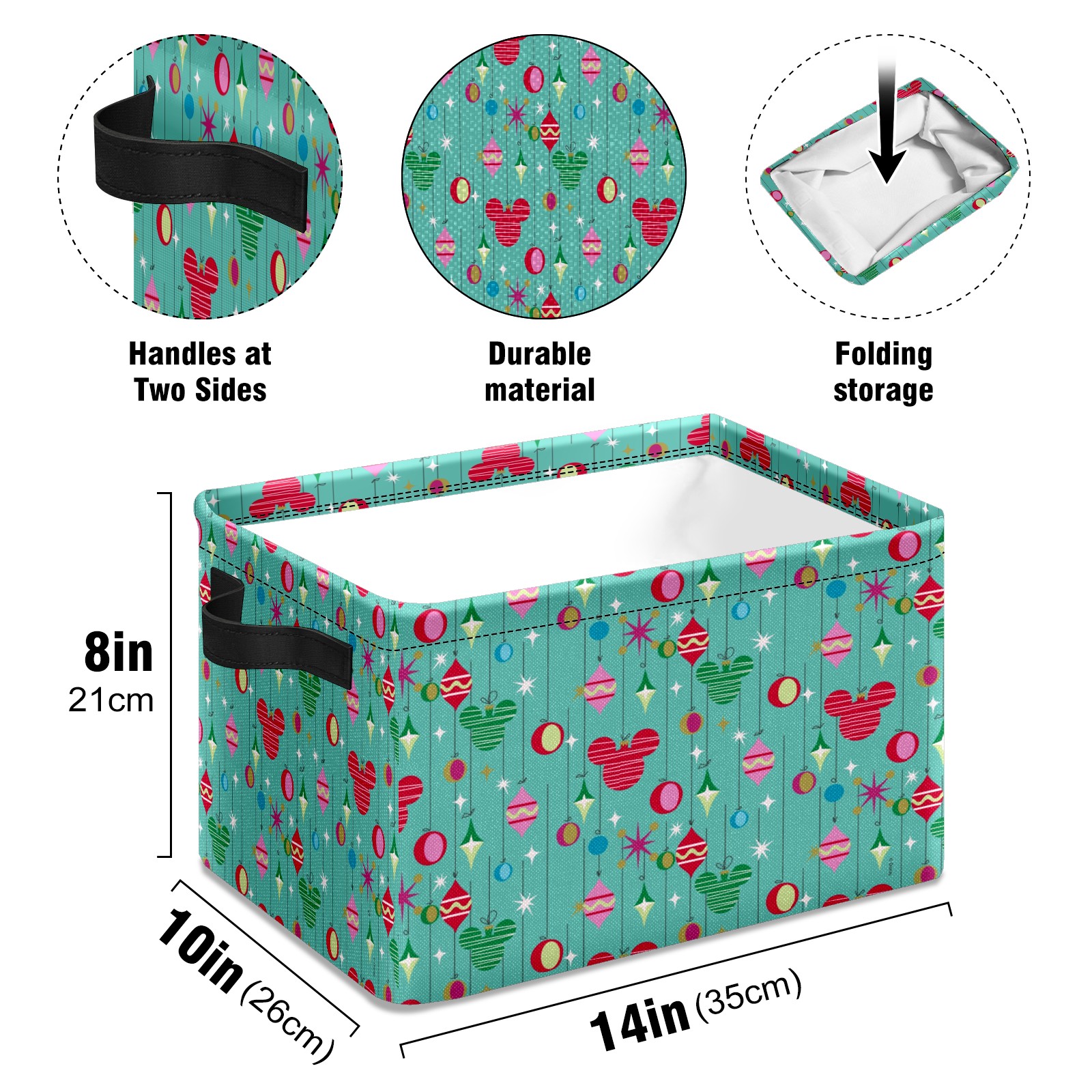 Foldable and Stackable Fabric Storage Basket for Home Organization with Handles, Decorative Closet Bins for Shelves and Laundry Storage( Merry Christmas Mickey Mouse Retro)