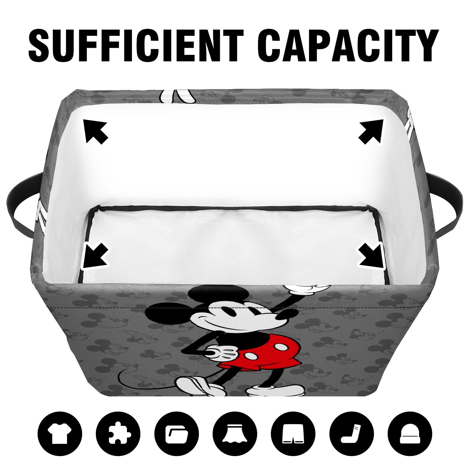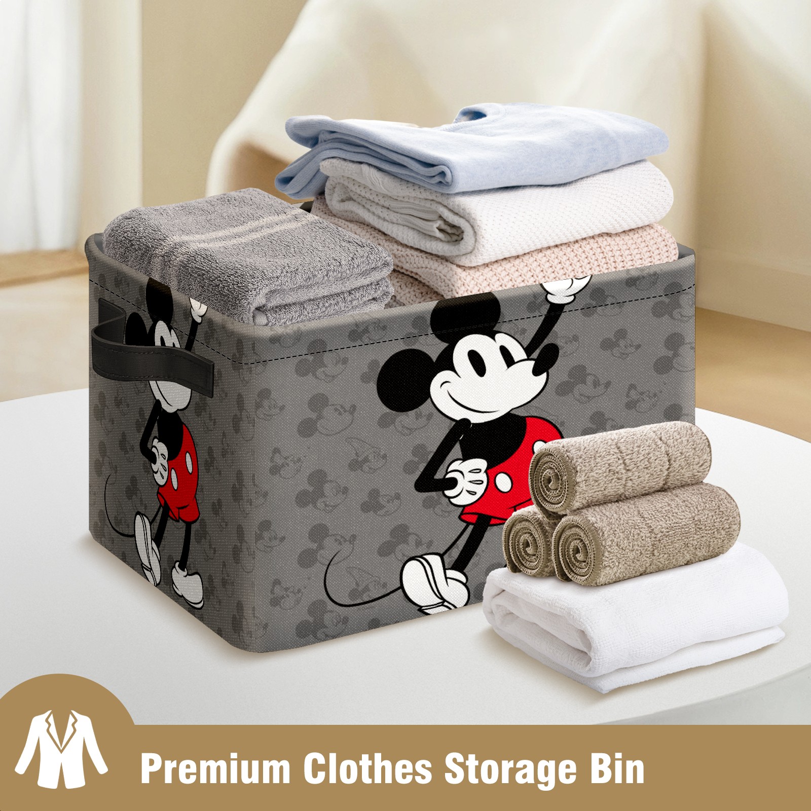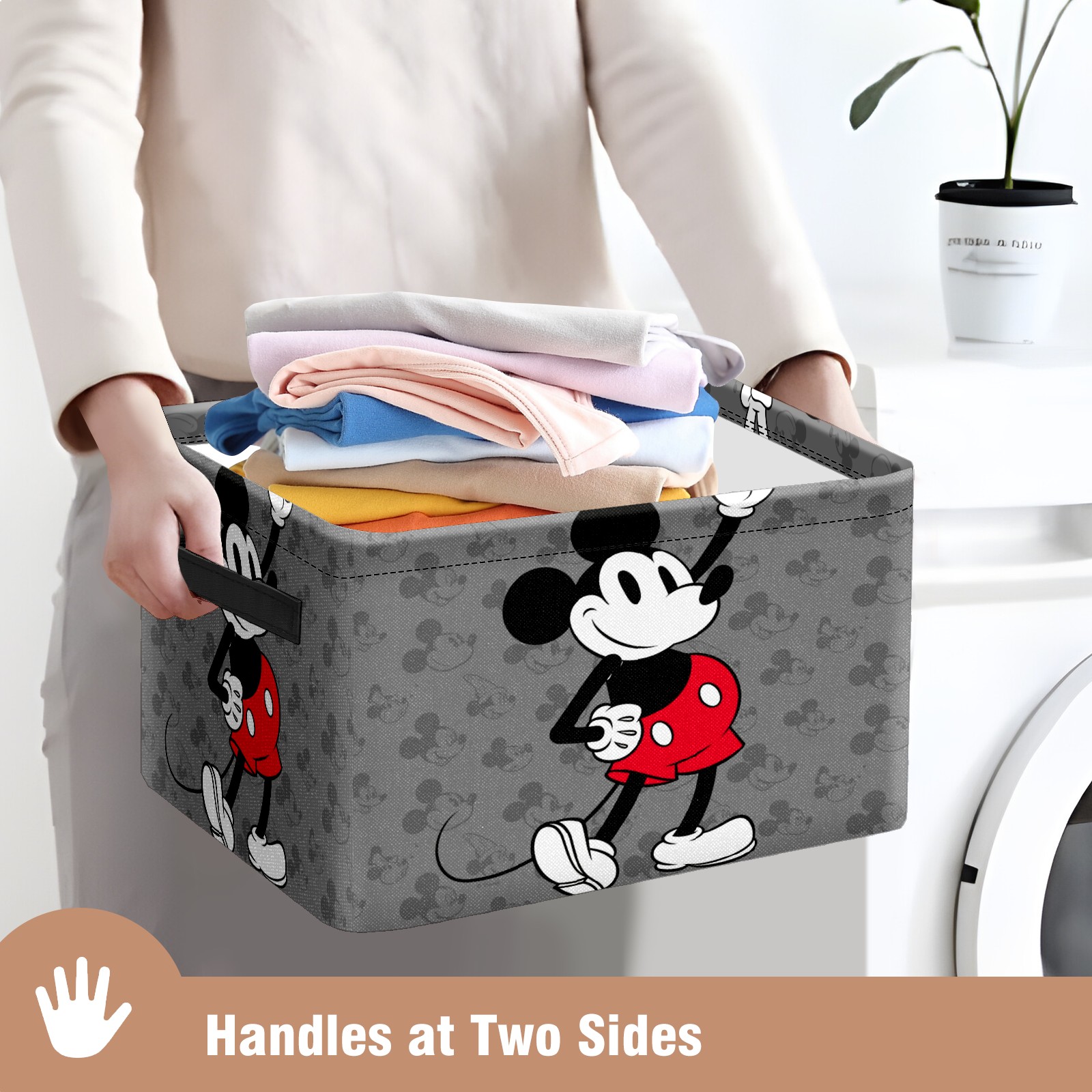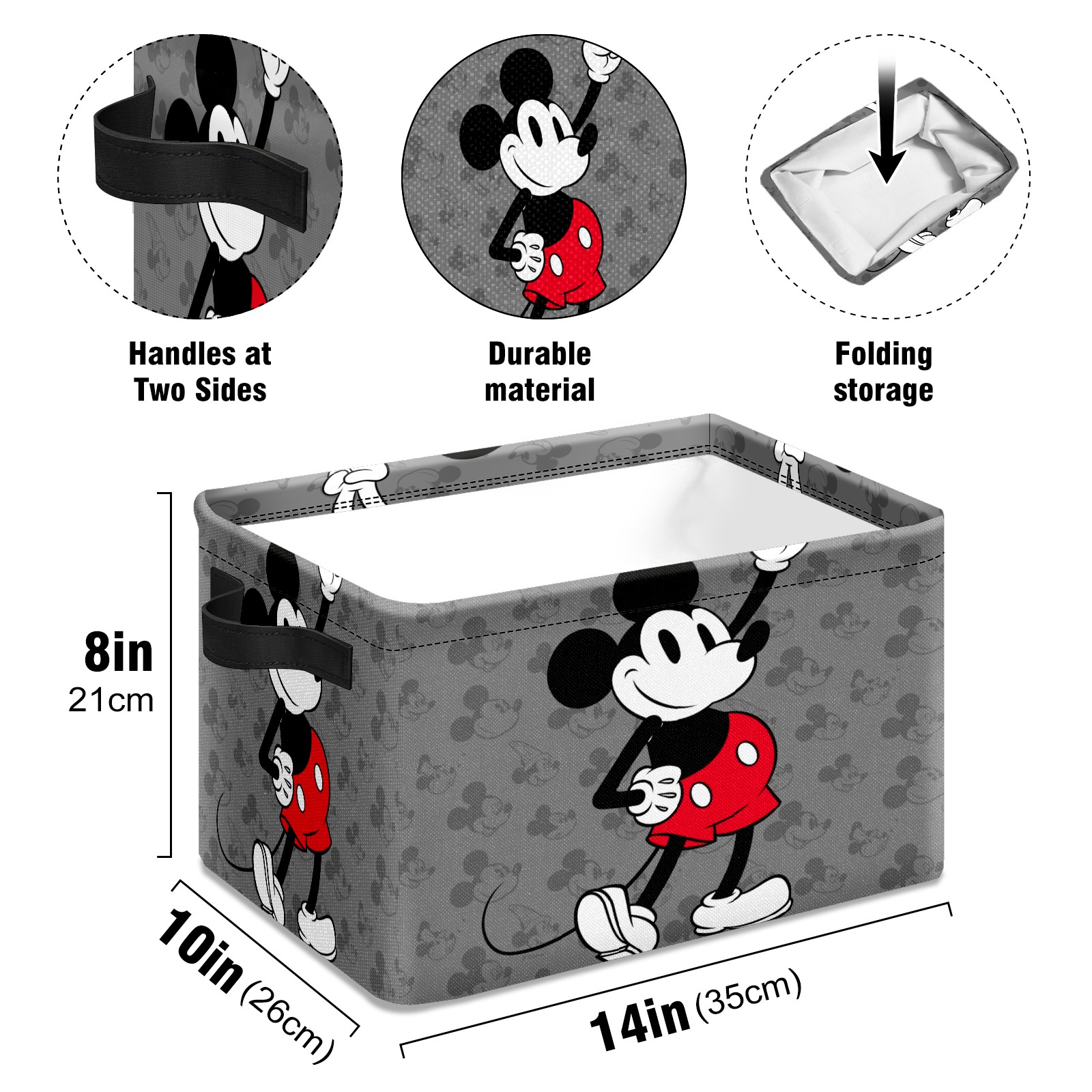Foldable and Stackable Fabric Storage Basket for Home Organization with Handles, Decorative Closet Bins for Shelves and Laundry Storage( Classic Mickey Mouse)