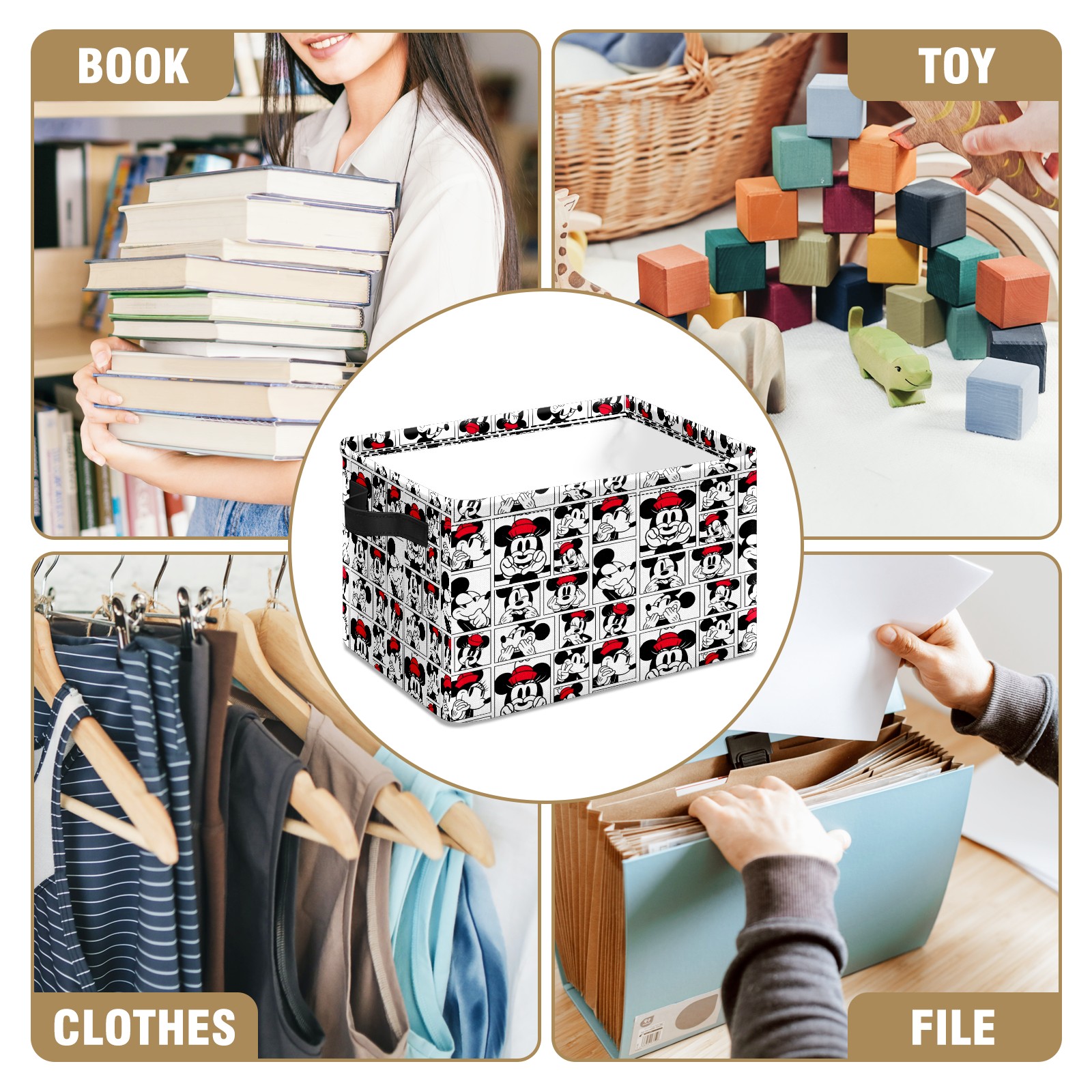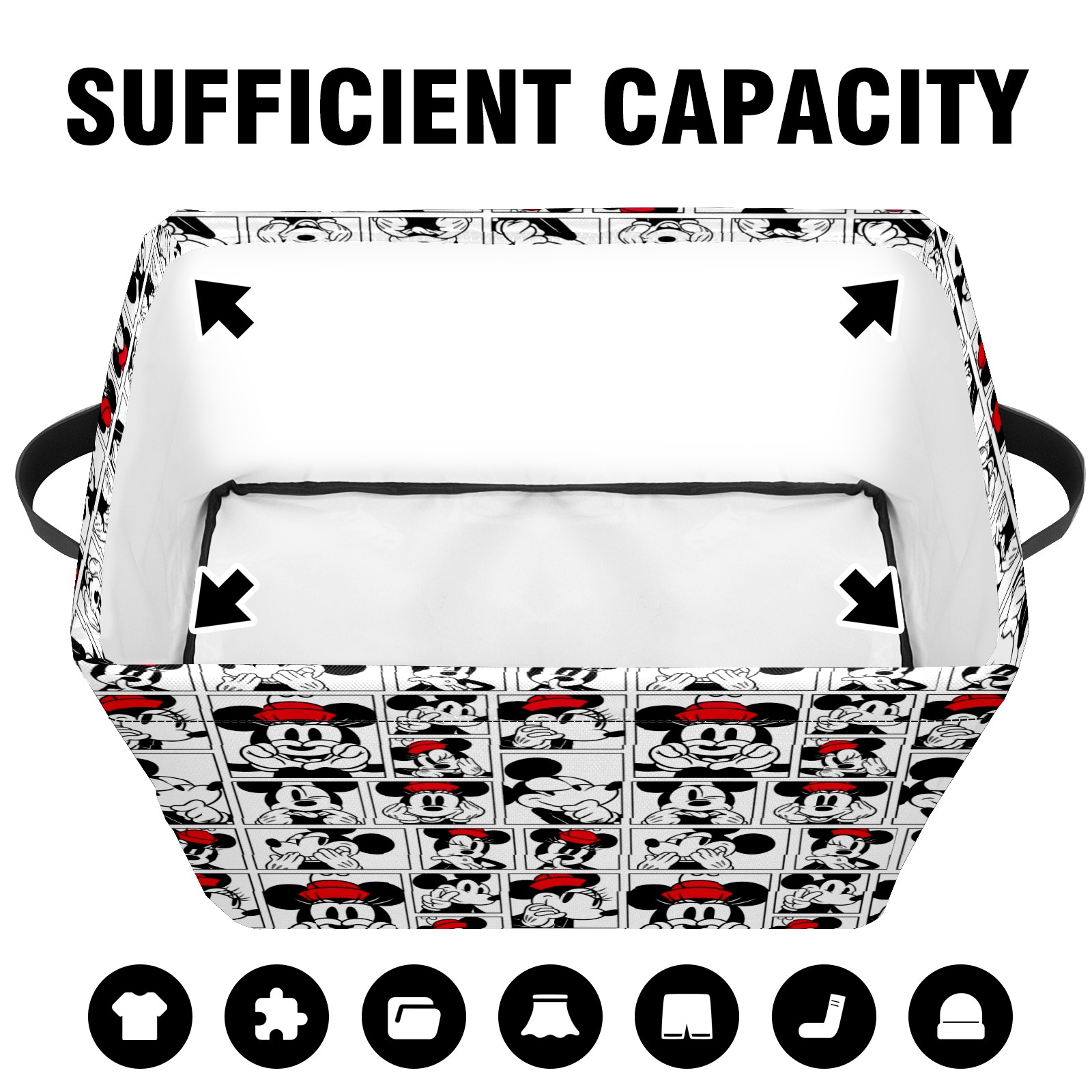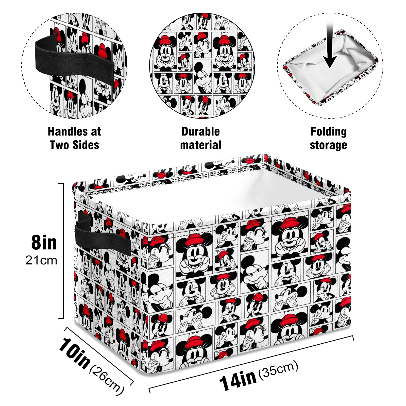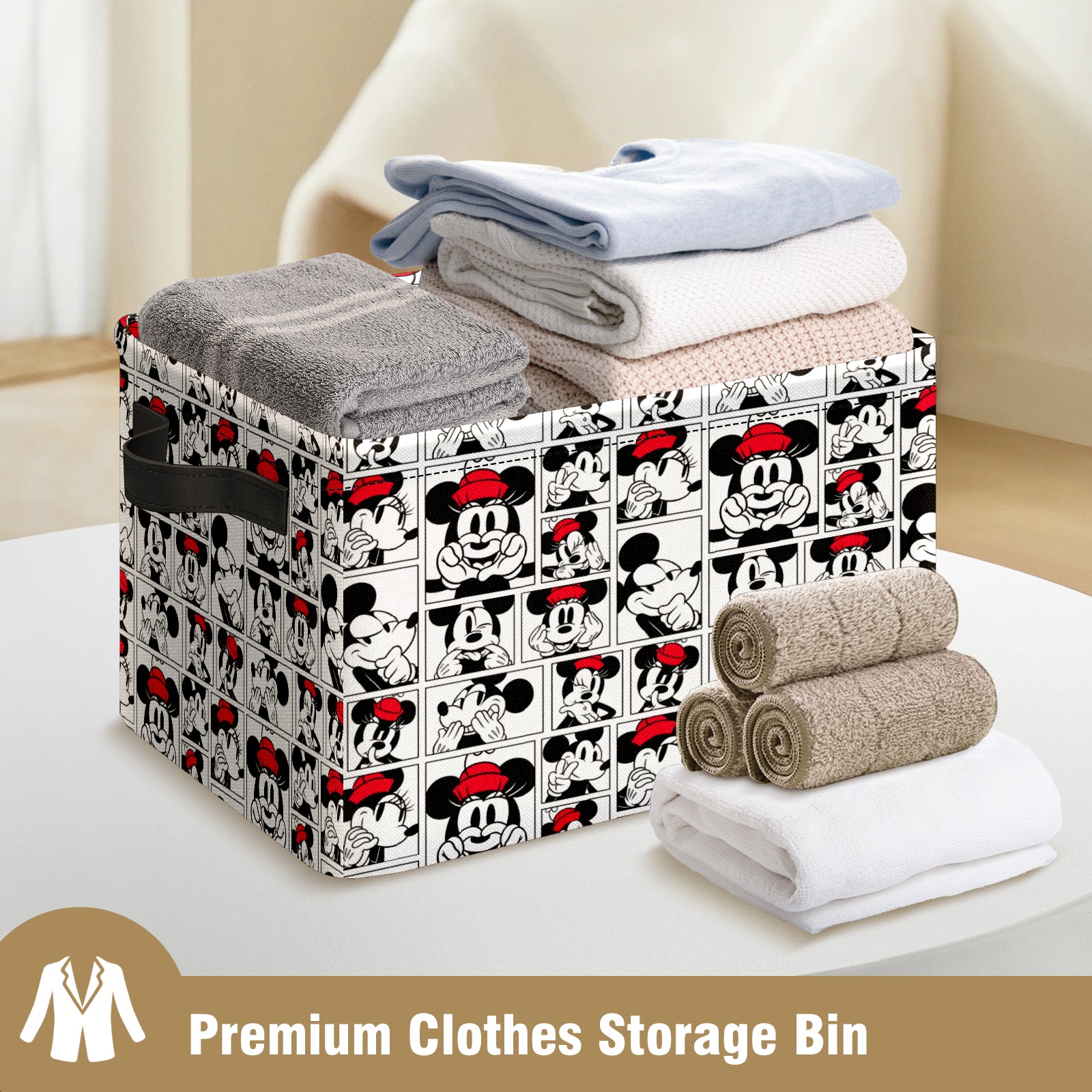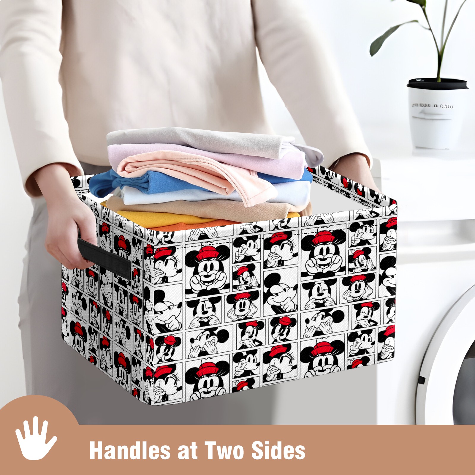 Foldable and Stackable Fabric Storage Basket for Home Organization with Handles, Decorative Closet Bins for Shelves and Laundry Storage( Funny Mickey Minnie Music Pattern)