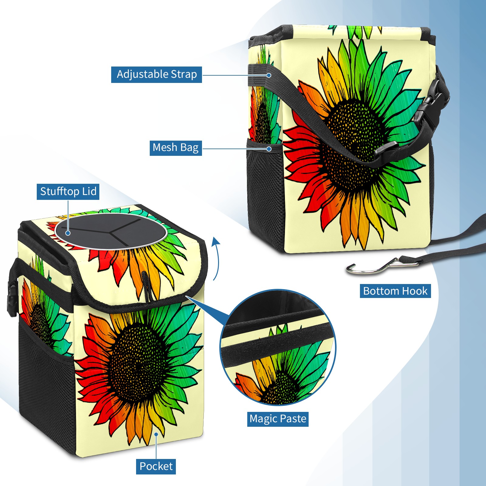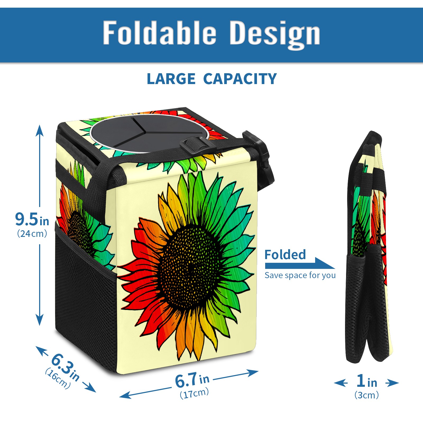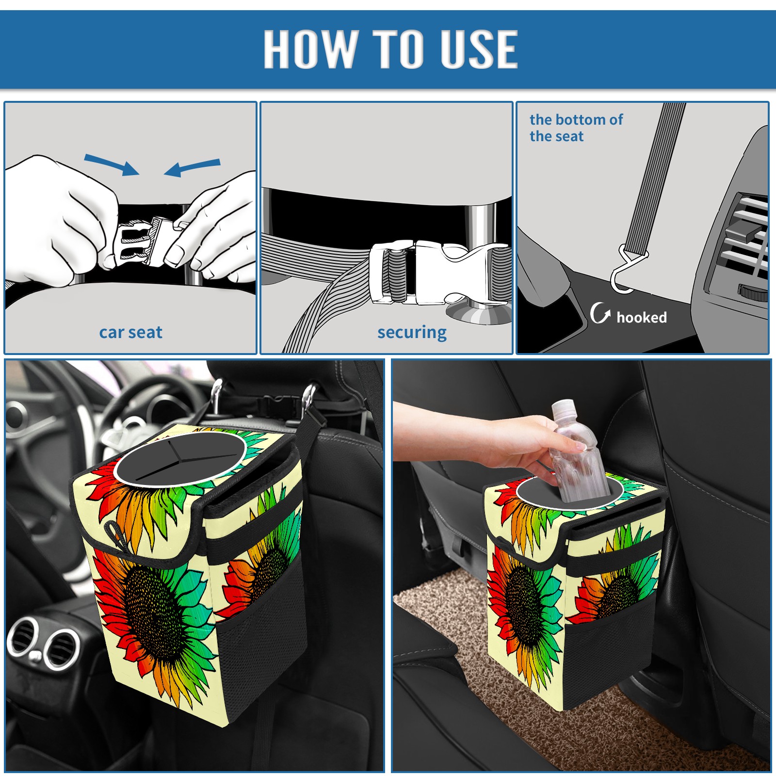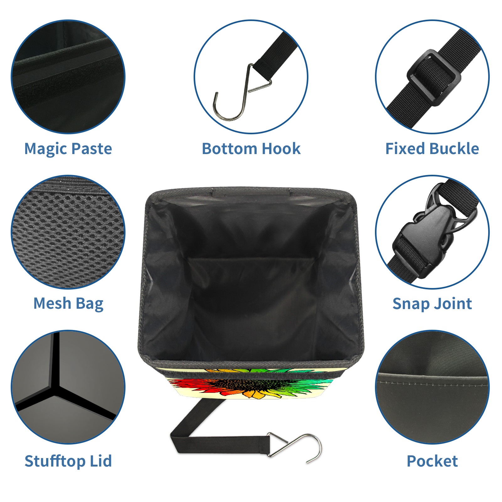 Эта многофункциональная автомобильная мусорная корзина отличается стильным принтом, сочетающим в себе практичность и эстетику. Изготовленная из высококачественной саржевой ткани с плетеными ремнями, она прочная, долговечная и износостойкая. Размеры корзины составляют 24×17×16 см (9,5×6,7×6,3 дюйма). Верхнее отверстие имеет прорезиненное покрытие для удобной утилизации мусора; боковые сетчатые карманы и передний карман обеспечивают удобное хранение закусок, телефонов и других мелких предметов.