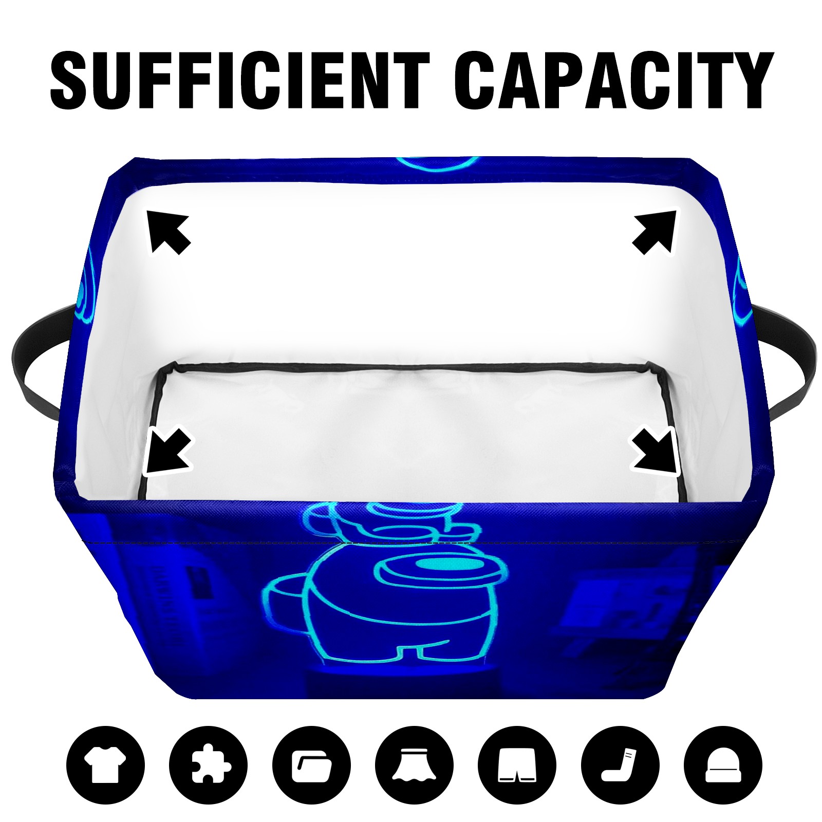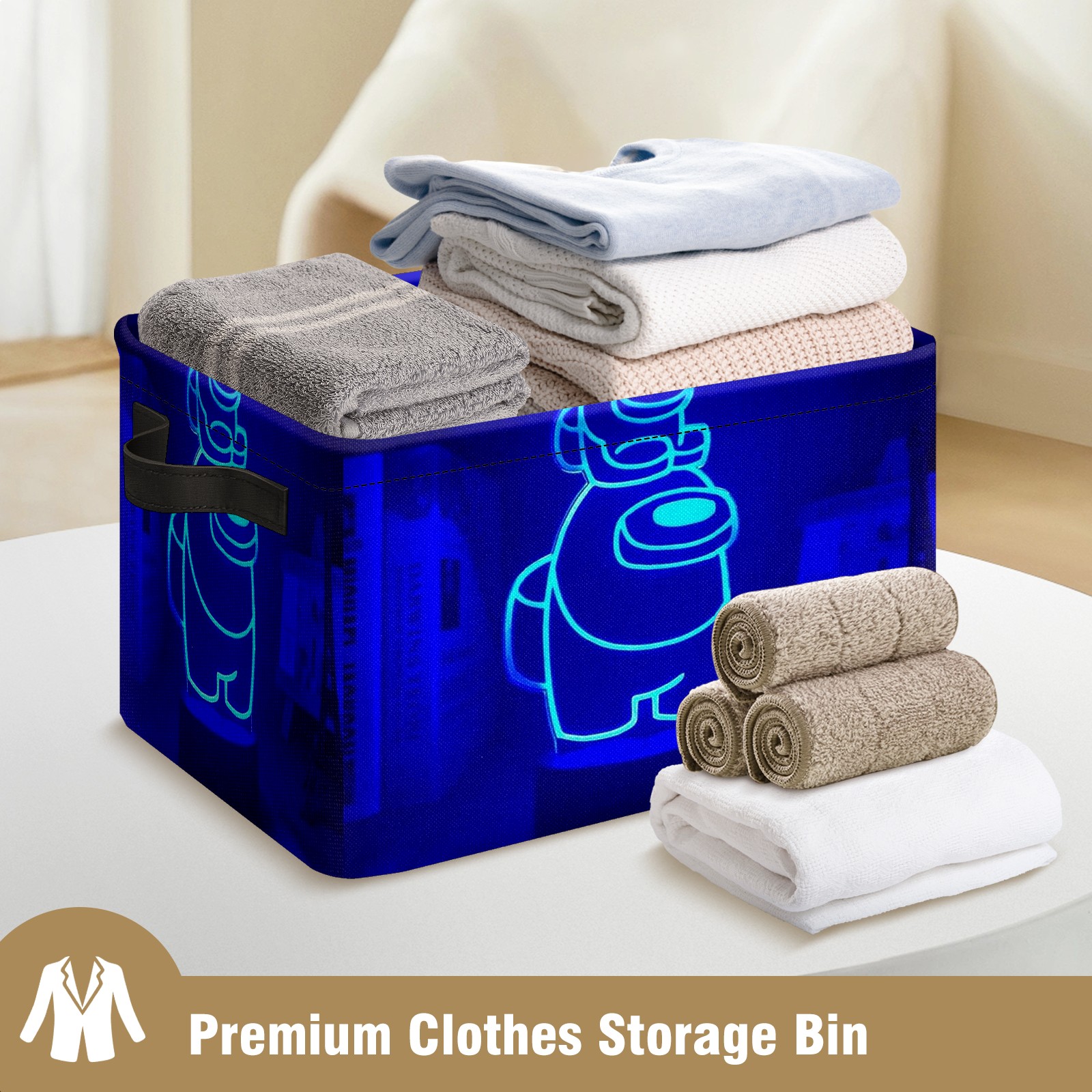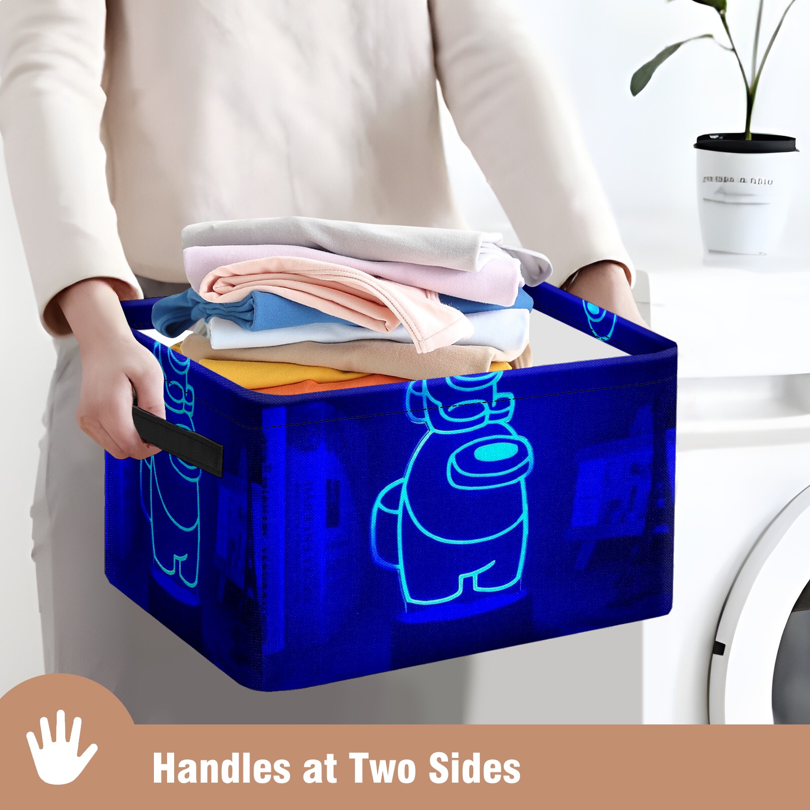 Foldable and Stackable Fabric Storage Basket for Home Organization with Handles, Decorative Closet Bins for Shelves and Laundry Storage( Neon Among Us Blue)