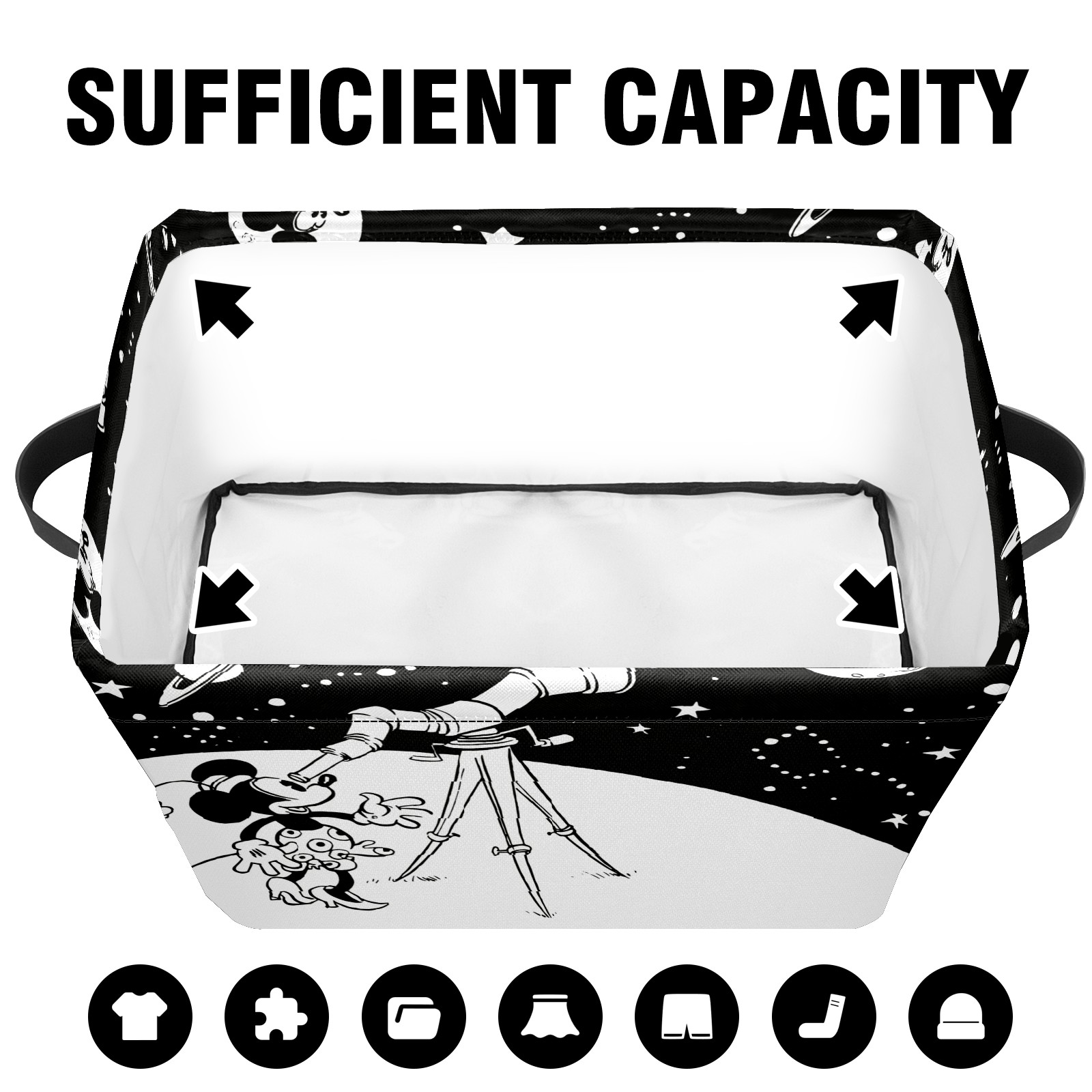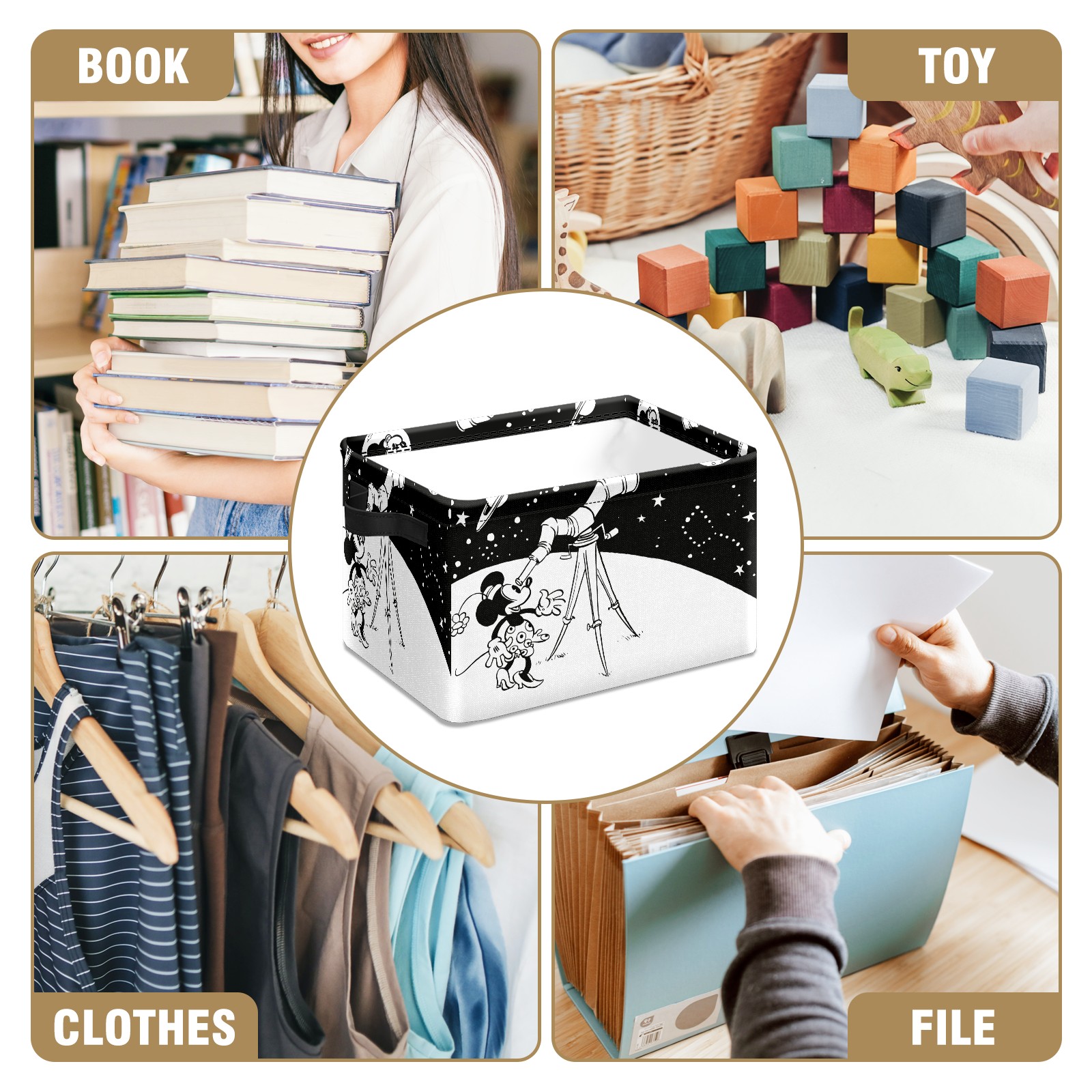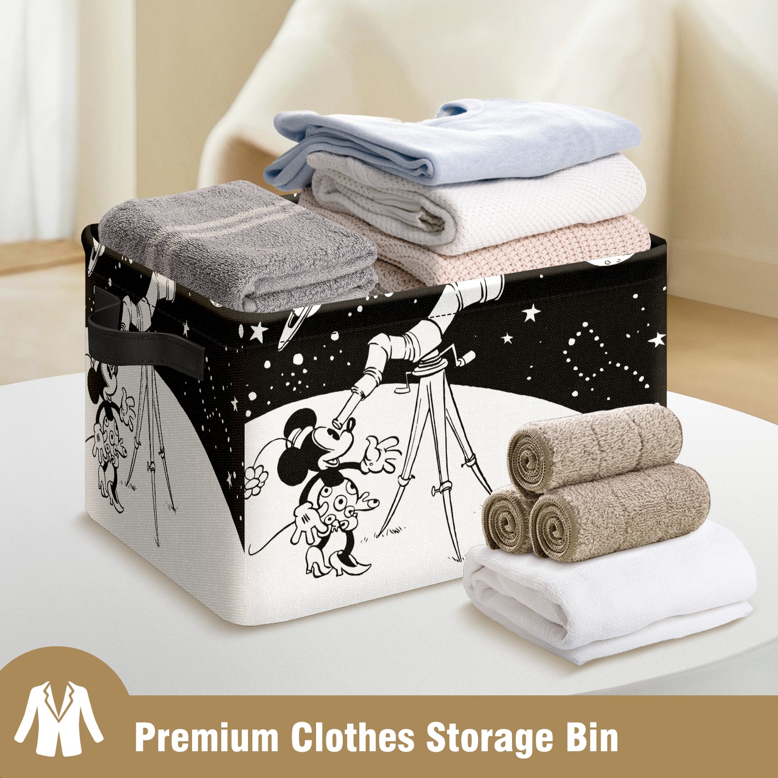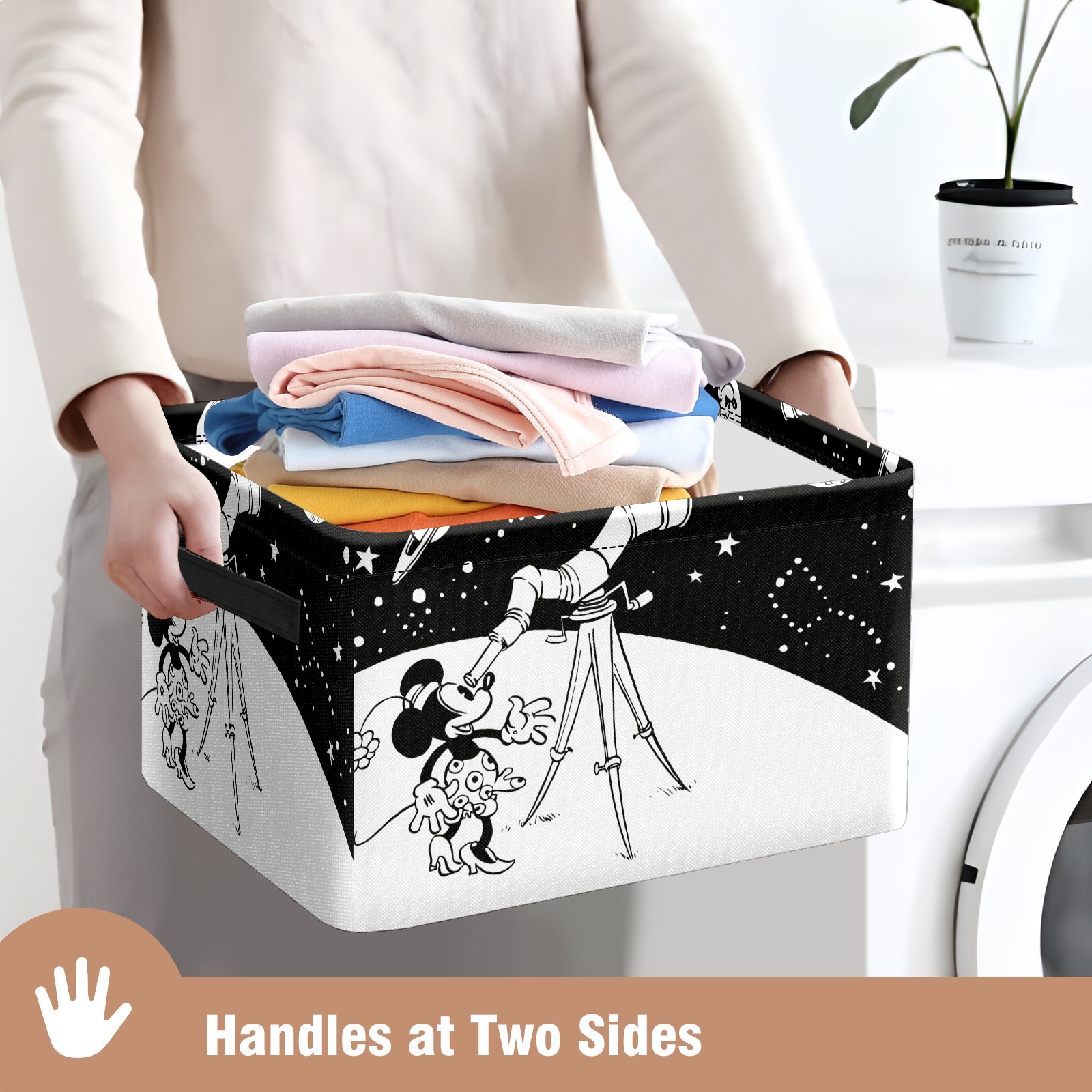 Foldable and Stackable Fabric Storage Basket for Home Organization with Handles, Decorative Closet Bins for Shelves and Laundry Storage( Vintage Minne Mickey Biggest Of All Stars)