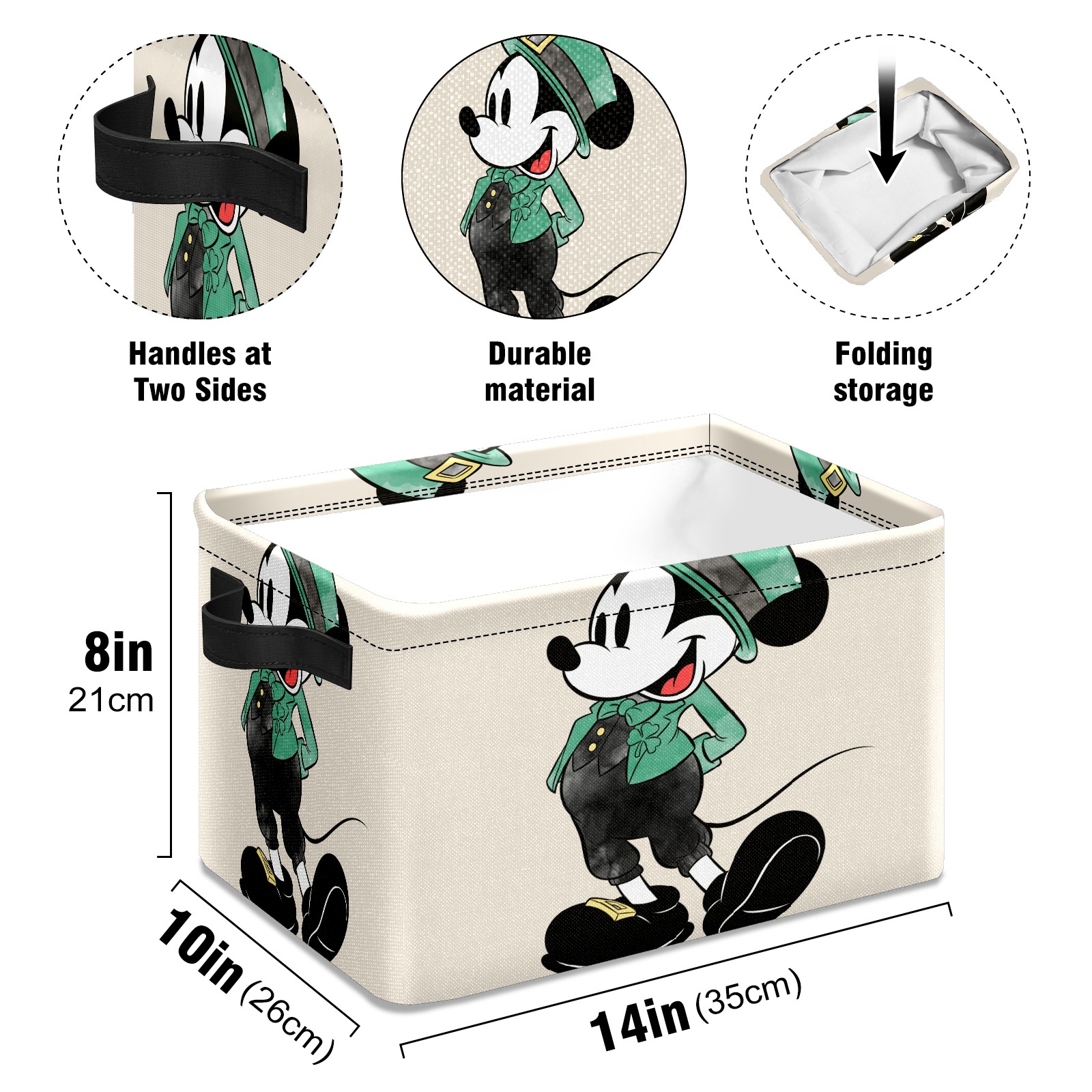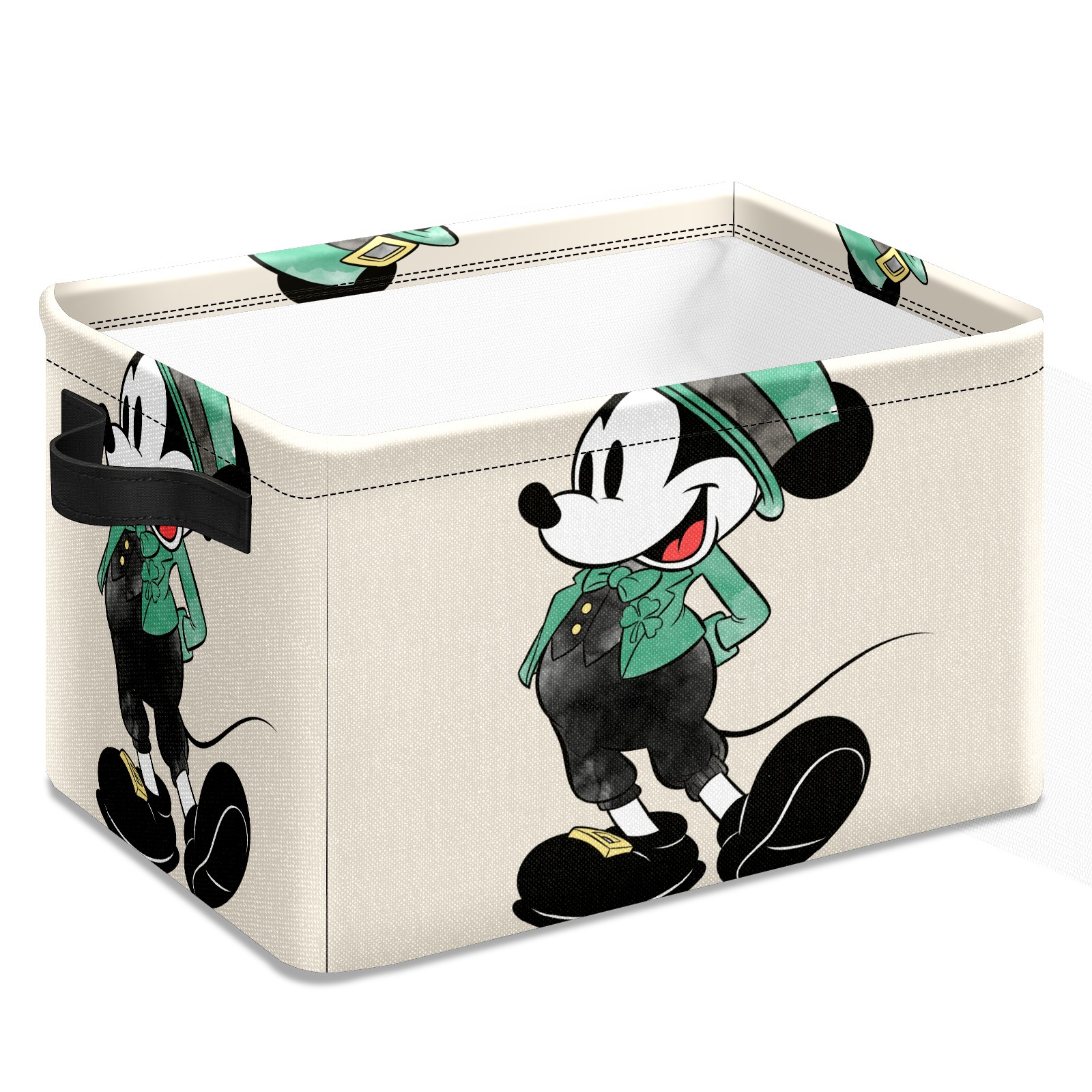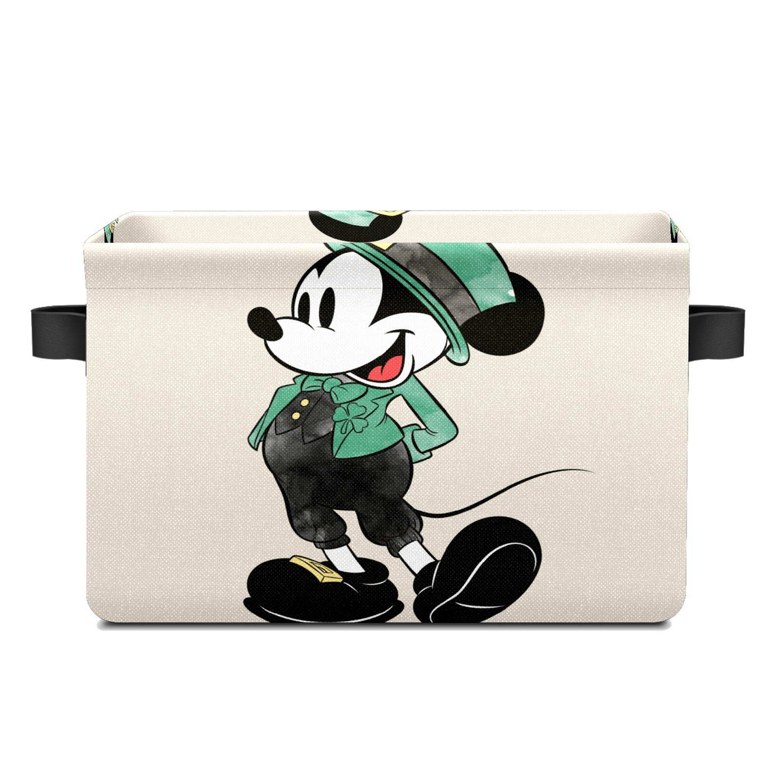Foldable and Stackable Fabric Storage Basket for Home Organization with Handles, Decorative Closet Bins for Shelves and Laundry Storage( Mickey Mouse Watercolor St. Patrick's Day)