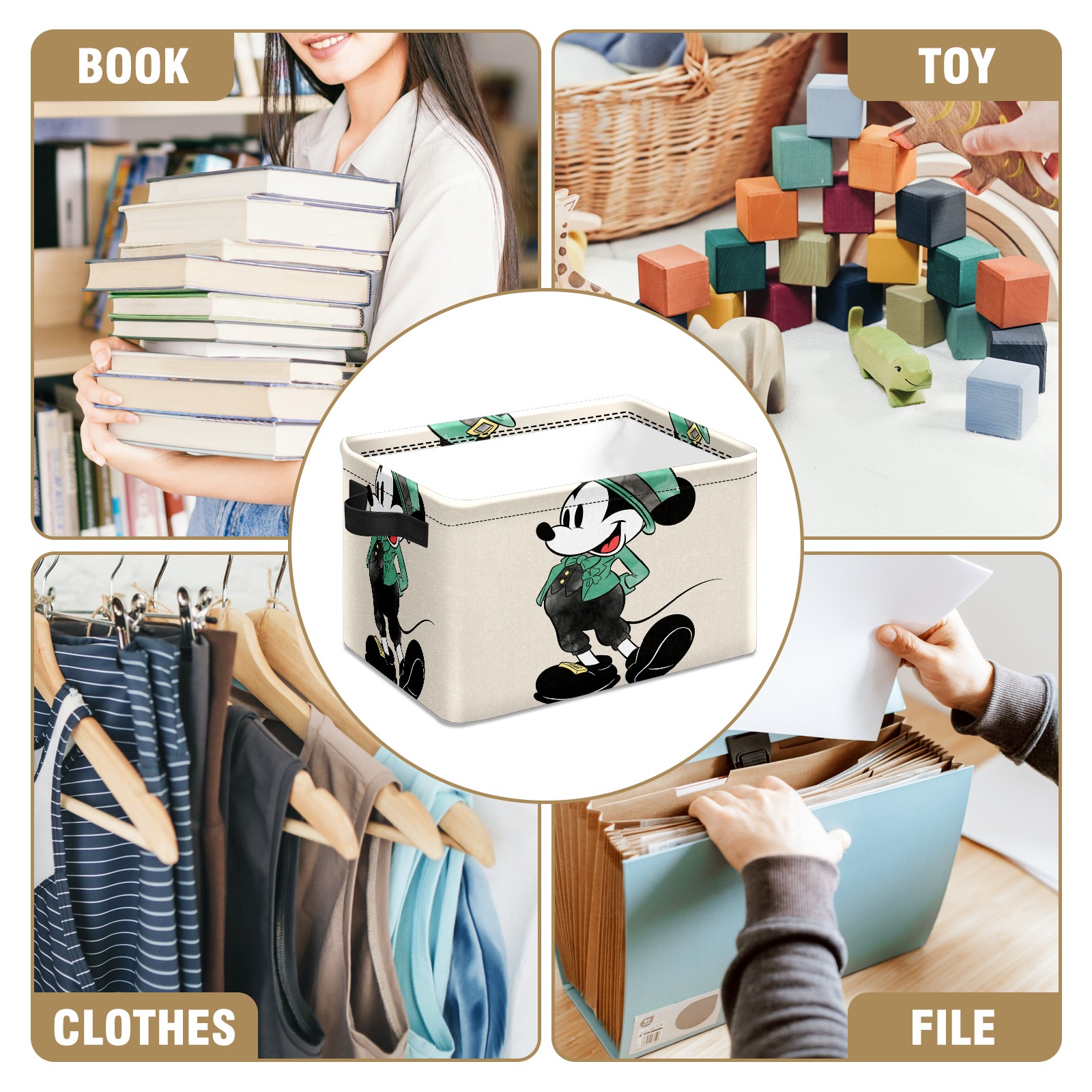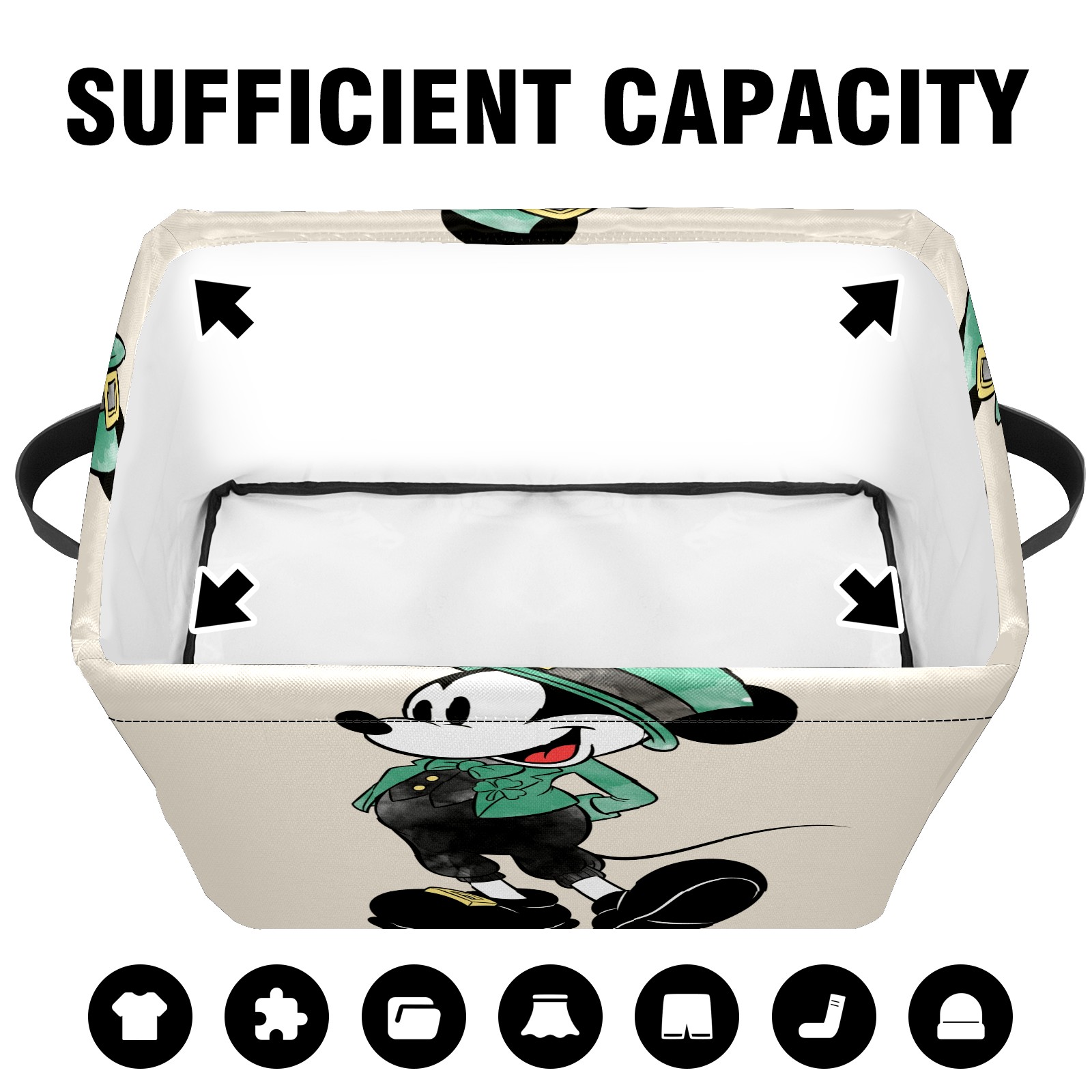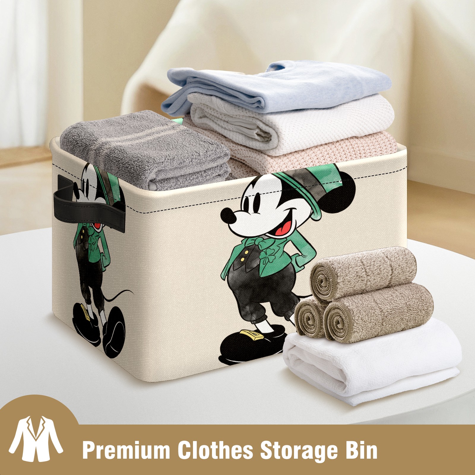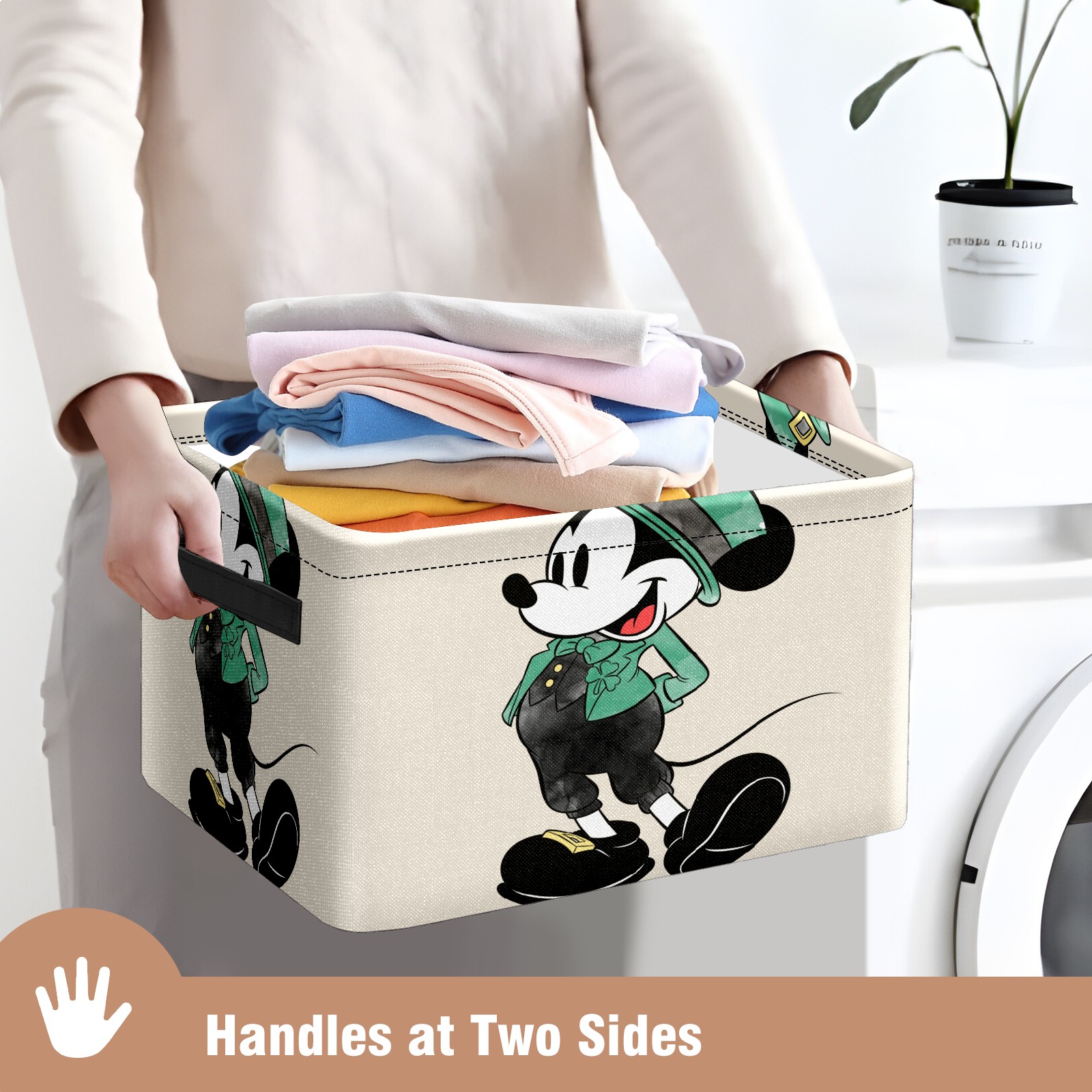 Foldable and Stackable Fabric Storage Basket for Home Organization with Handles, Decorative Closet Bins for Shelves and Laundry Storage( Mickey Mouse Watercolor St. Patrick's Day)