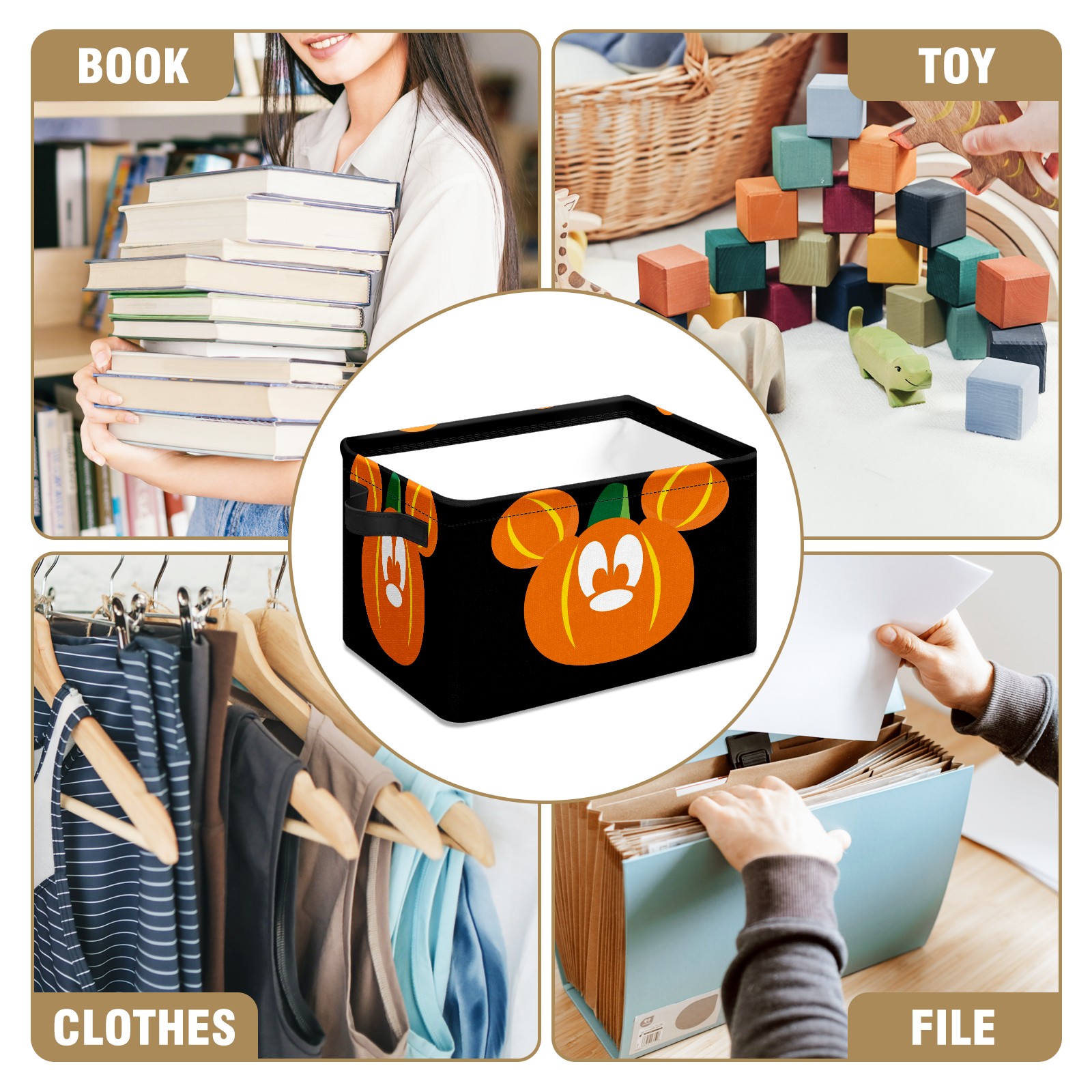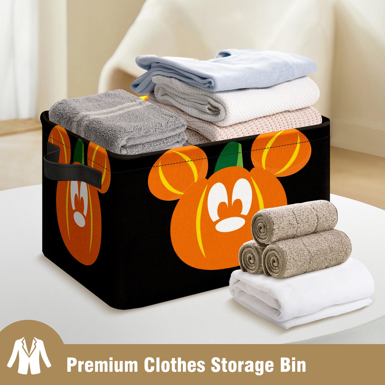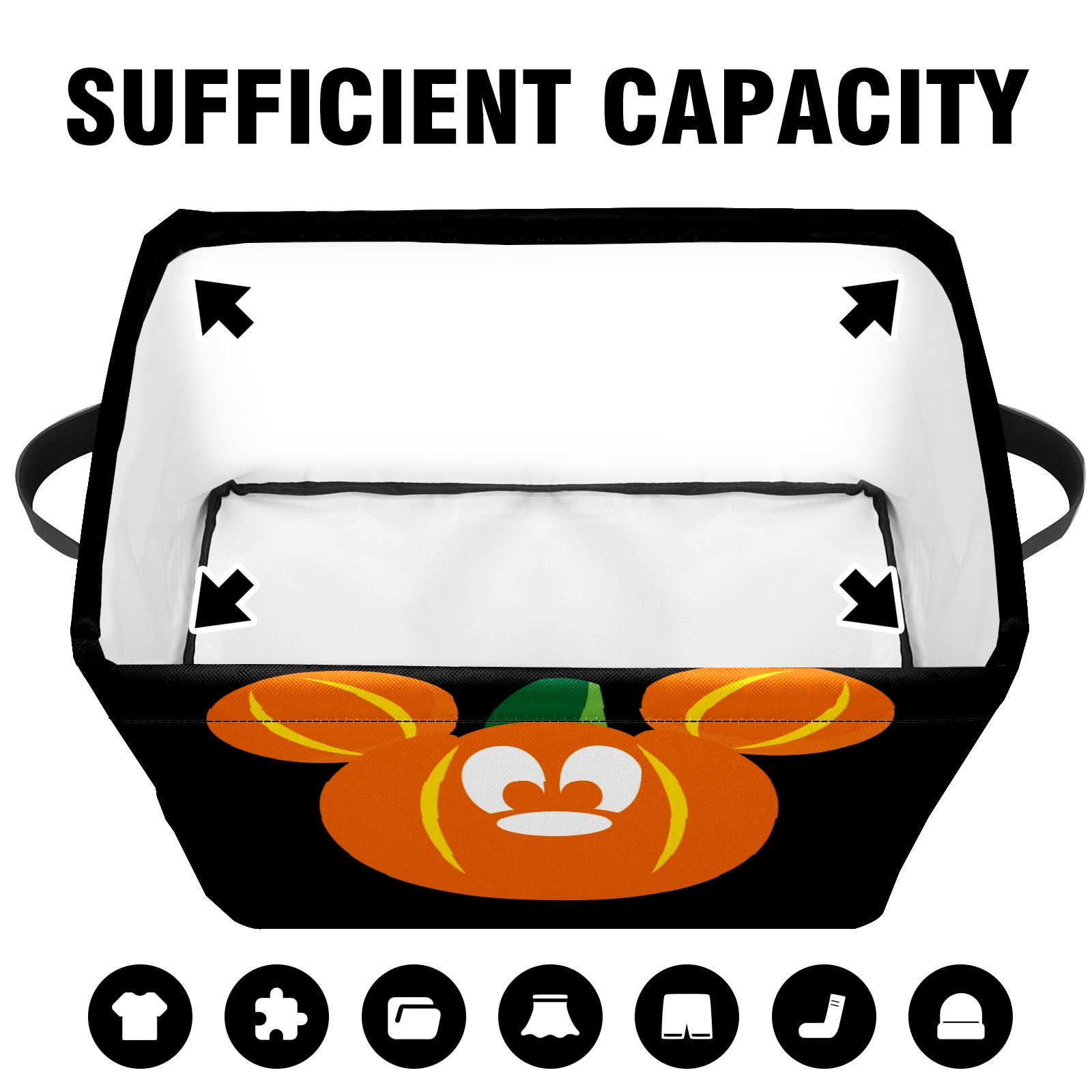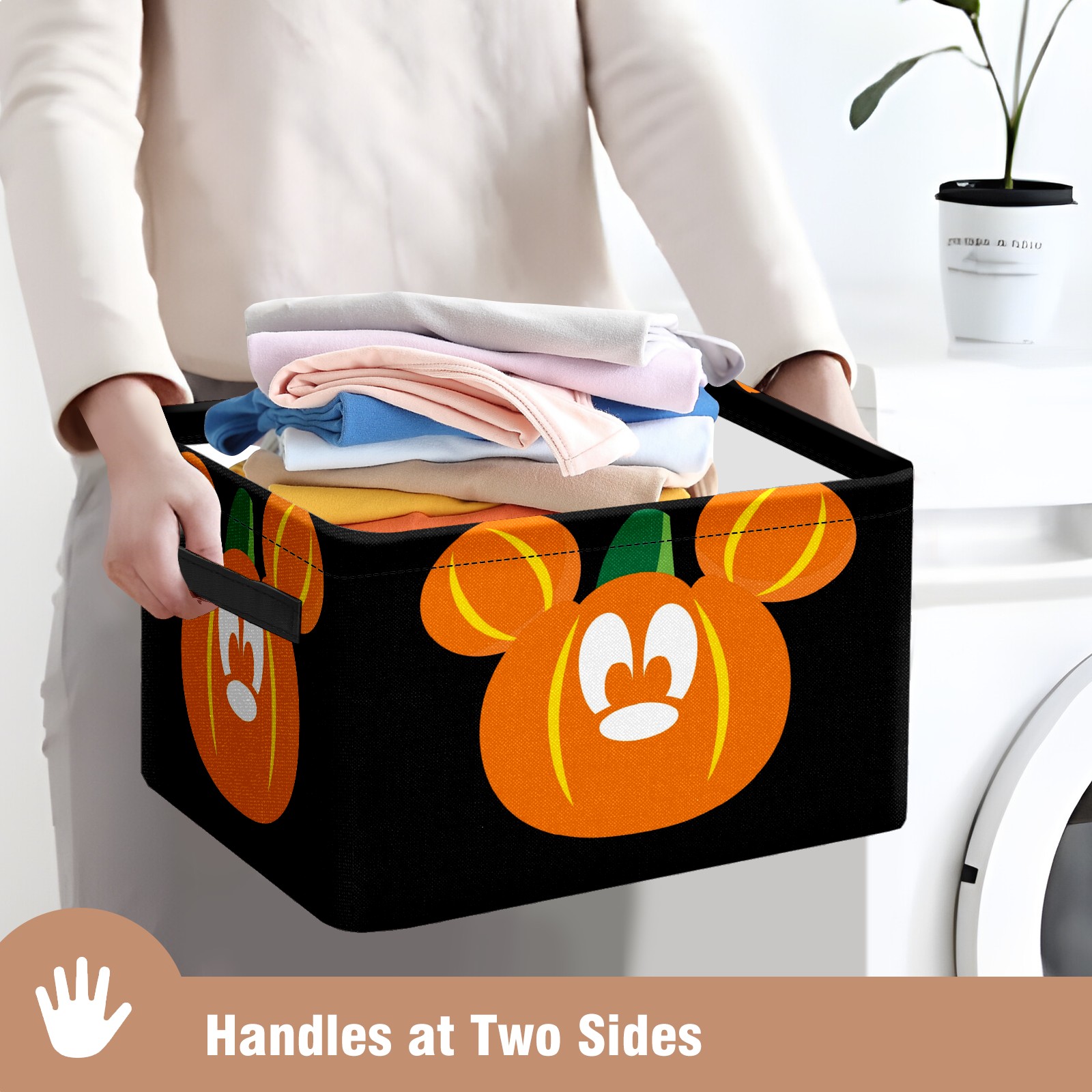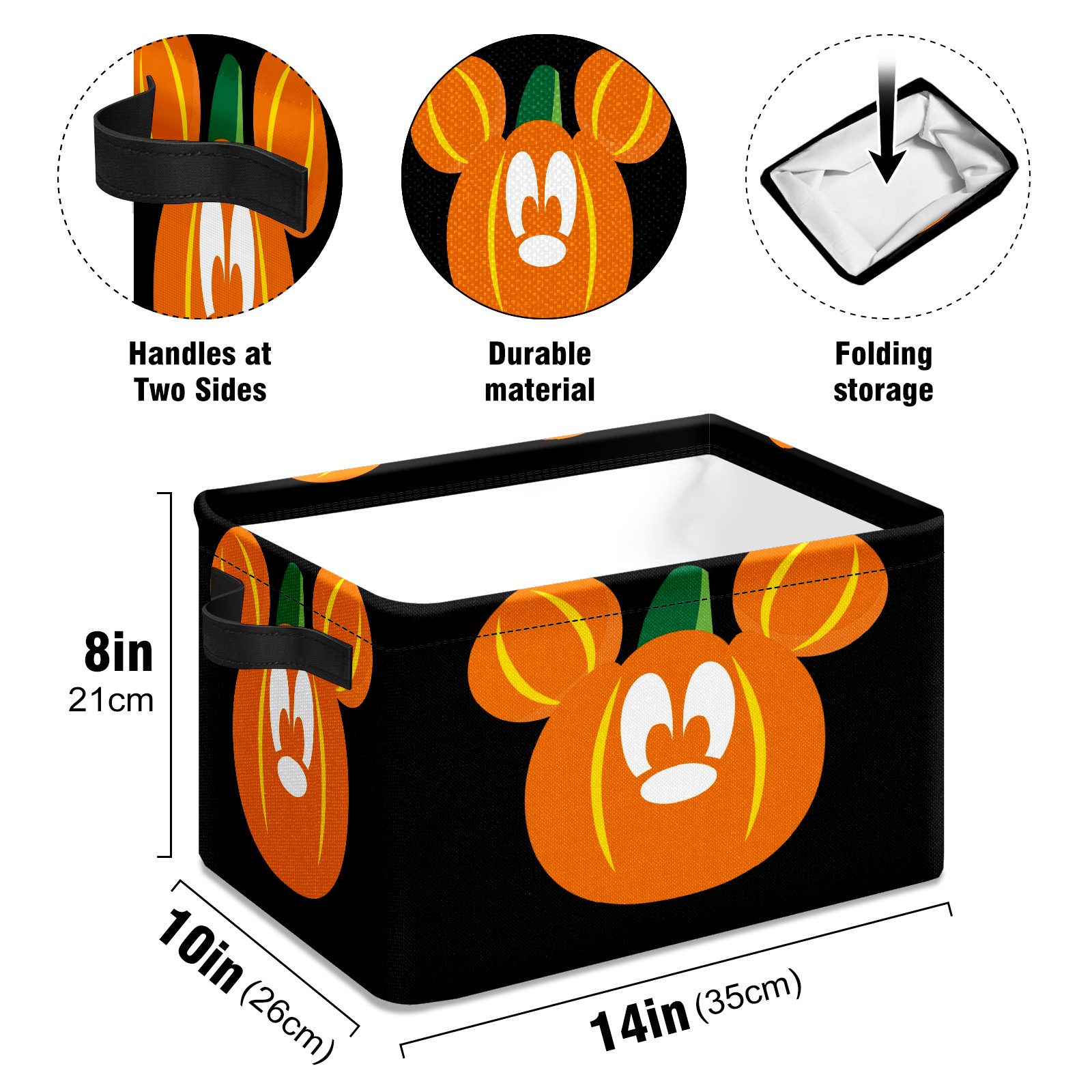 Foldable and Stackable Fabric Storage Basket for Home Organization with Handles, Decorative Closet Bins for Shelves and Laundry Storage( Mickey Mouse Pumpkin)